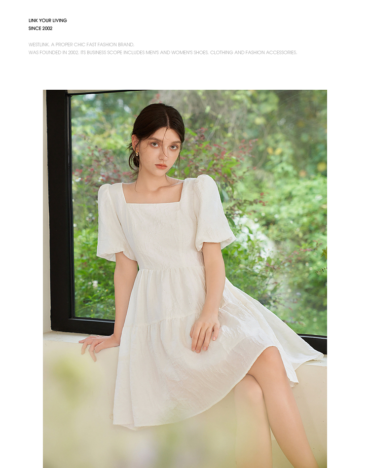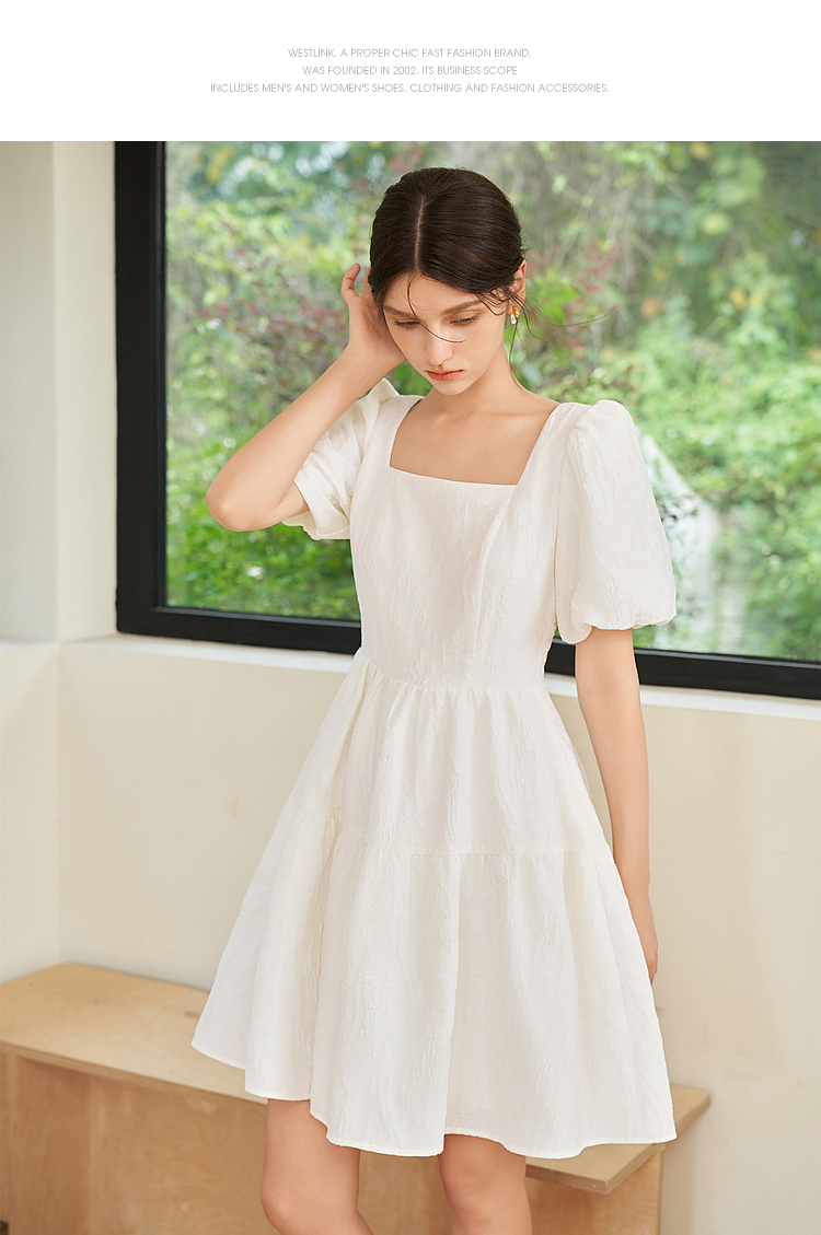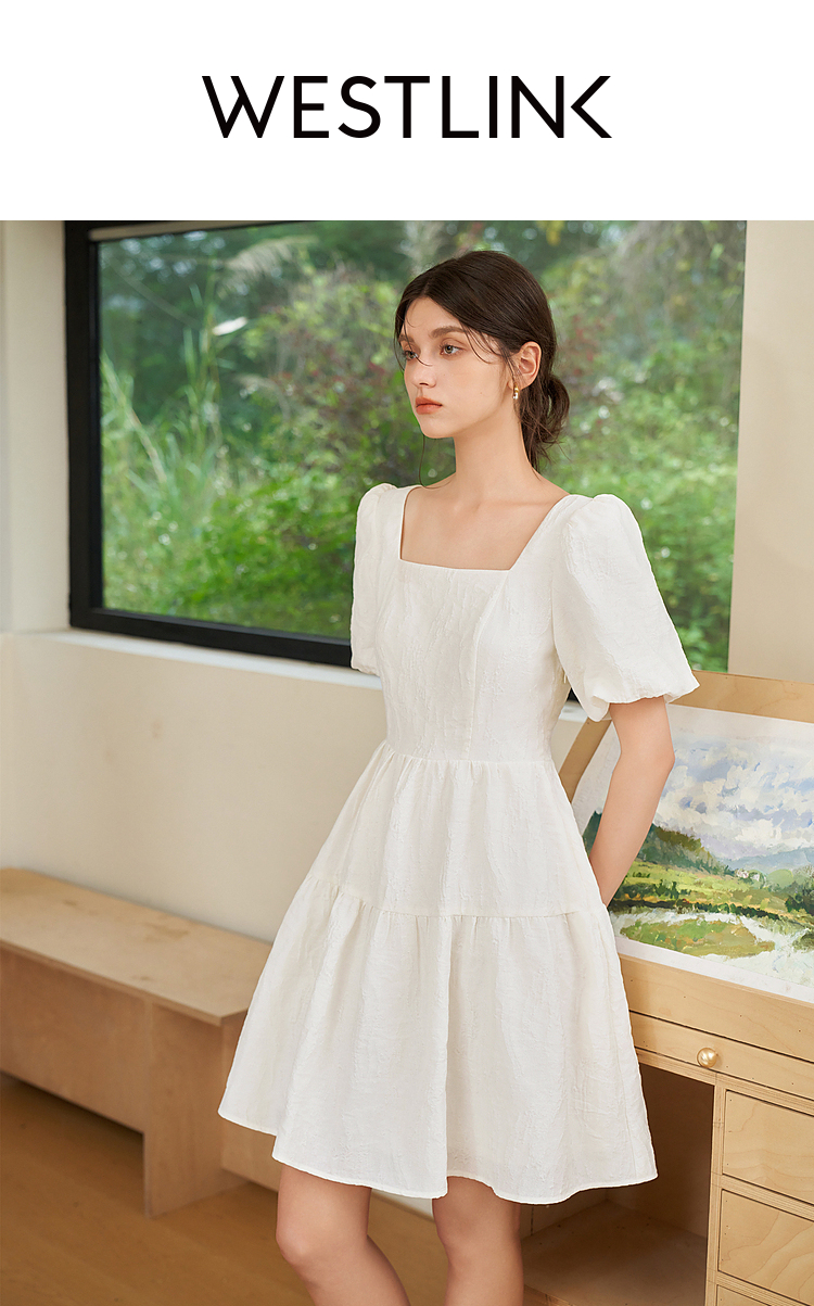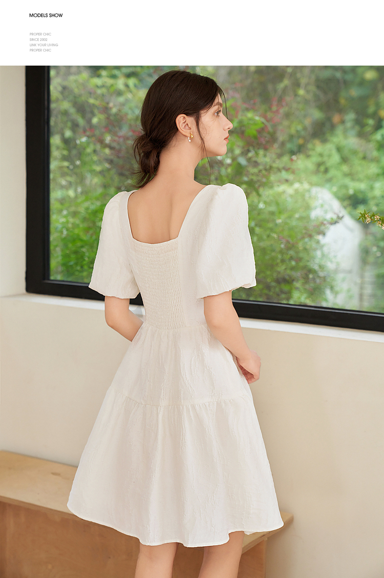 法式浪漫肌理感提花花苞袖连衣裙女夏季甜美白月光公主裙V1541122