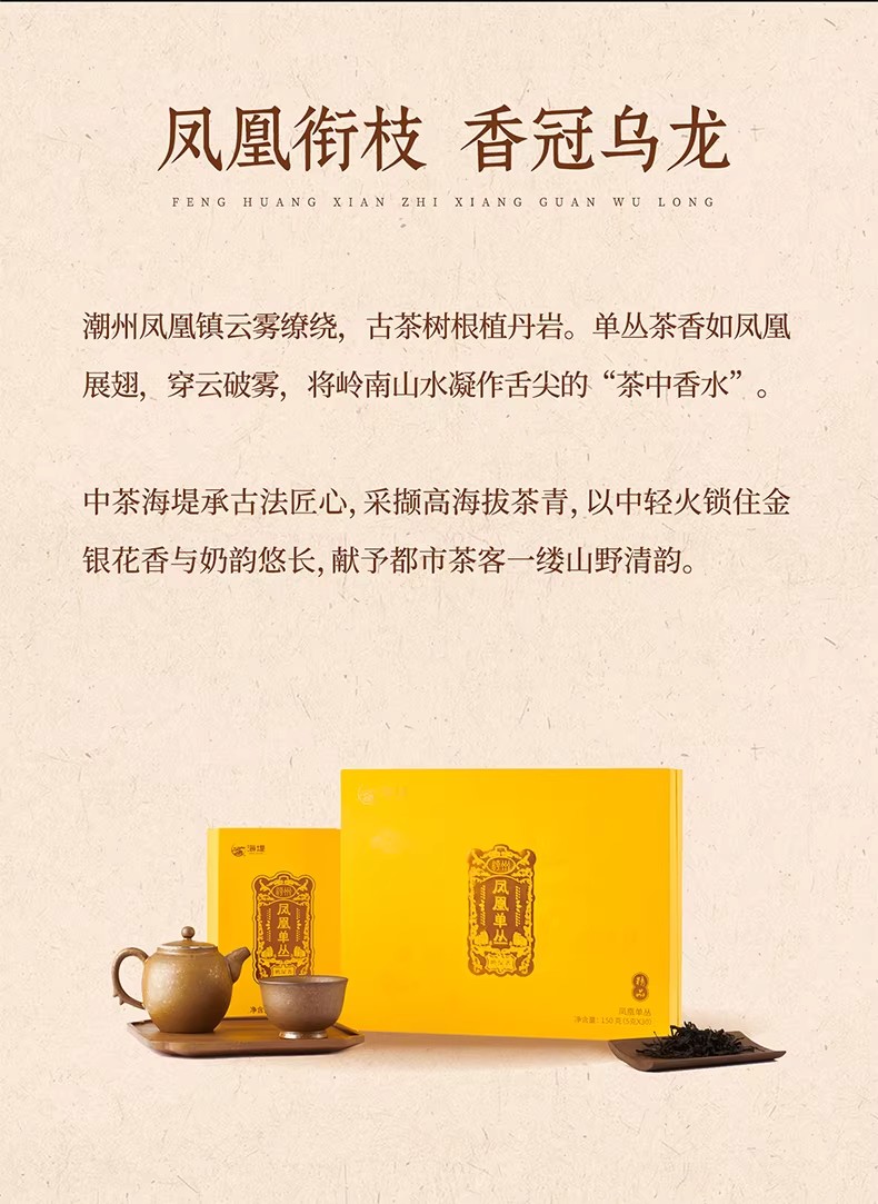 中茶海堤茶叶旗舰店凤凰单枞礼盒鸭屎香150g乌龙茶单丛送礼XT723