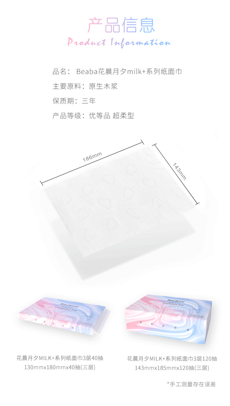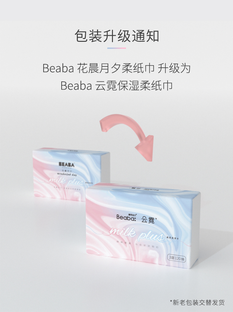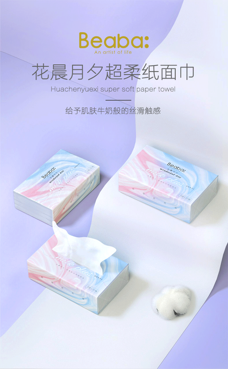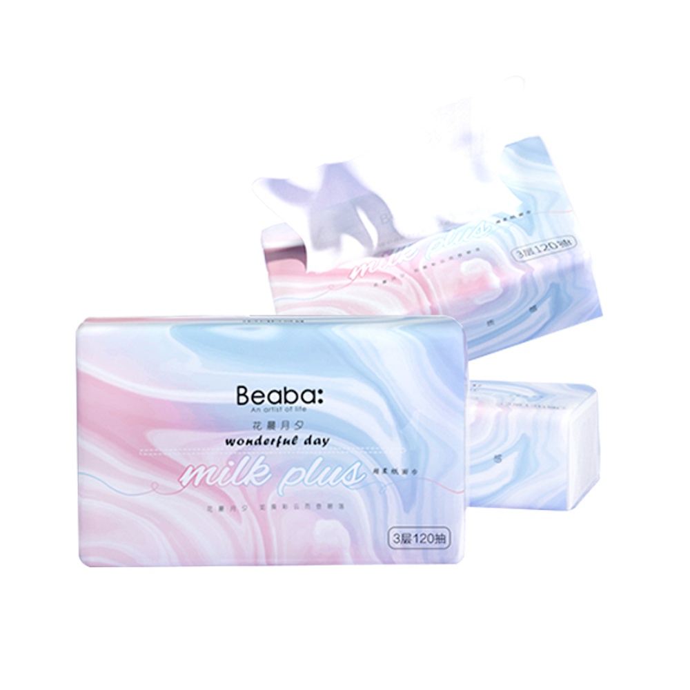 碧芭 花晨月夕milk plus纸面巾3层120抽(3连包)