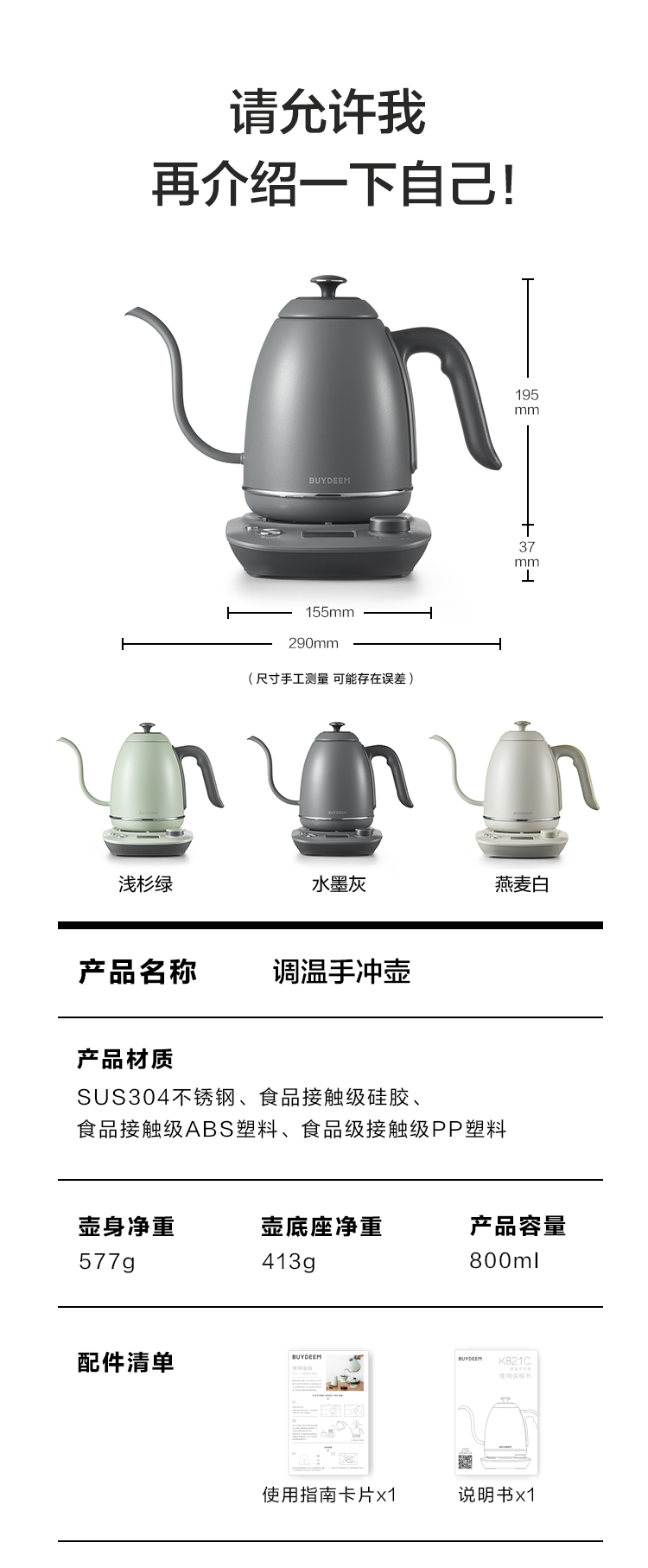 【北鼎调温手冲壶】烧水壶挂耳咖啡壶长嘴电热水壶加热功夫茶壶K821C