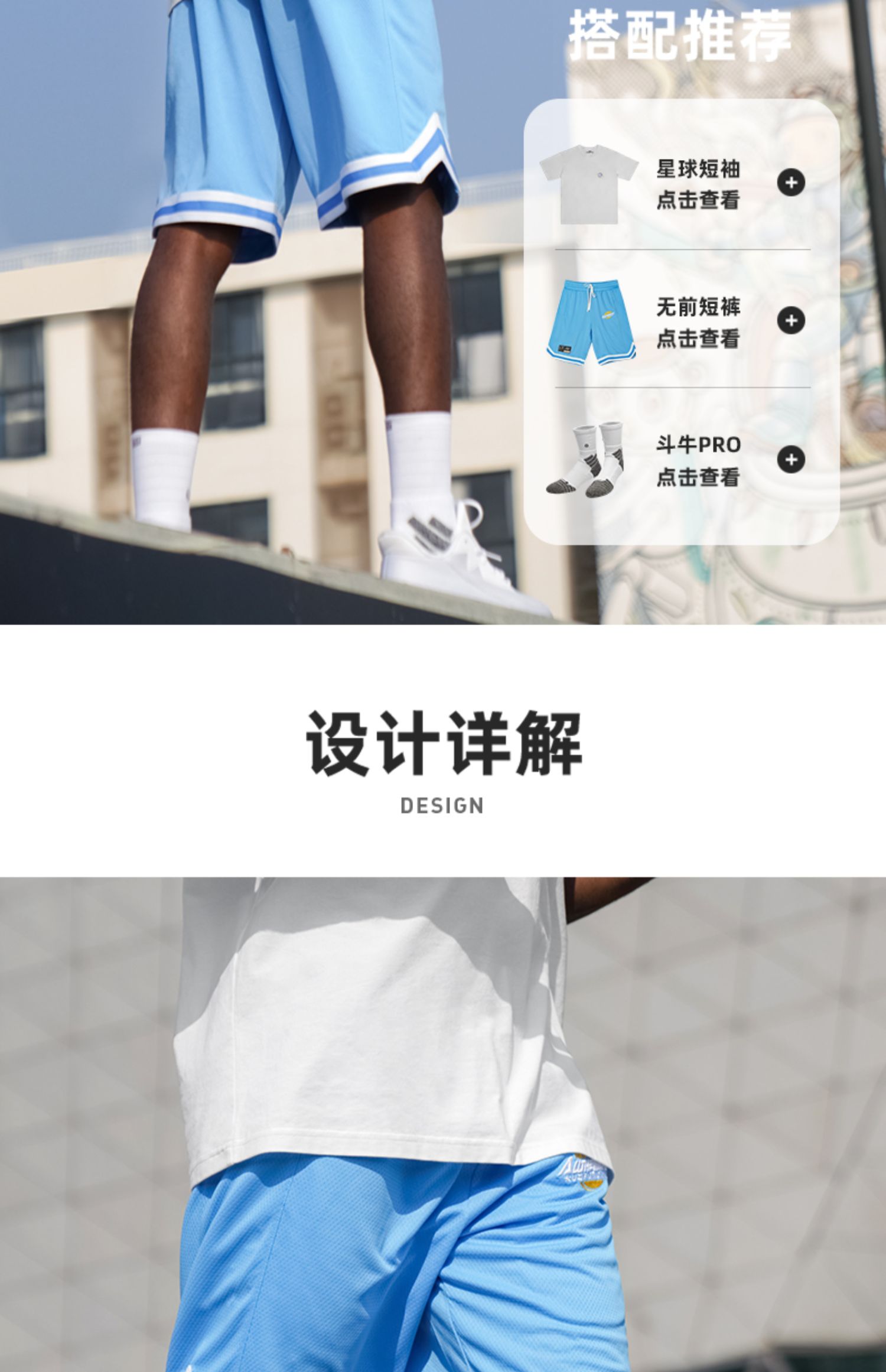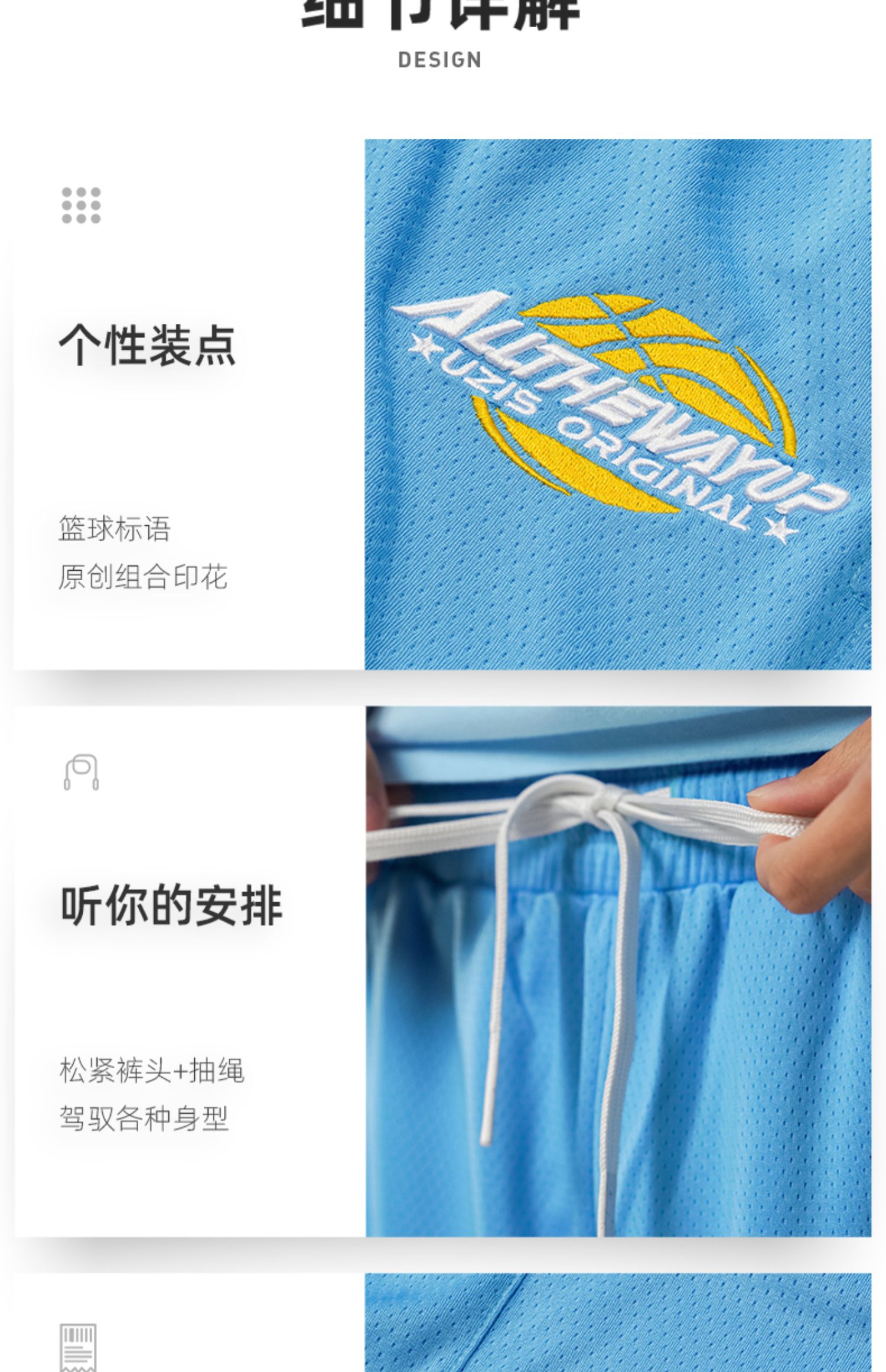 无界 UZIS篮球裤男夏季美式运动潮流五分宽松短裤训练球裤[无前]