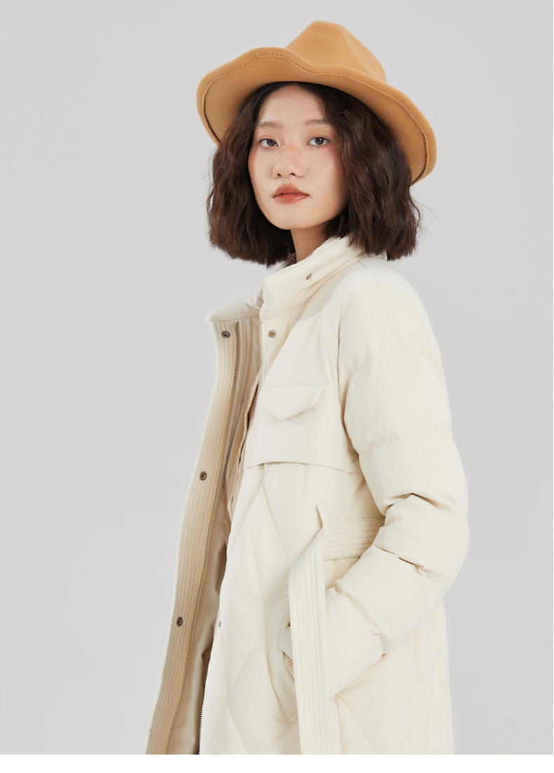 谜底长款羽绒服女2023冬新款时尚立领收腰气质鸭绒保暖239MY7310