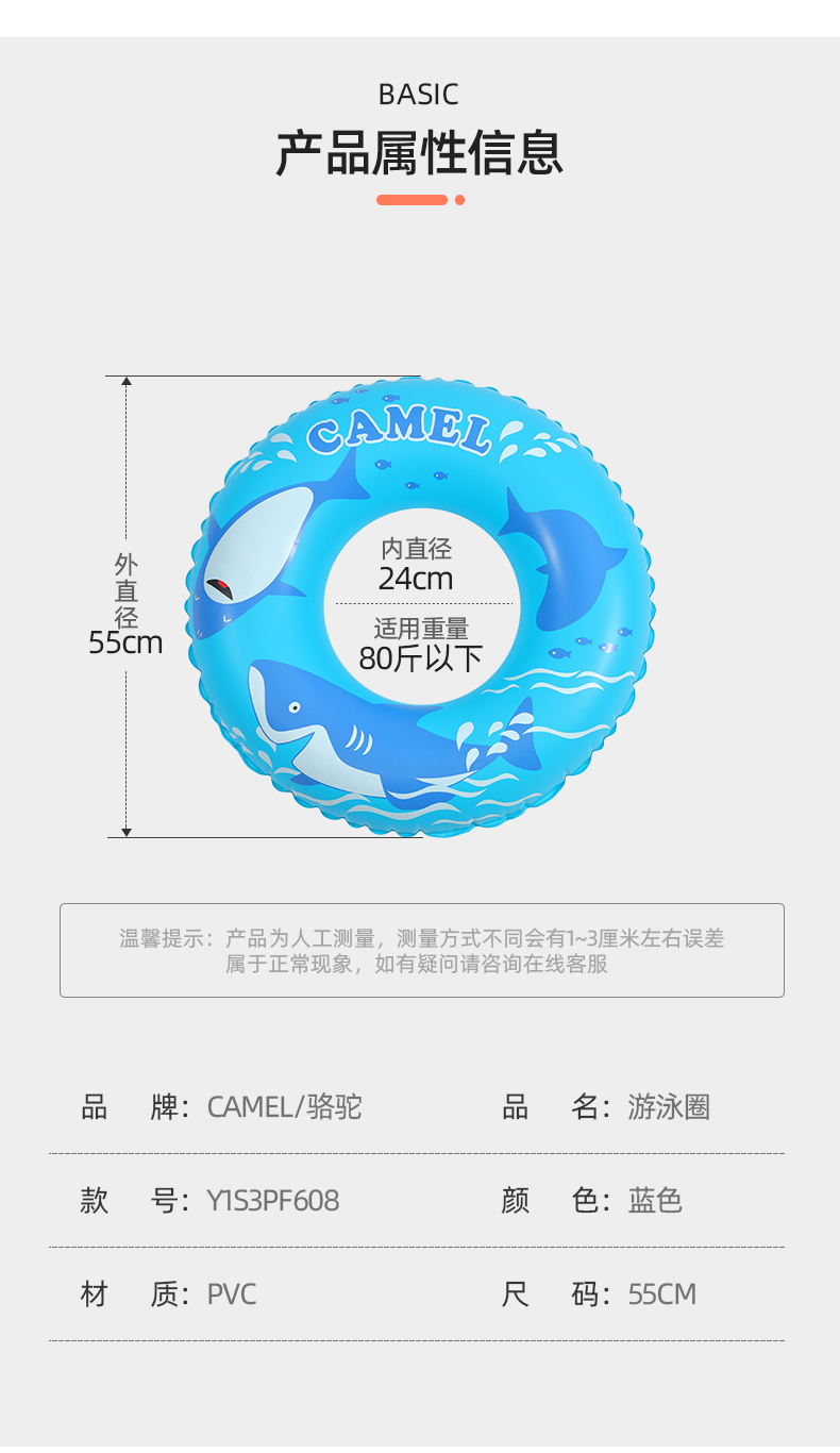 骆驼儿童游泳圈海边沙滩游泳浮圈男童女童宝宝加厚充气泳圈救生圈 Y1S3PF608
