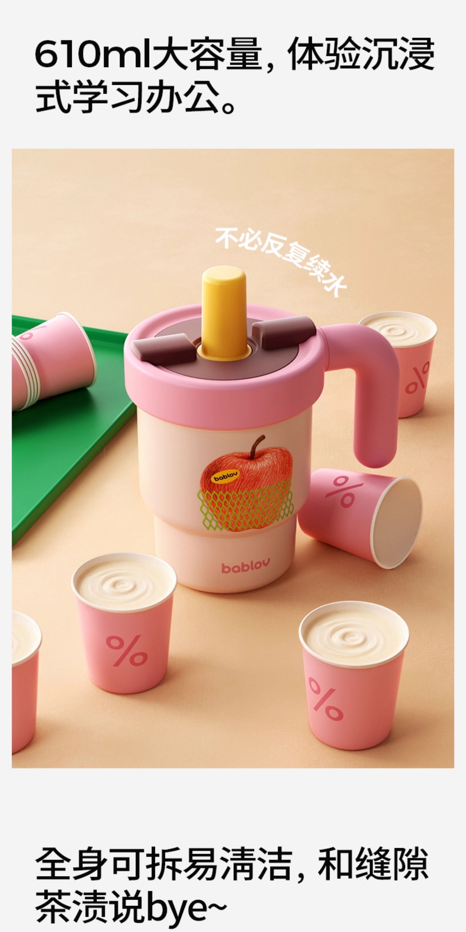 - BABLOV关注中国人的饮水健康,更不断探索未知可能性,专注于新生代自我个性表达,创造玩味新潮的产品体系。希望将水杯带入Z世代年轻人的生活,传递更多“饮”响力。