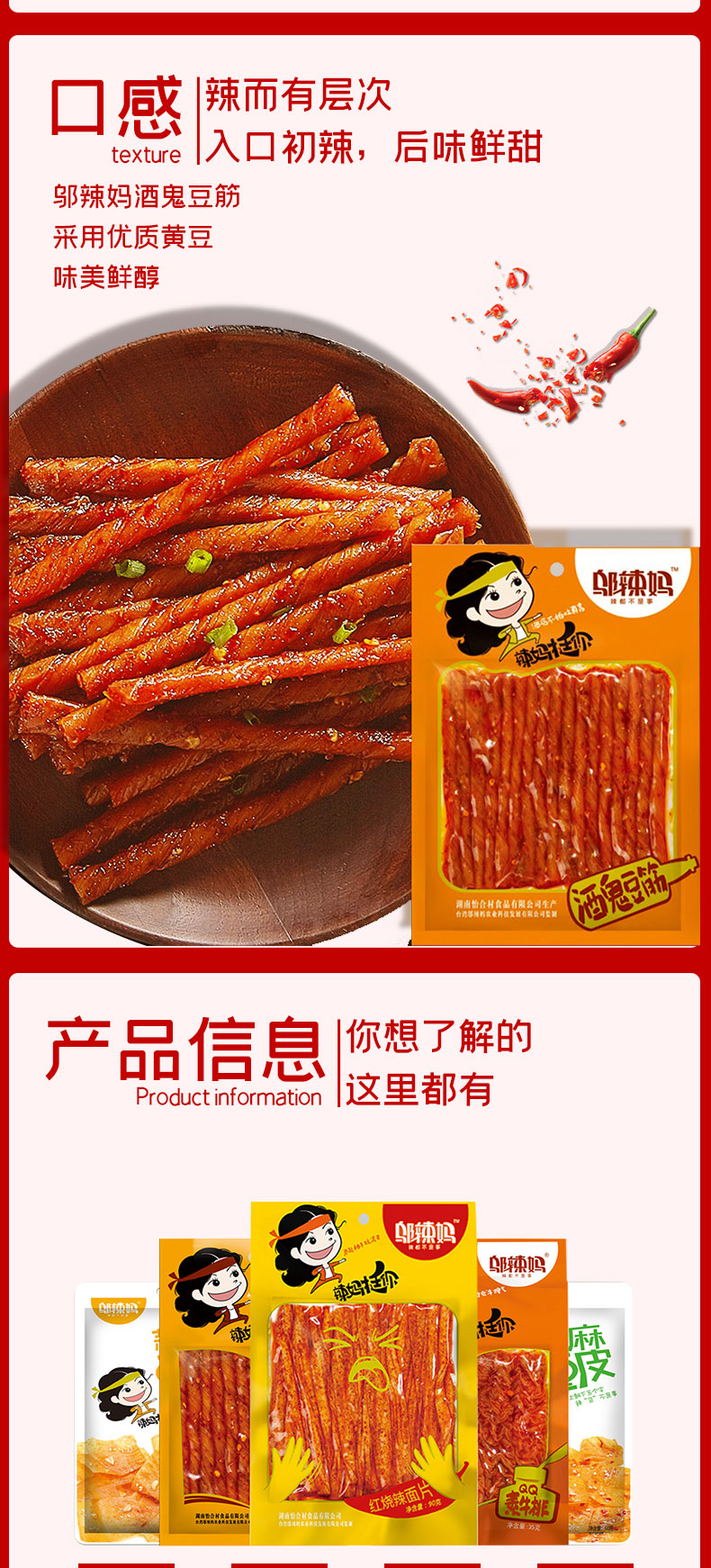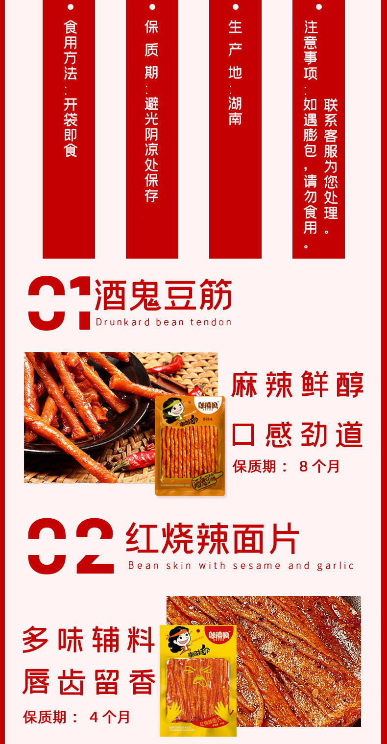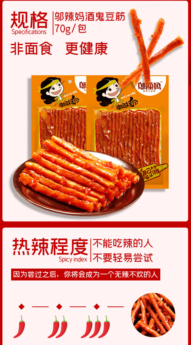 【湖南特产】酒鬼豆筋 70g*10袋 豆腐干 零食麻 网红辣条休闲小吃大礼包 邬辣妈