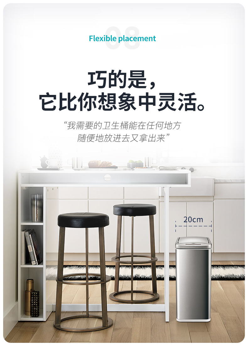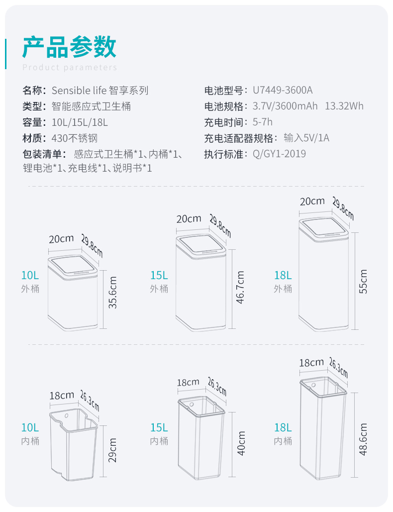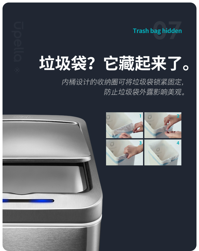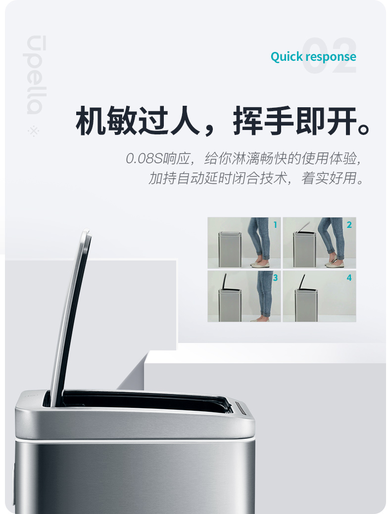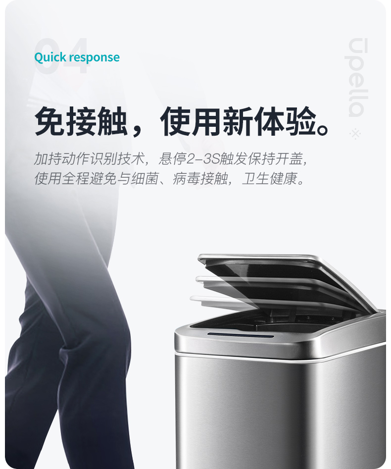 【清仓特惠4折,仅1件,无货退款】优百纳智享15L智能自动感应式垃圾桶电动不锈钢防水有带盖客厅卫生间
