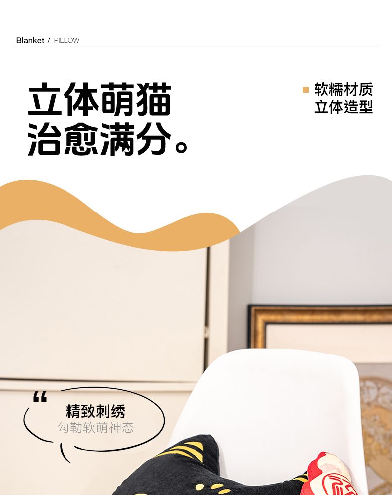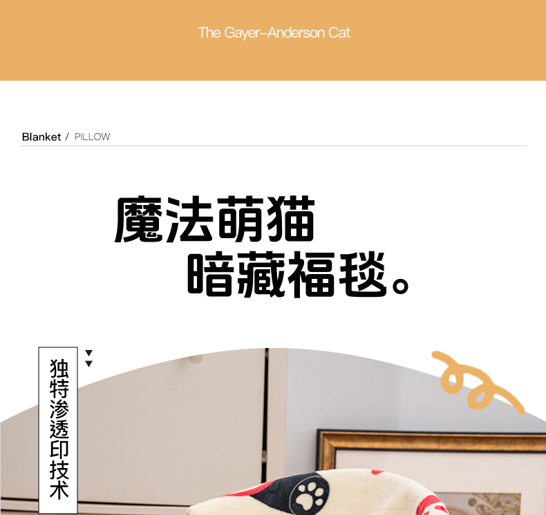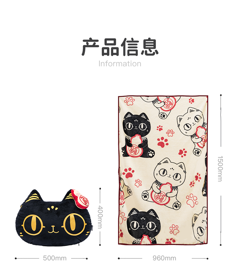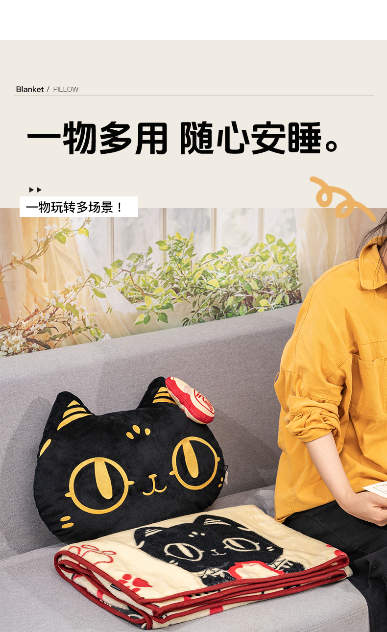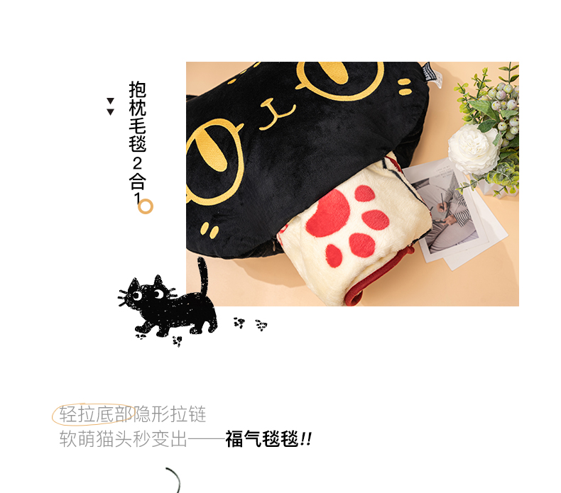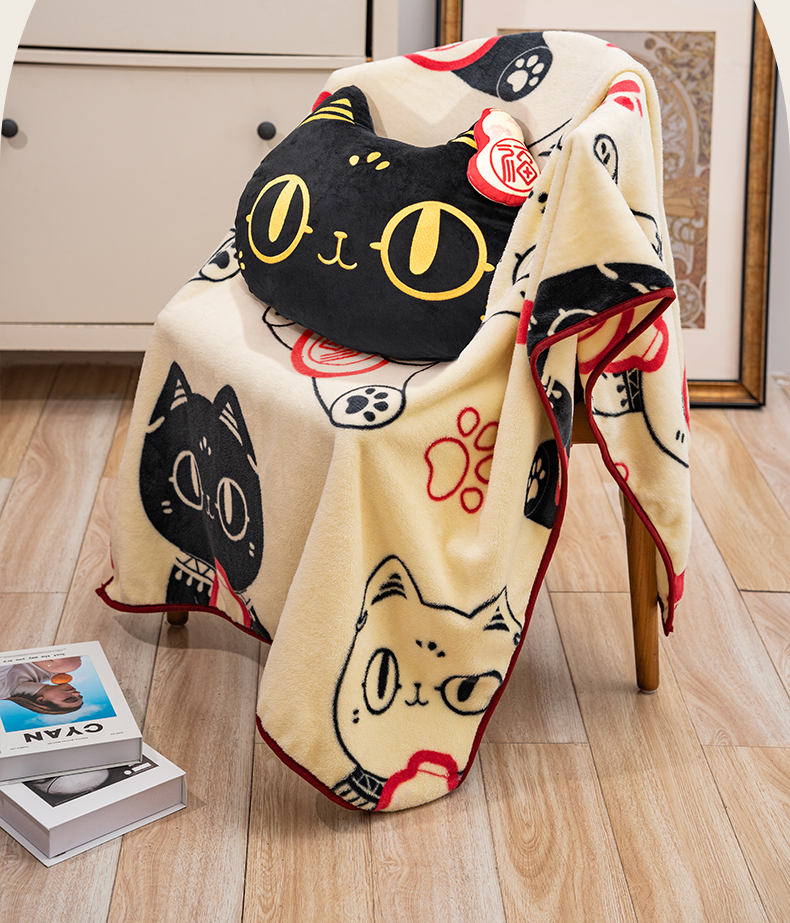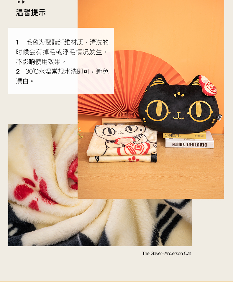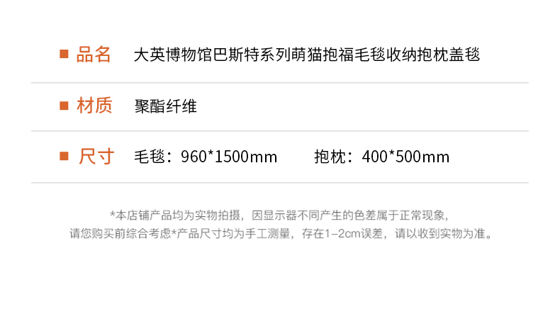 大英博物馆巴斯特系列萌猫抱福毛毯收纳抱枕盖毯