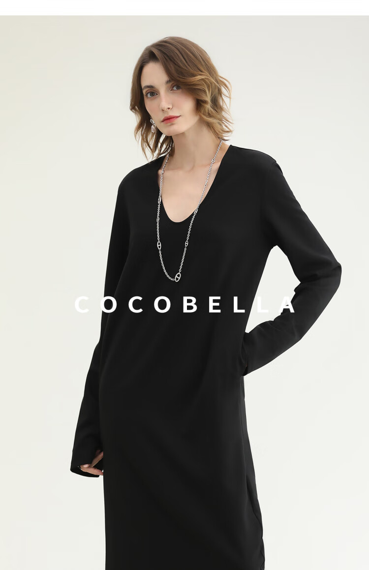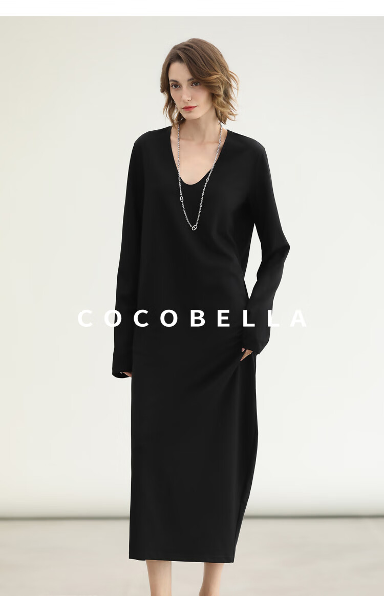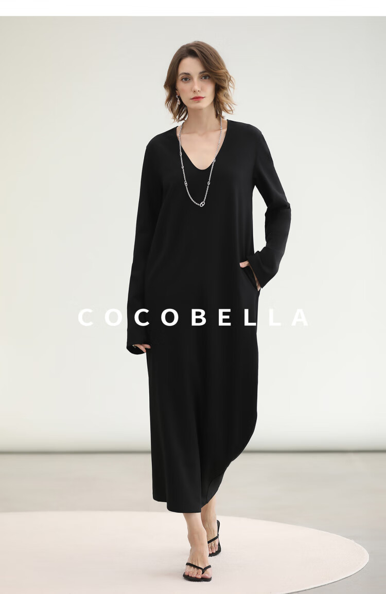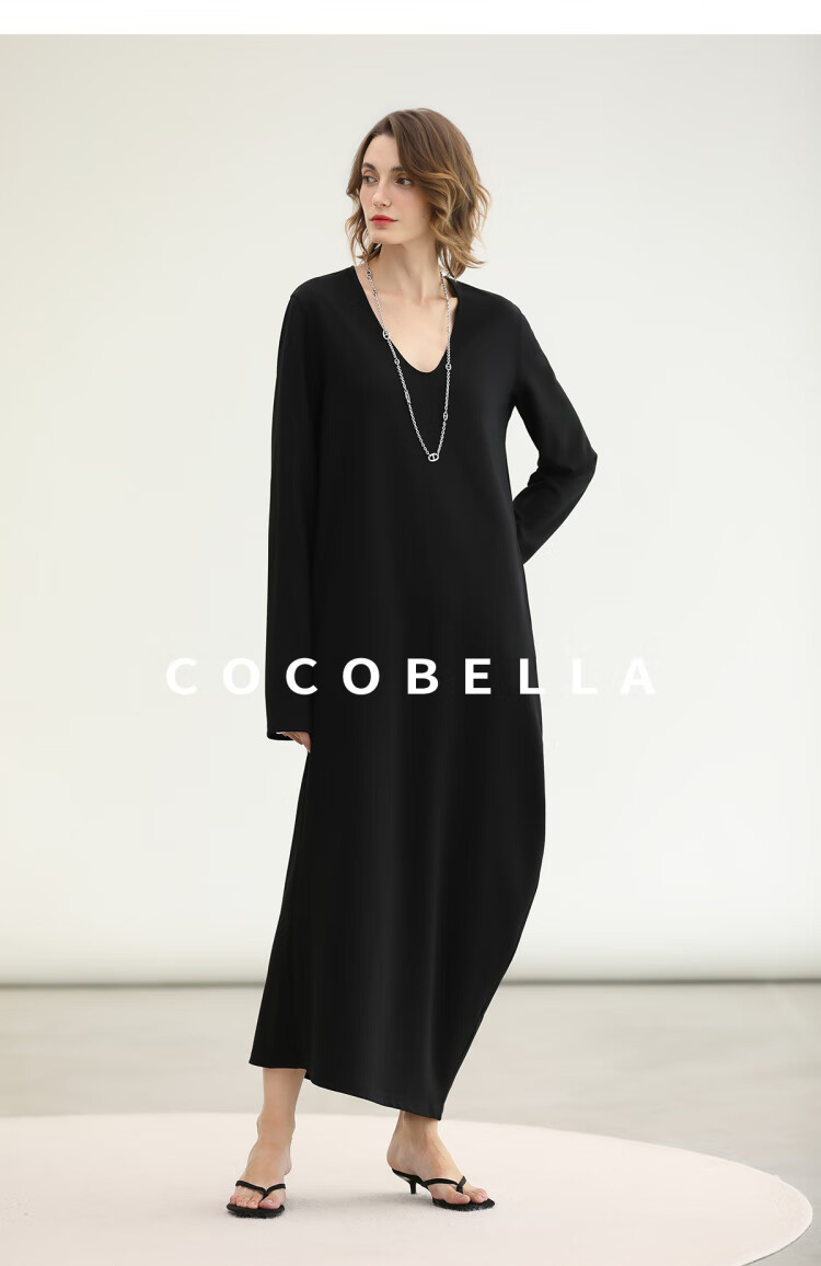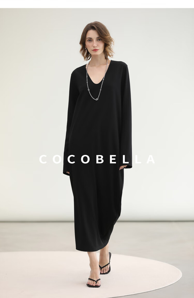 COCOBELLA纸片人不对称裙摆连衣裙亚赛尔混纺垂坠长裙FR3241