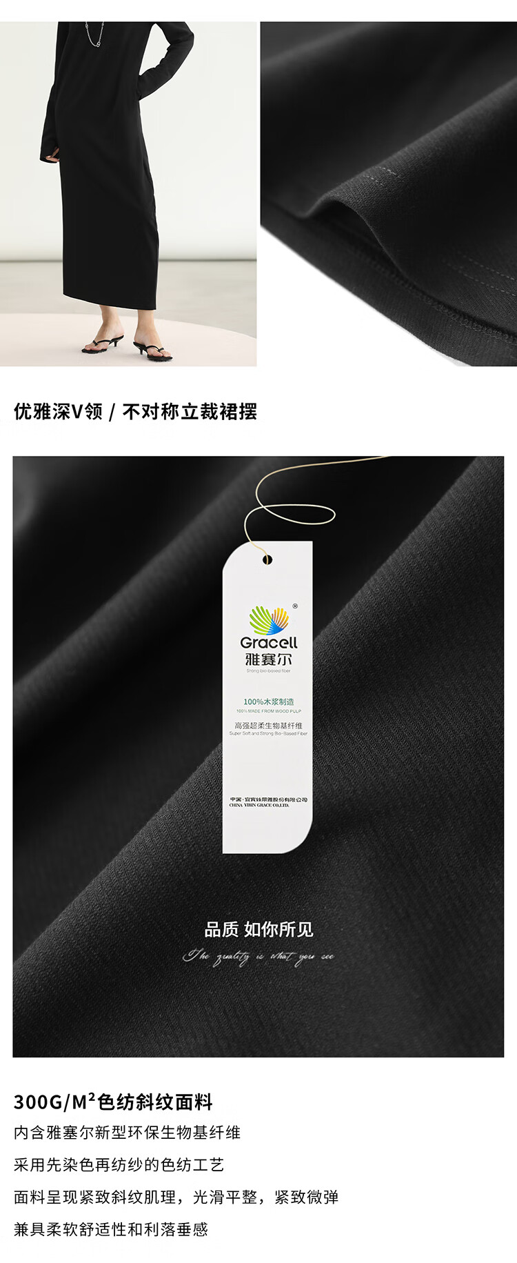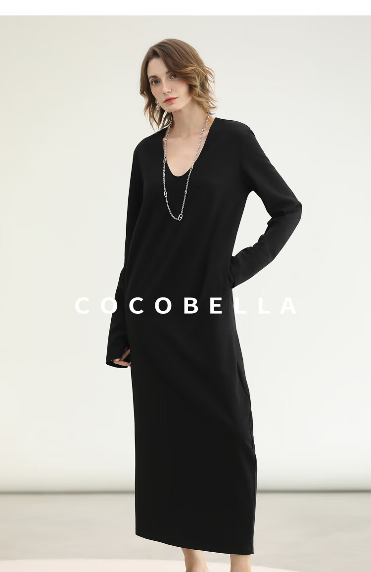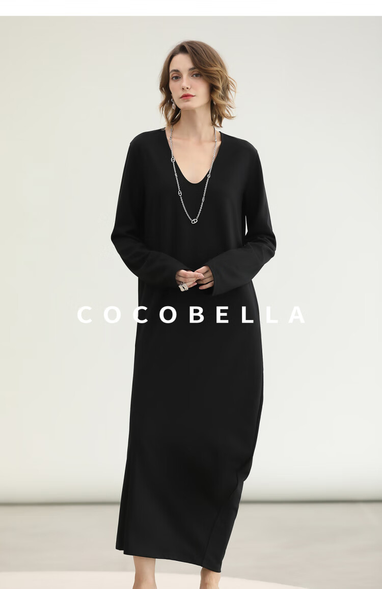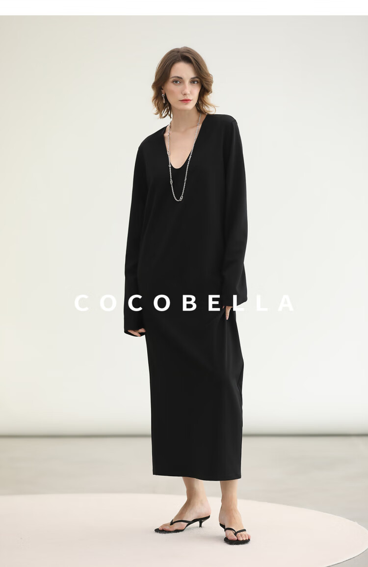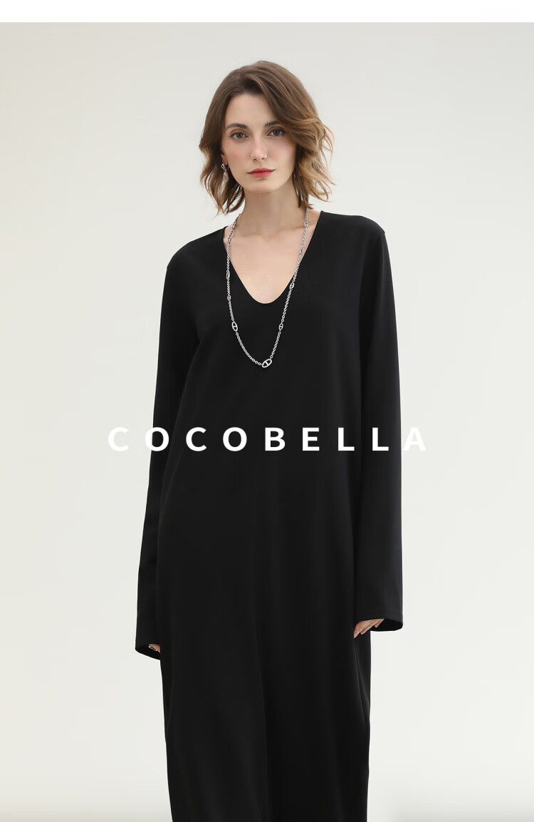 COCOBELLA纸片人不对称裙摆连衣裙亚赛尔混纺垂坠长裙FR3241