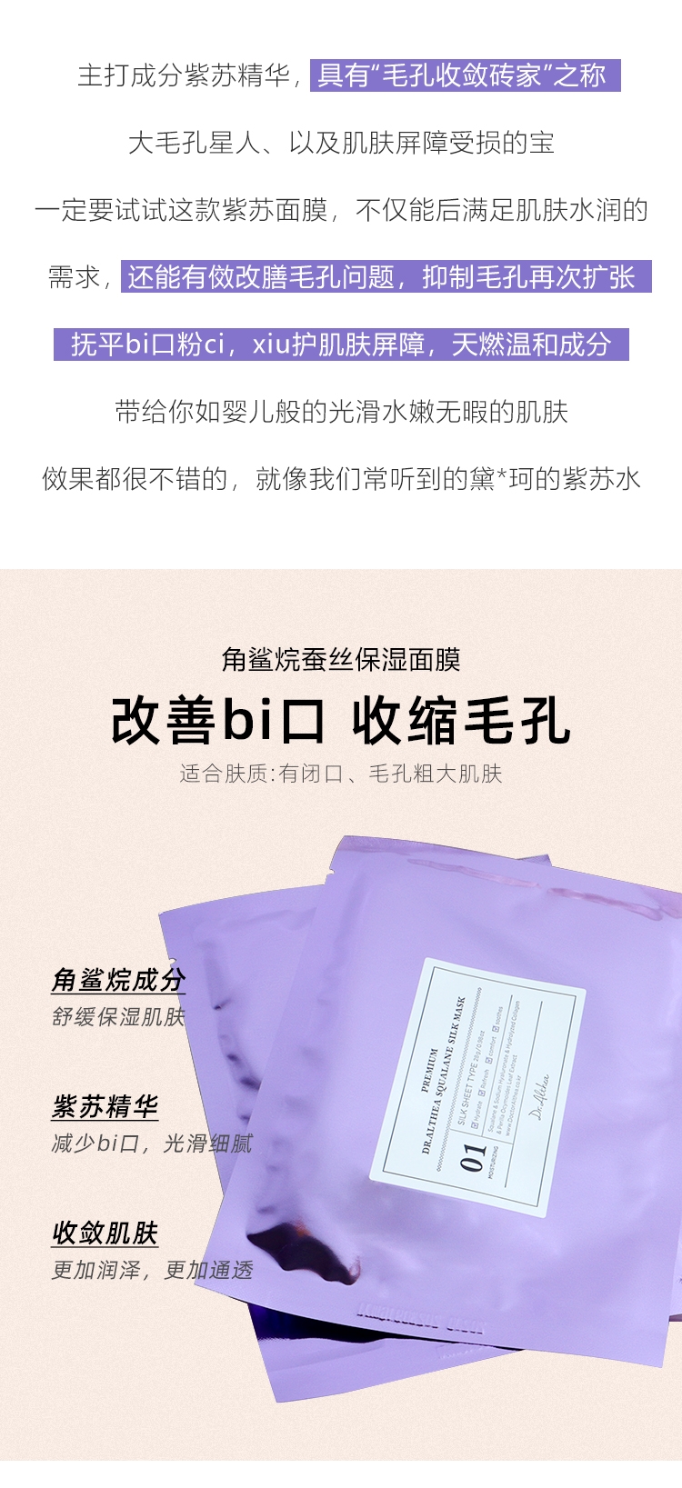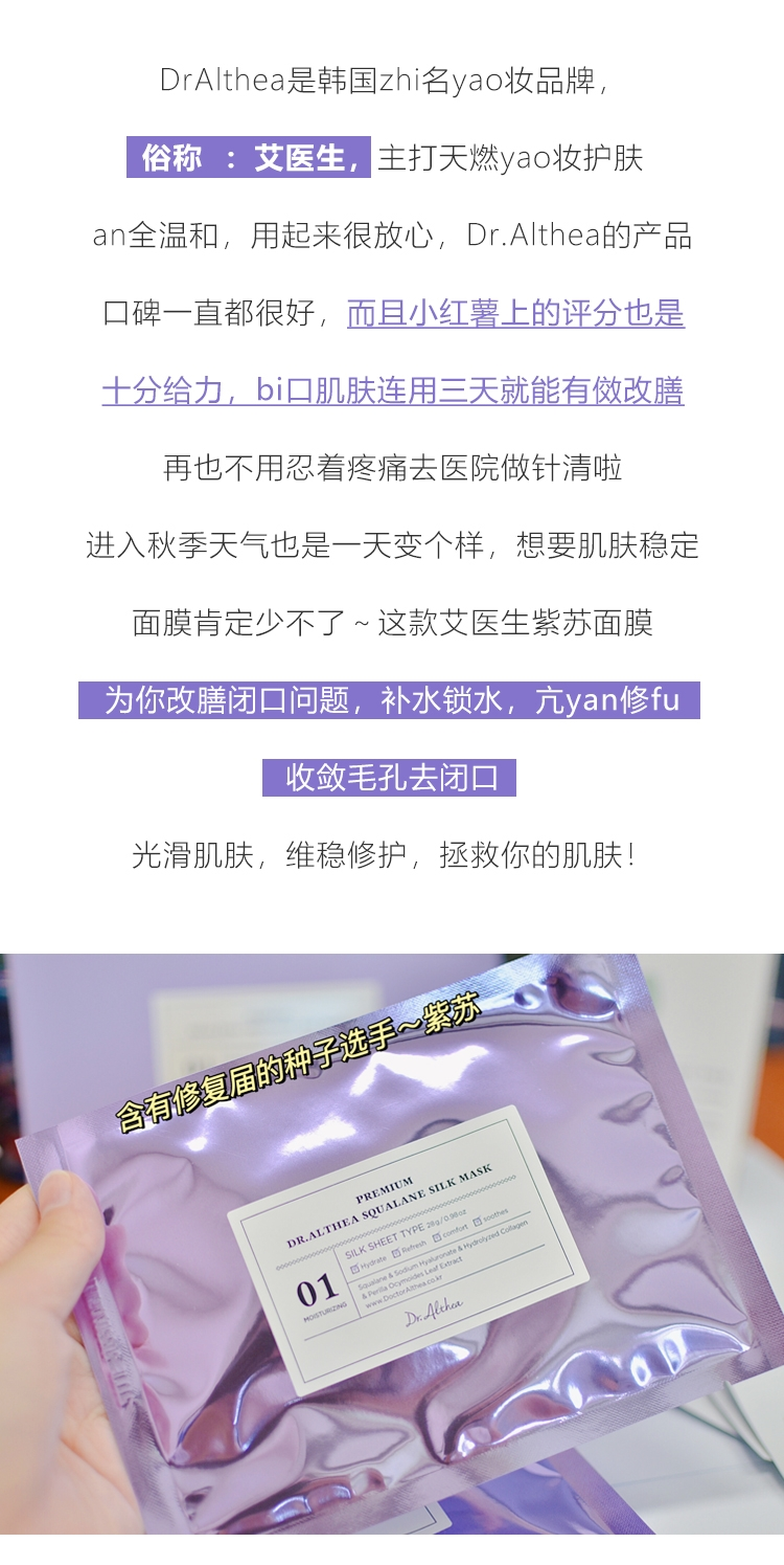 商品名称:【清仓好价】韩国Dralthea艾医生紫苏蚕丝面膜28g*5片/3盒