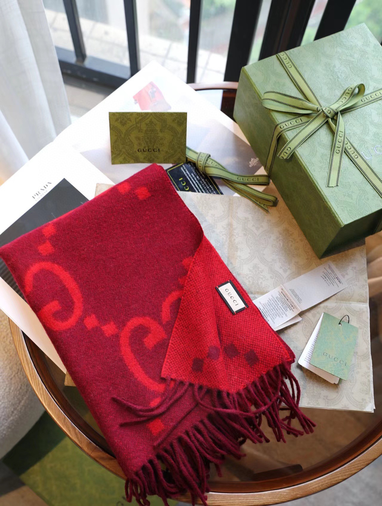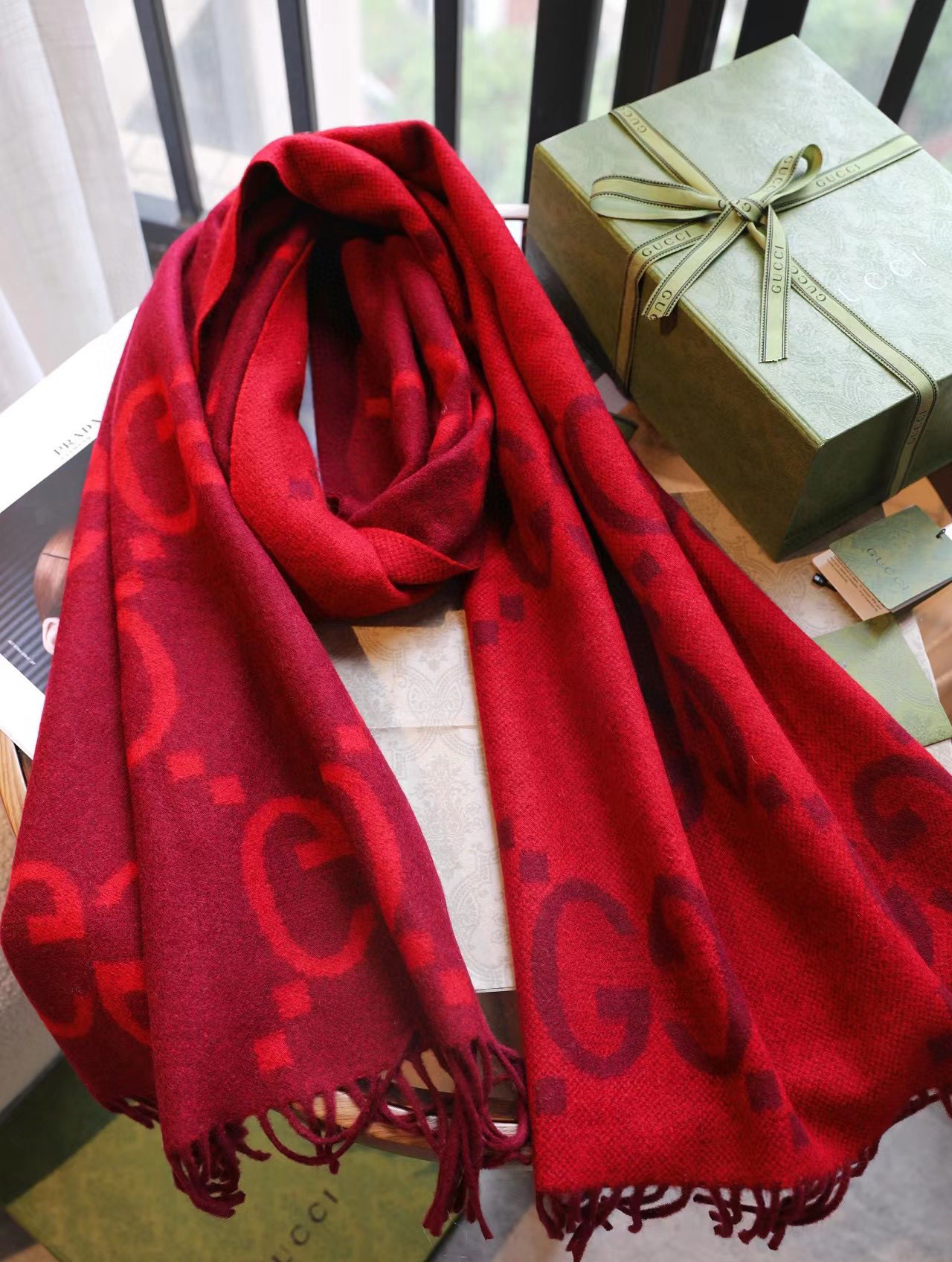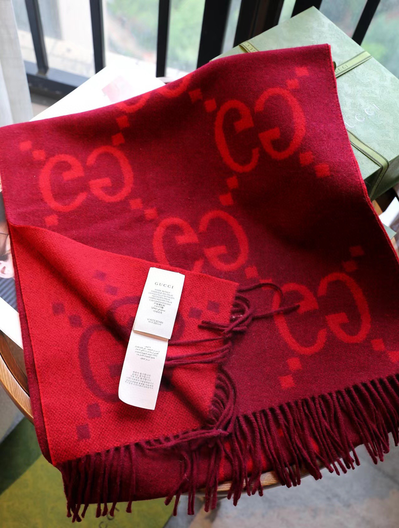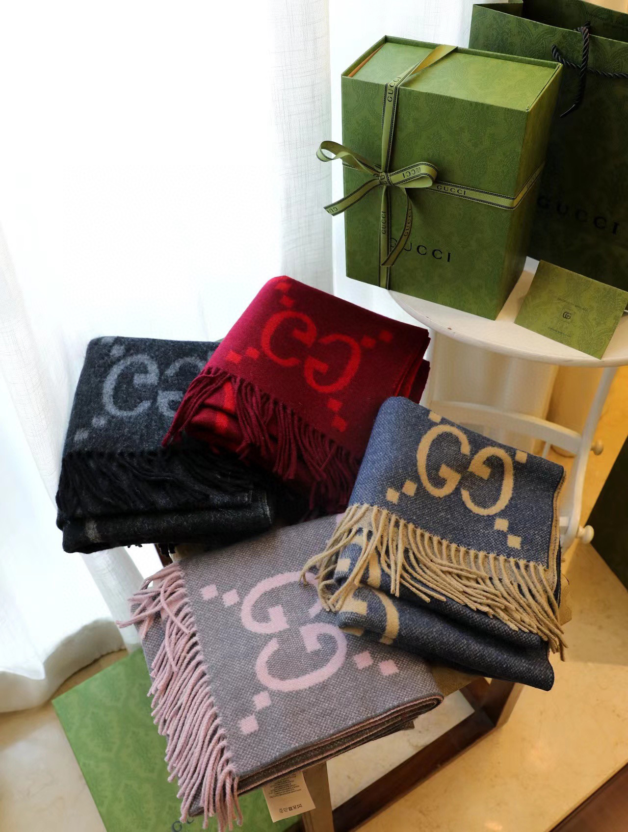 含全套礼盒包邮【▪️重磅💣真香必入款!!Gucci重磅纯羊绒新款围巾】专柜最最新款,专柜售价7200的好货!就是喜欢Gucci这种调调!长在很多人喜欢这种时髦感的审美上!!这东西100%真心是跟着专柜一起的好东西!! 一模一样的品相!!!