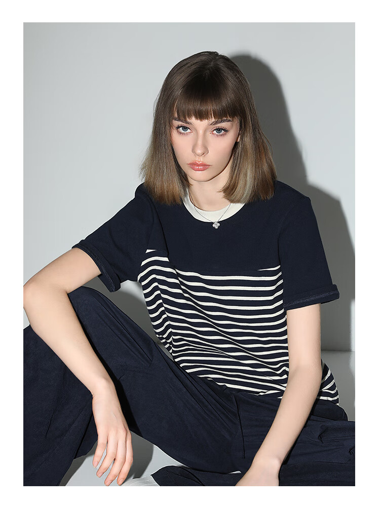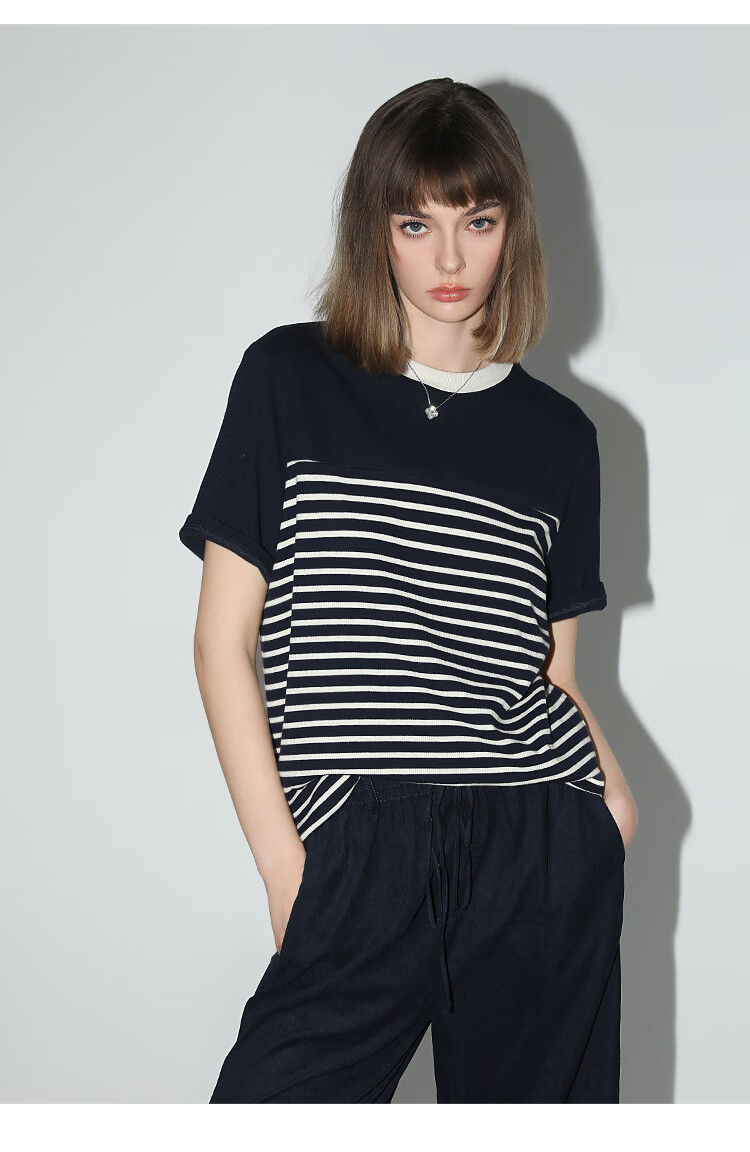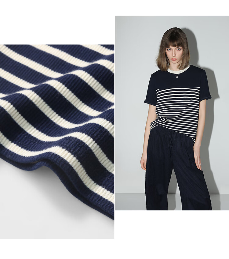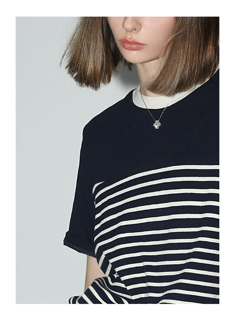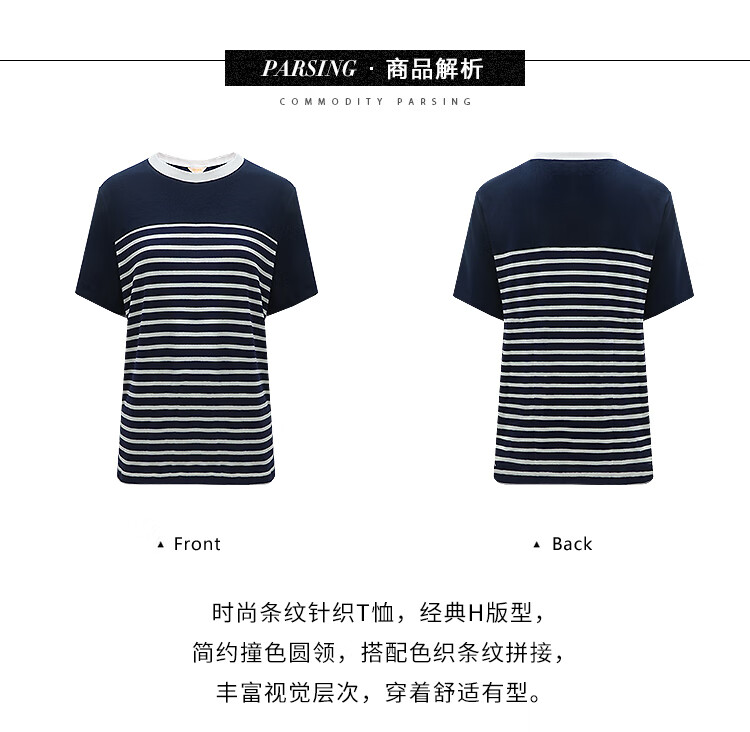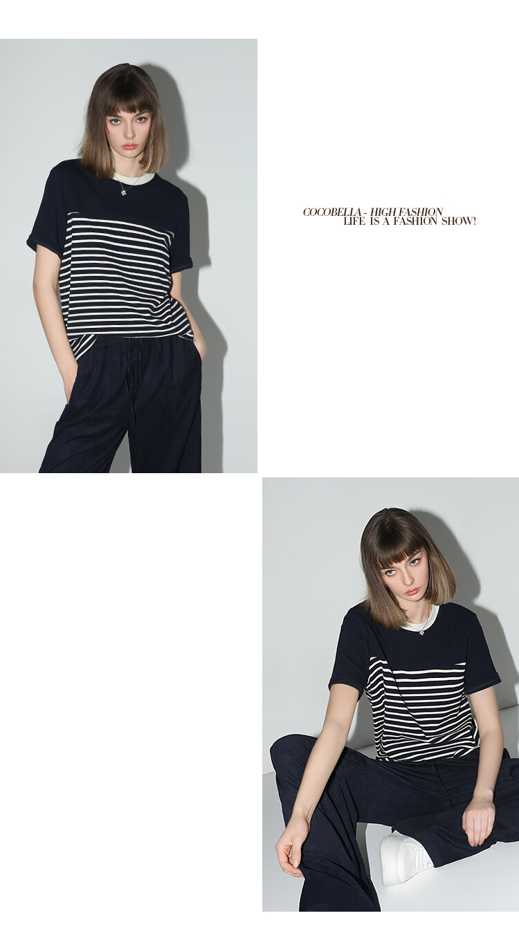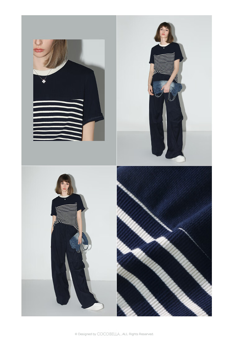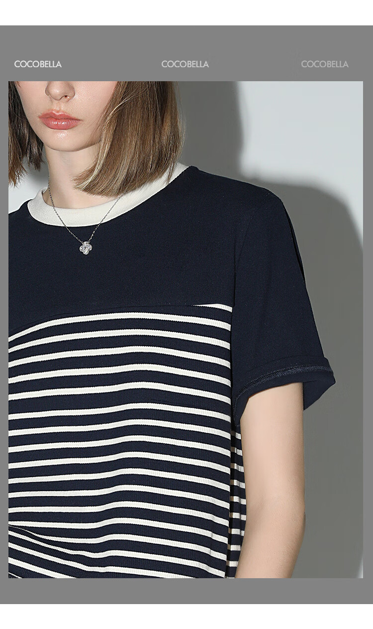 【秒杀】COCOBELLA软糯细针多色条纹针织短袖T恤夏撞色拼接上衣TS7022