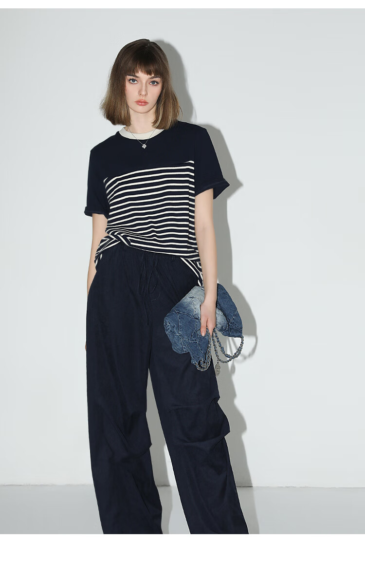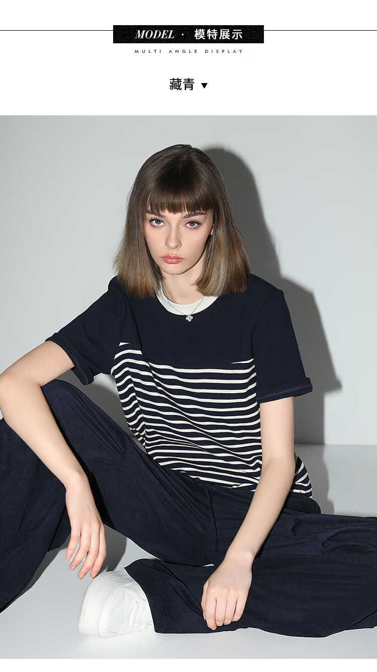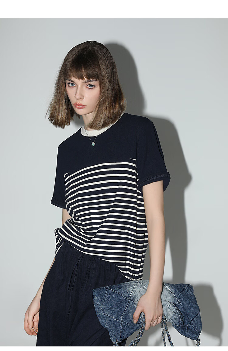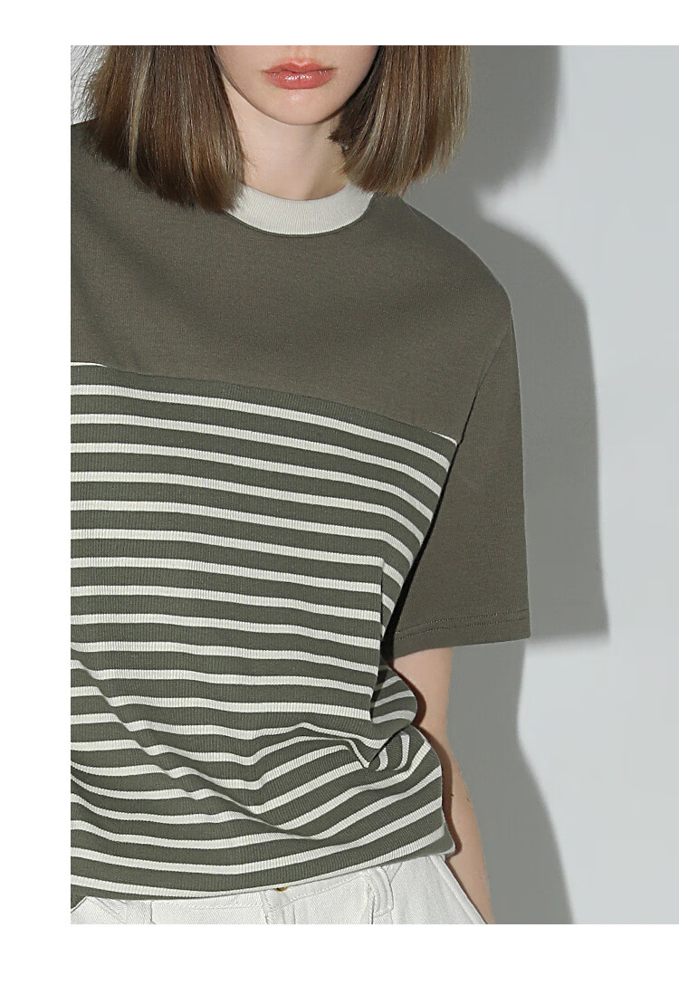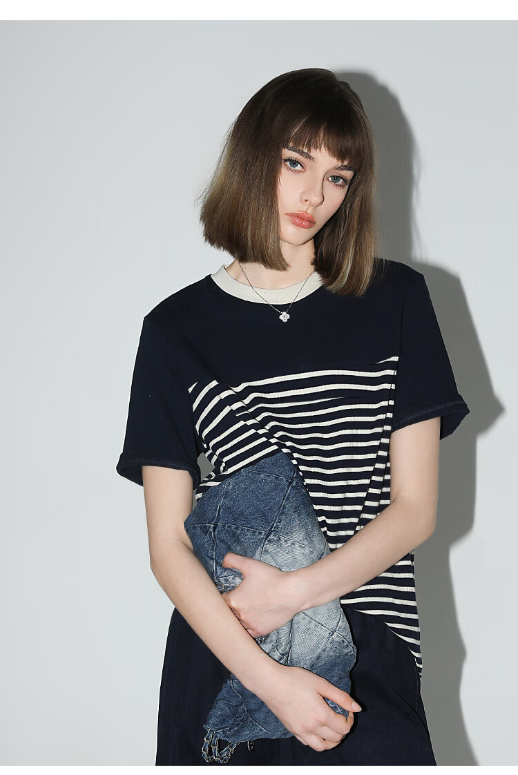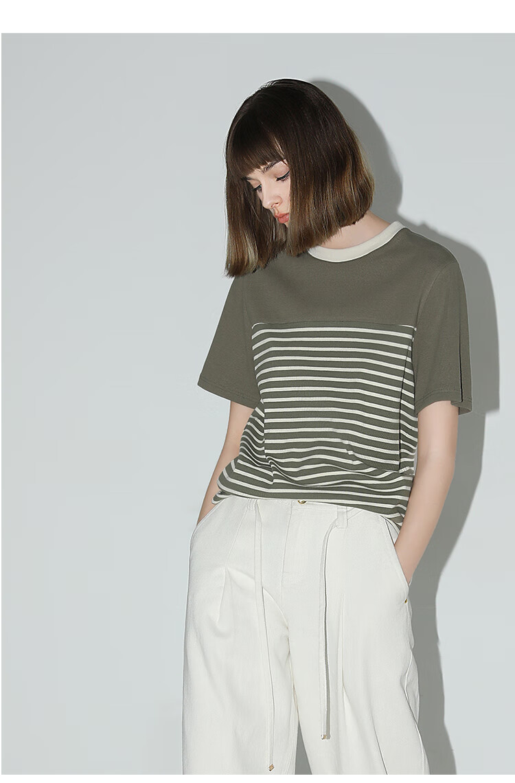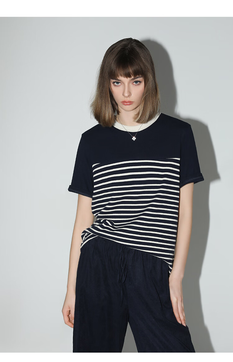 【秒杀】COCOBELLA软糯细针多色条纹针织短袖T恤夏撞色拼接上衣TS7022