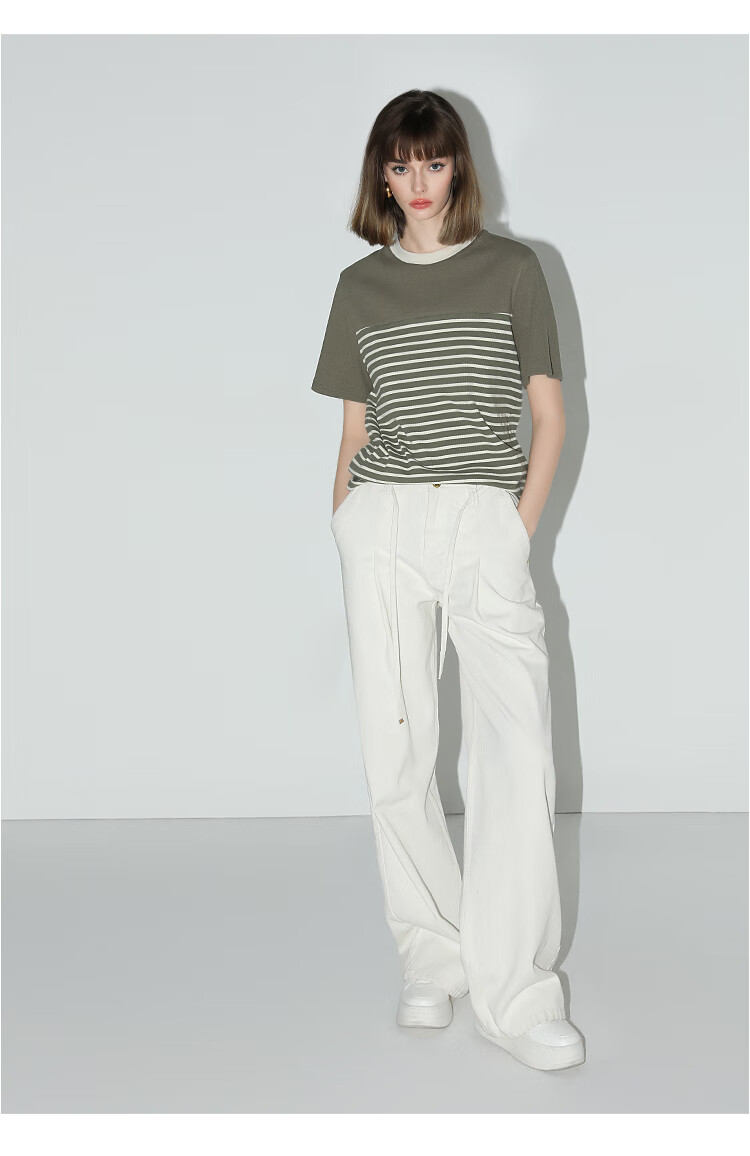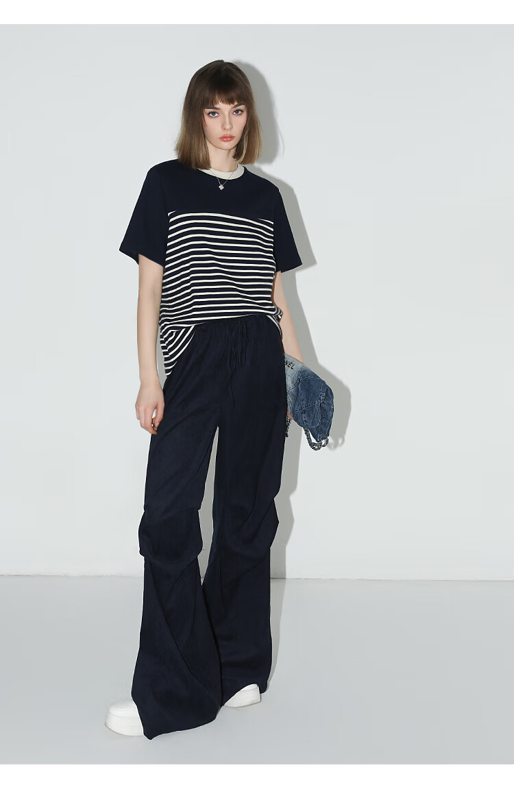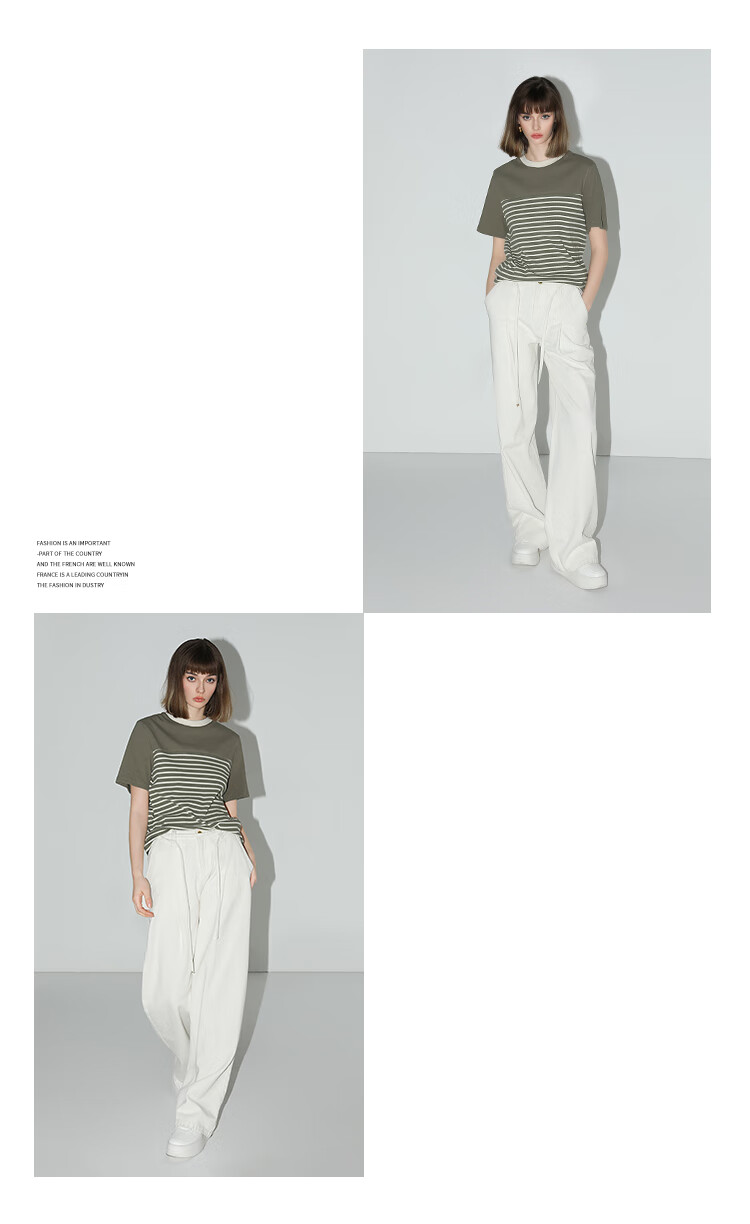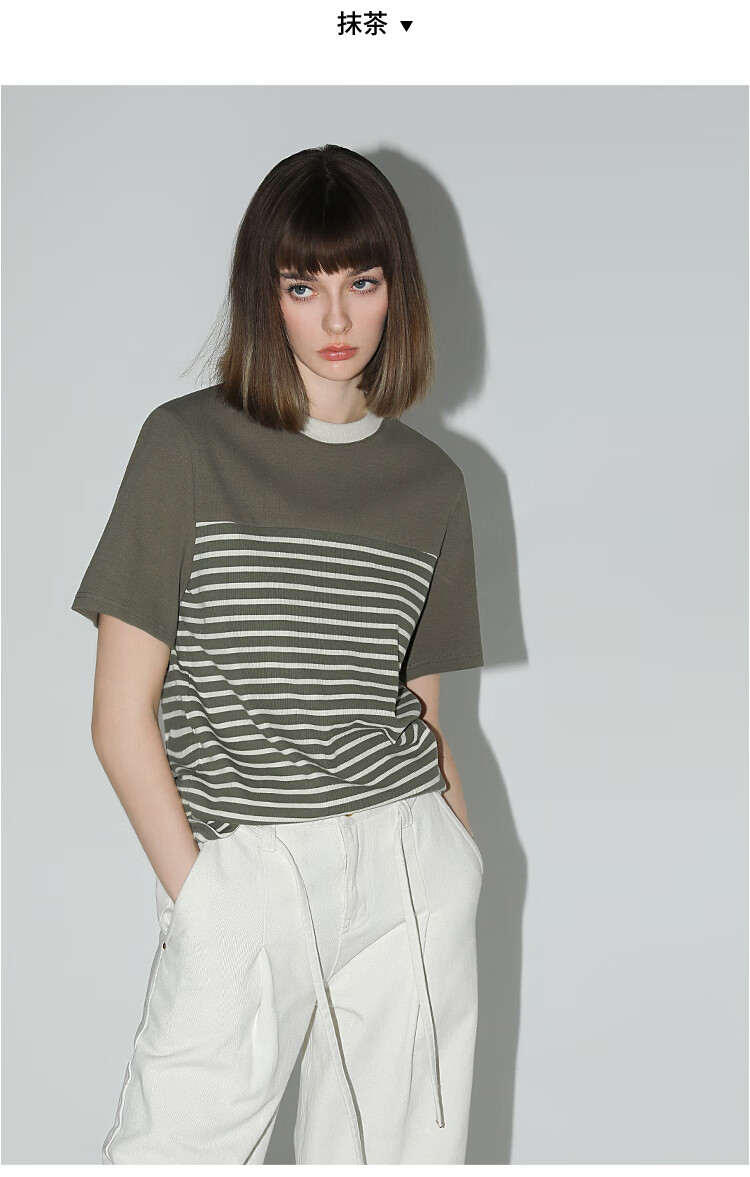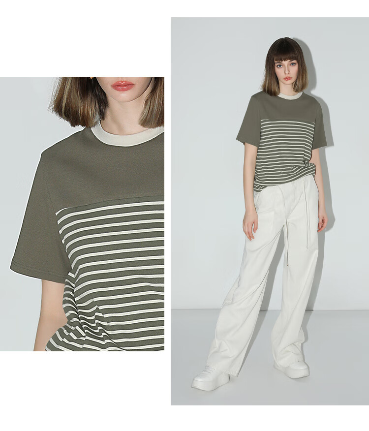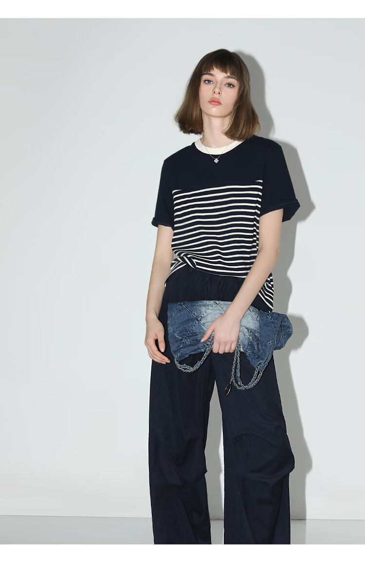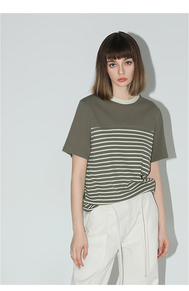 【秒杀】COCOBELLA软糯细针多色条纹针织短袖T恤夏撞色拼接上衣TS7022