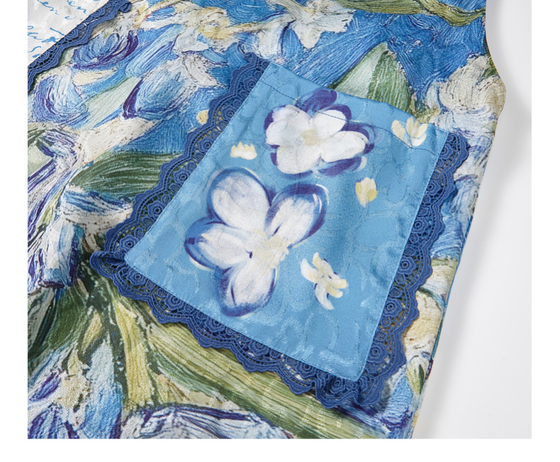 两三事心向莫奈 夏季新款文艺风油画印花口袋长袖衬衫女宽松