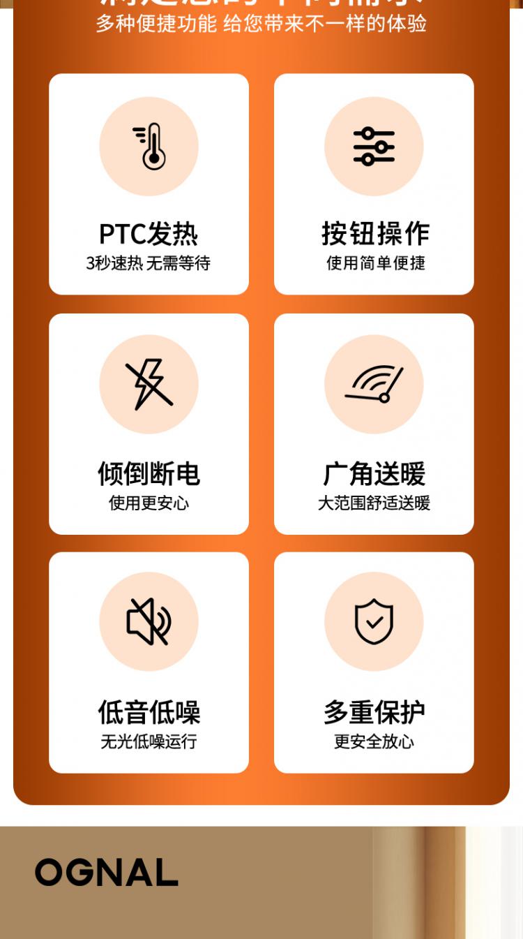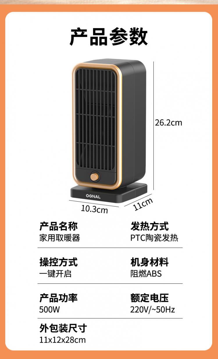 奥戈那 取暖器家用暖风机大面积制热轻音电暖器节能恒温暖气片 HD05-R65