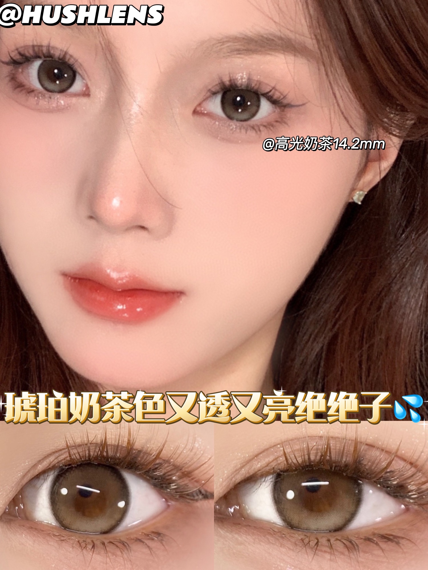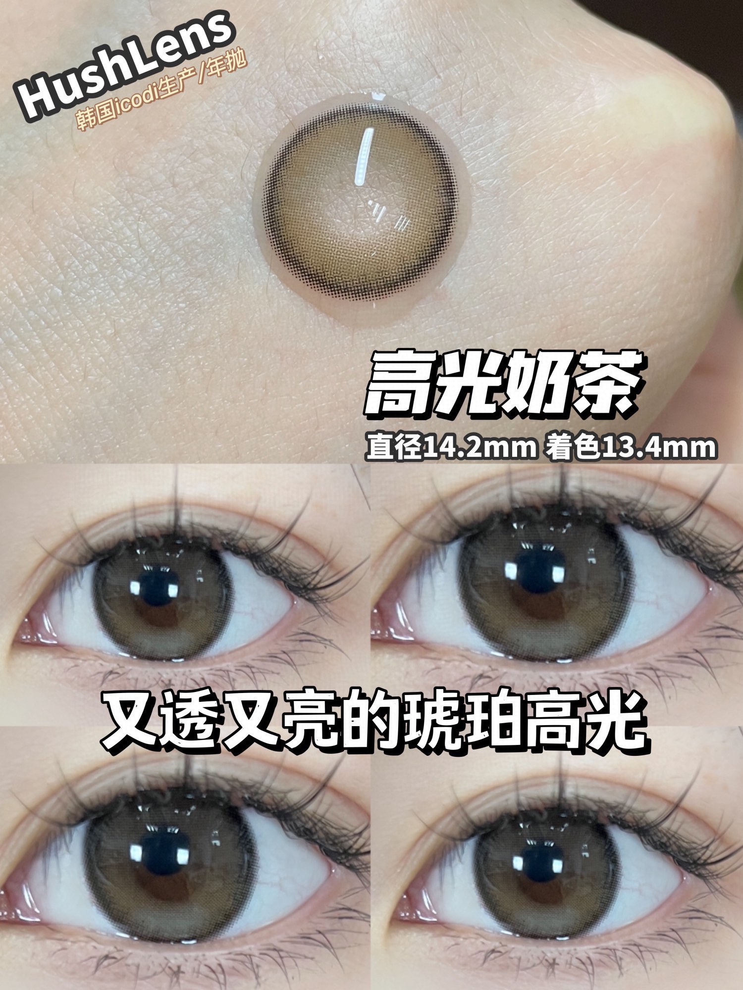 【年抛】款式名字:高光奶茶 hushlens | 中直径14.2 着色13.4 | 【同品牌多副美瞳更划算,选款色板在详情页内】