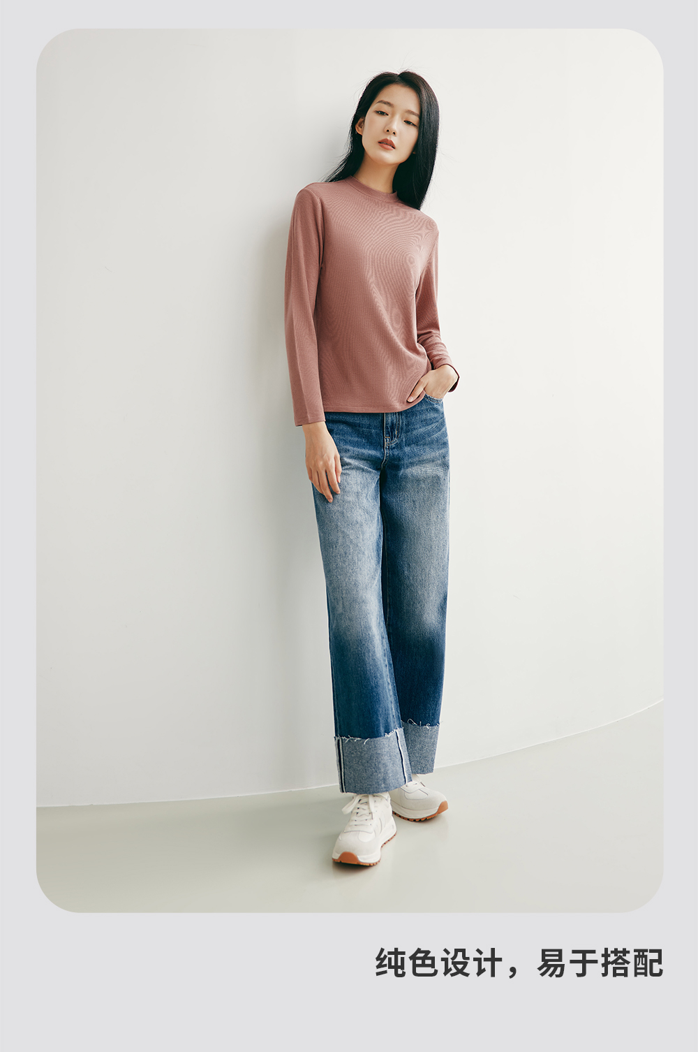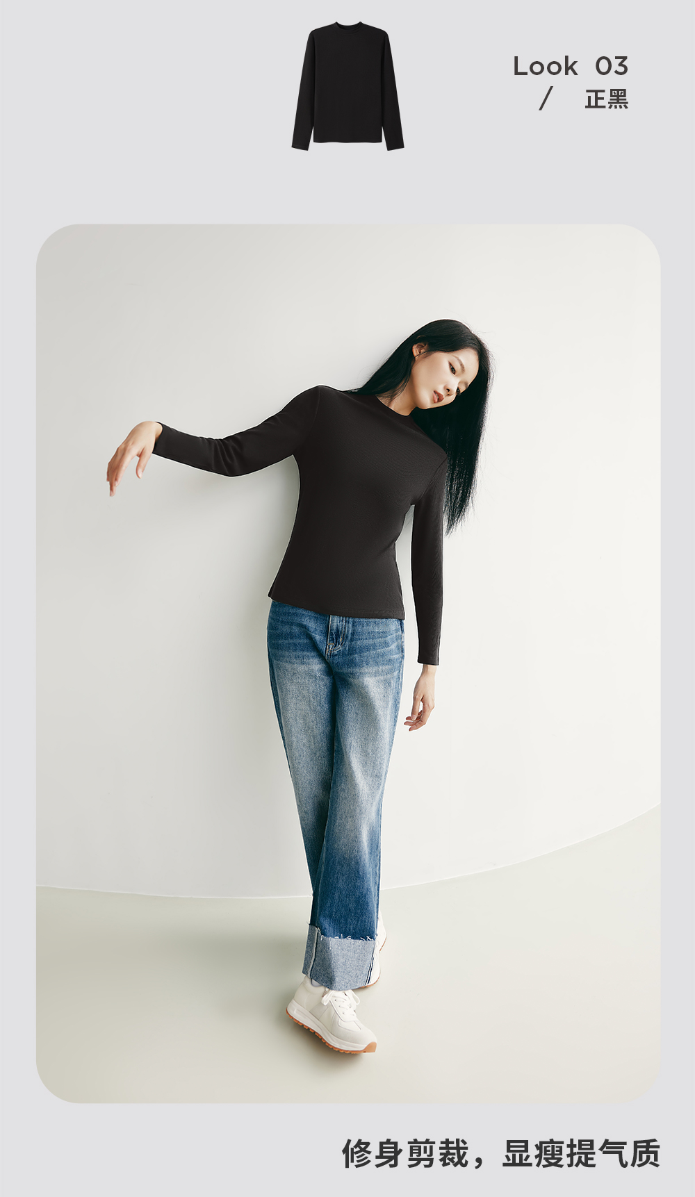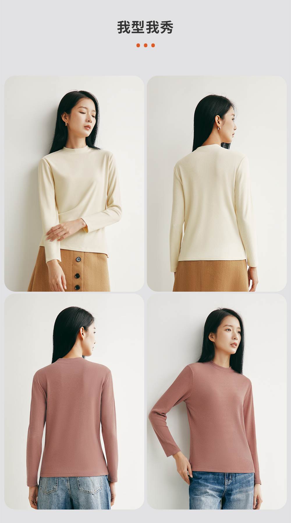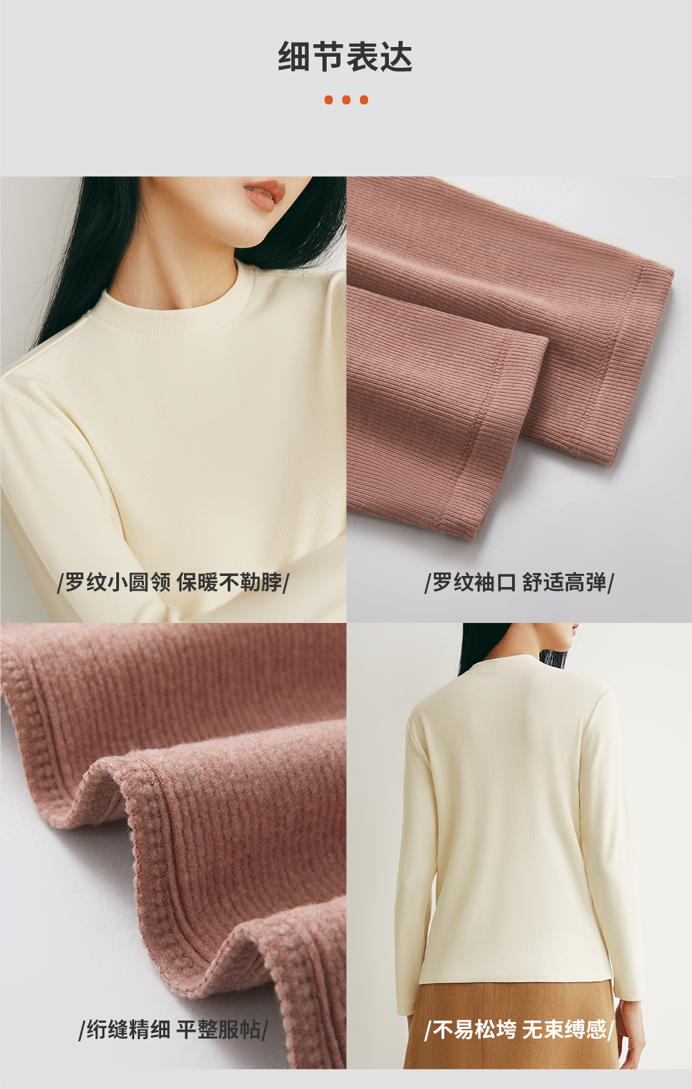 Threegun三枪 【维耐寒】灯芯绒小圆领女士长袖上衣打底衫-24318A011