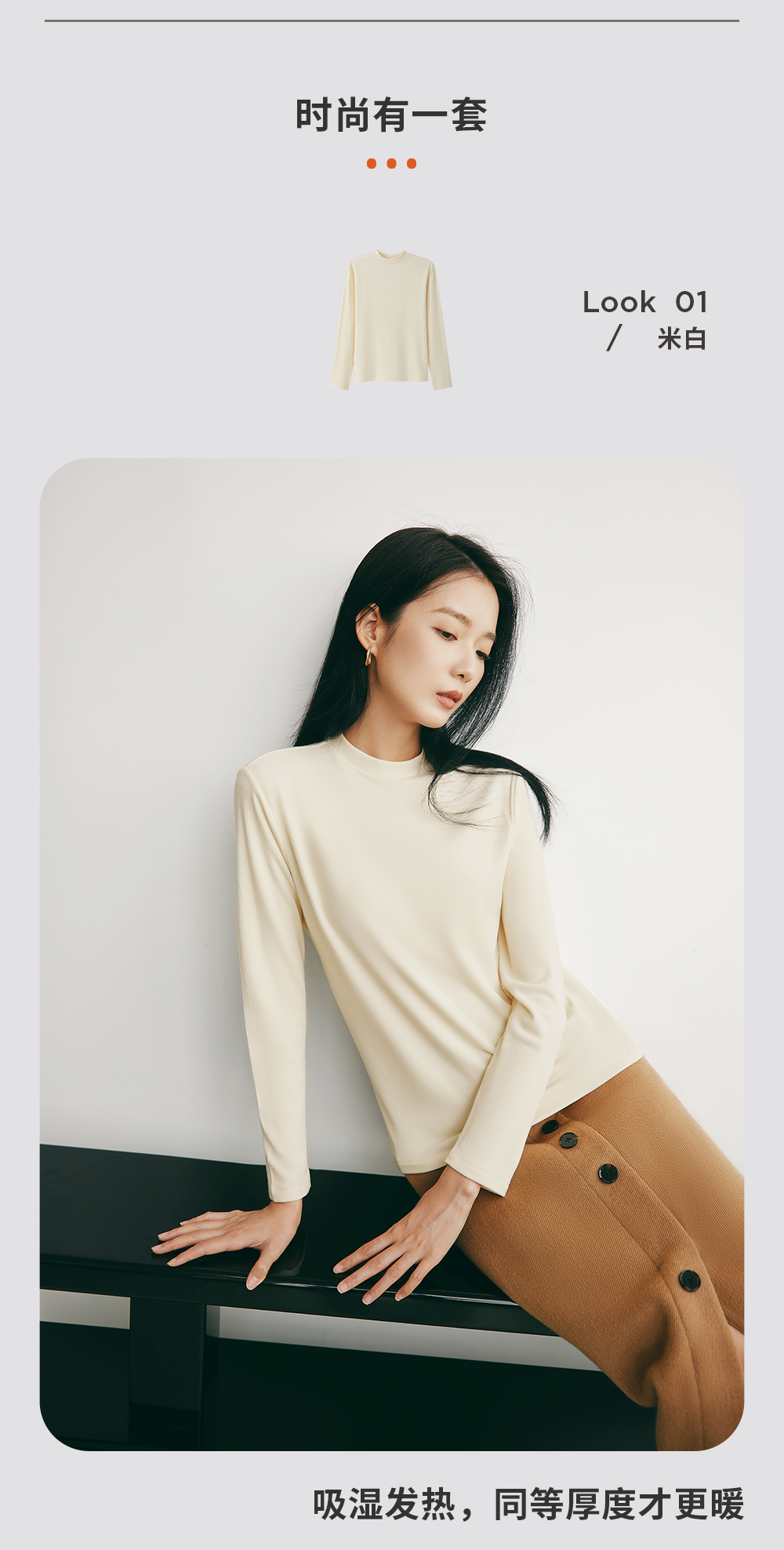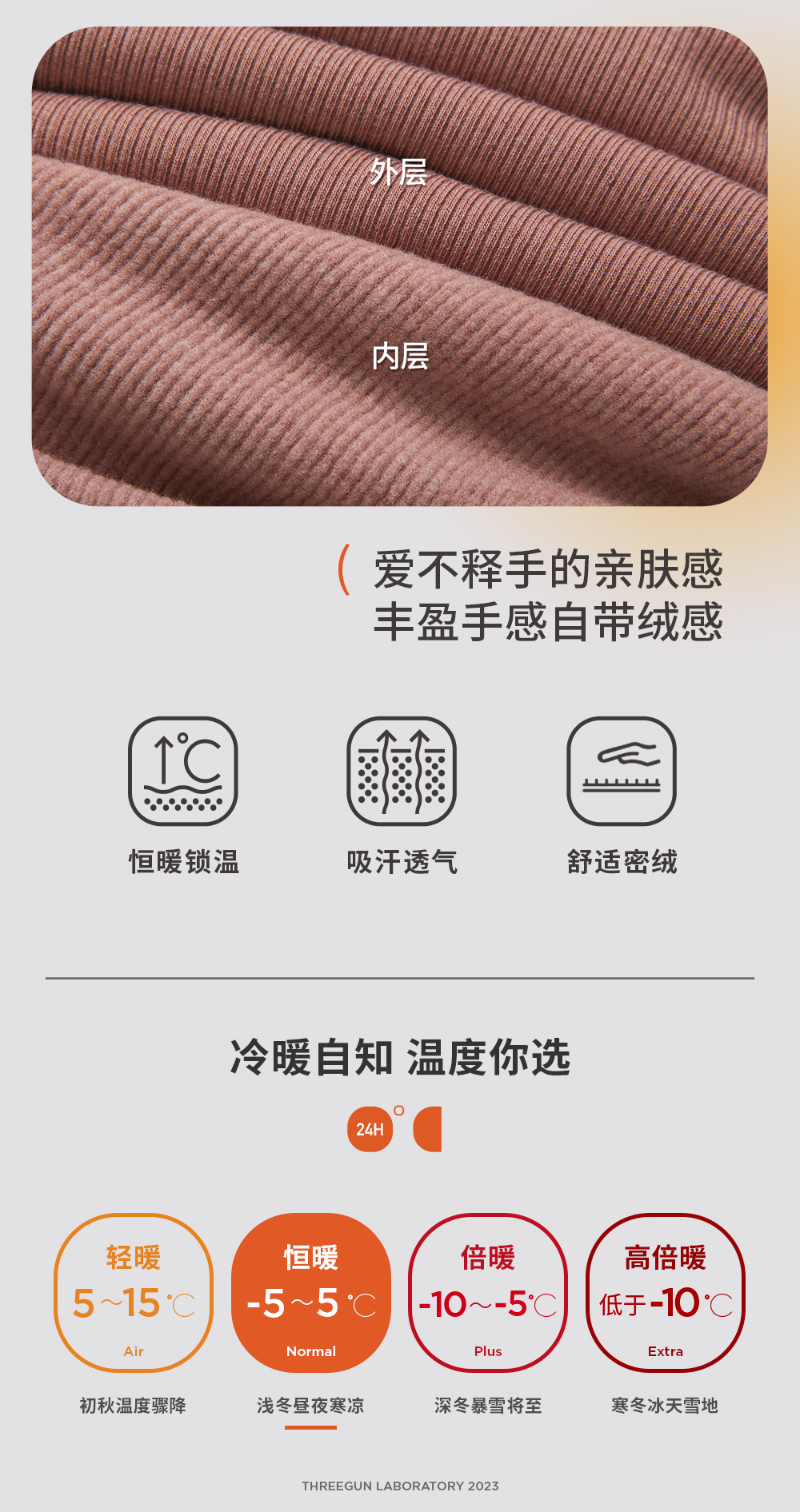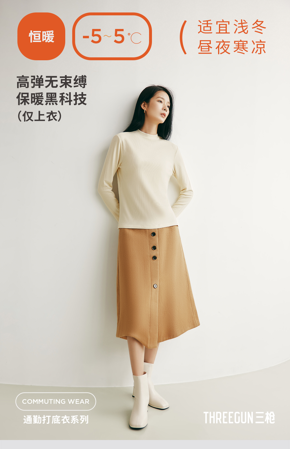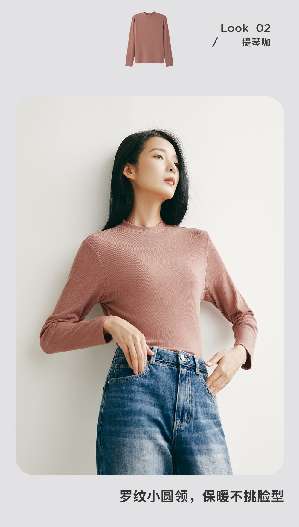 Threegun三枪 【维耐寒】灯芯绒小圆领女士长袖上衣打底衫-24318A011