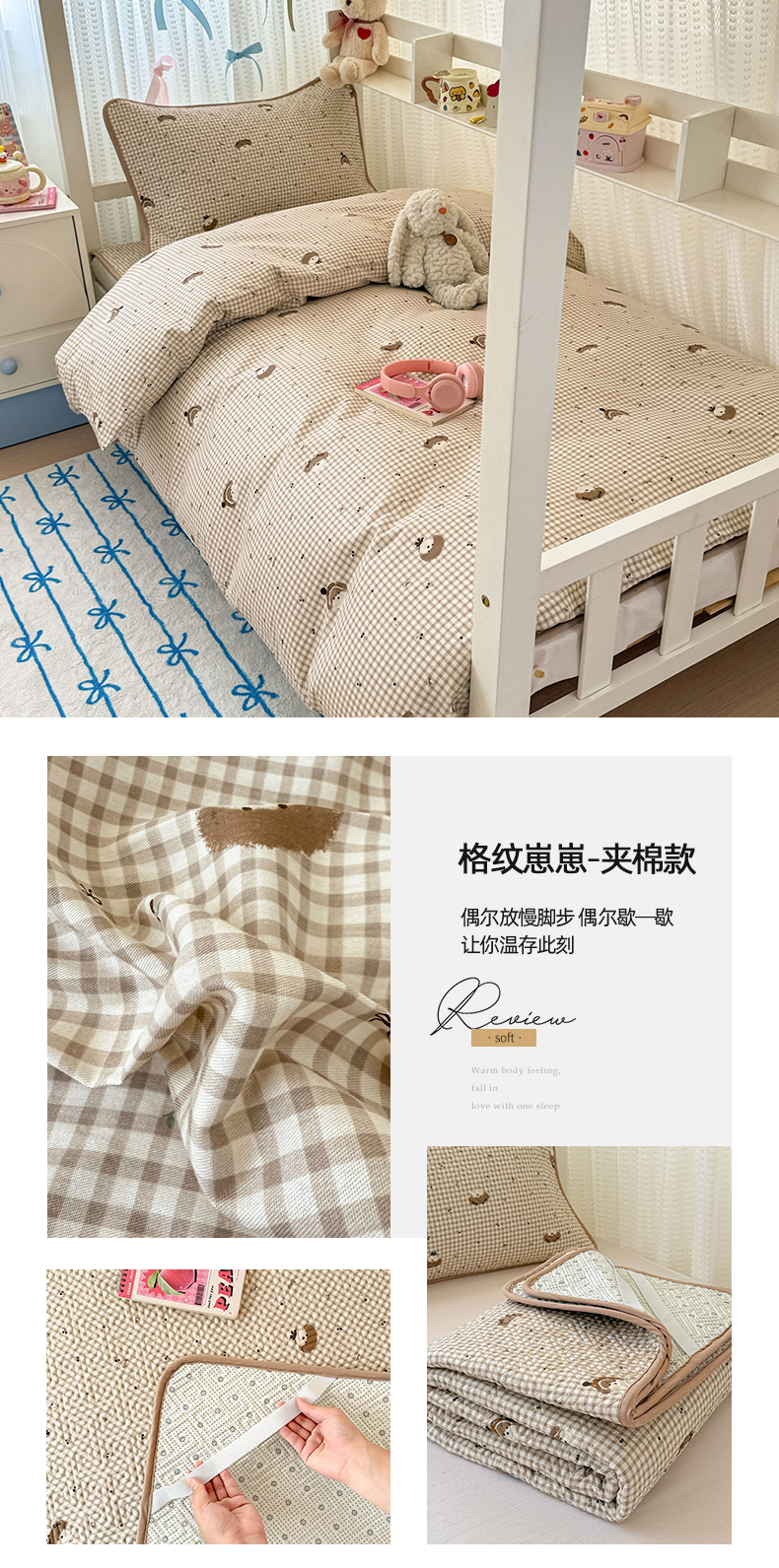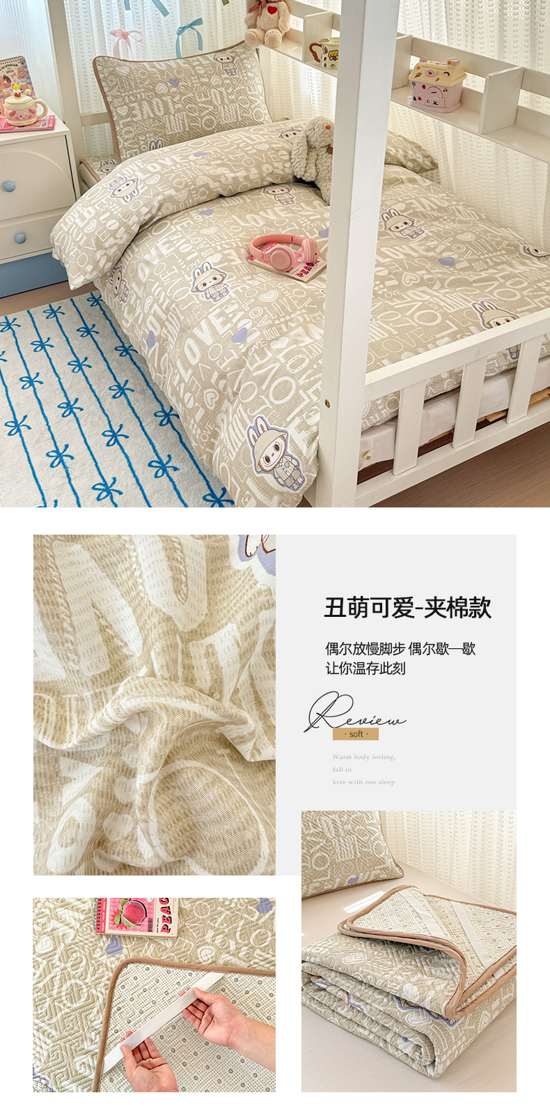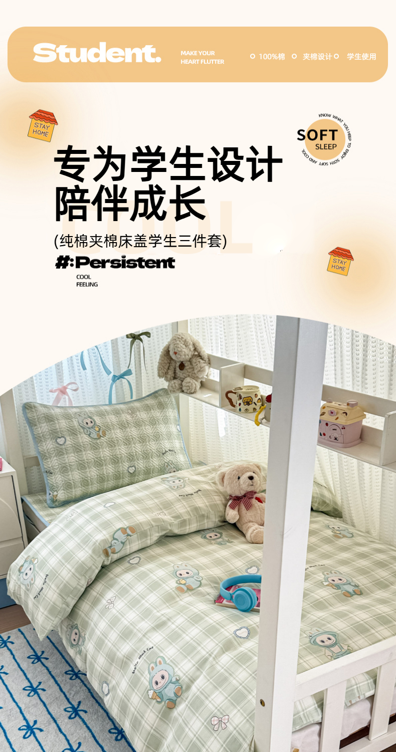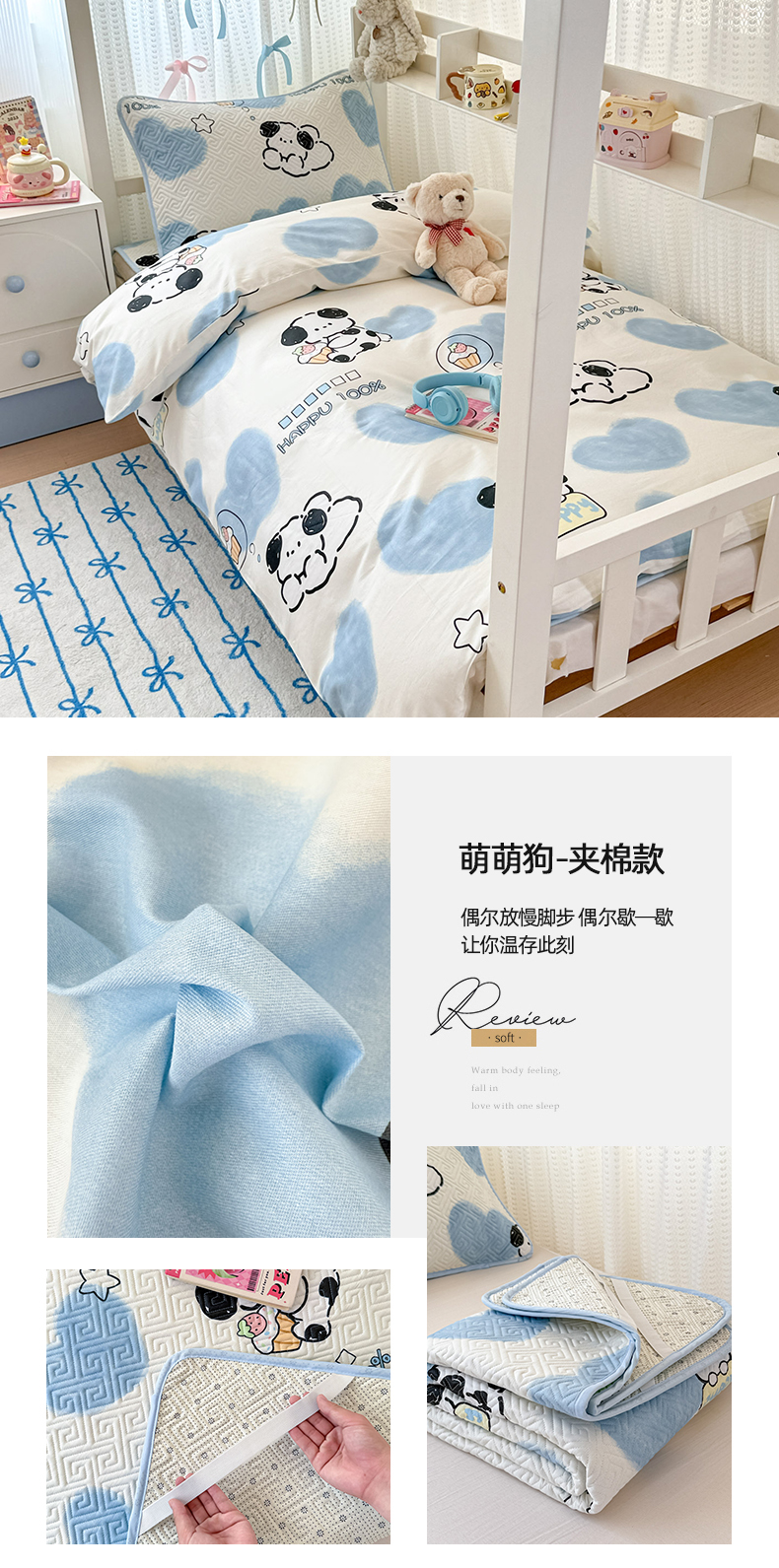 自然醒40支12868全棉夹棉床盖套件三件套大学生宿舍专用卡通被套夹棉床单床盖四季通用JY