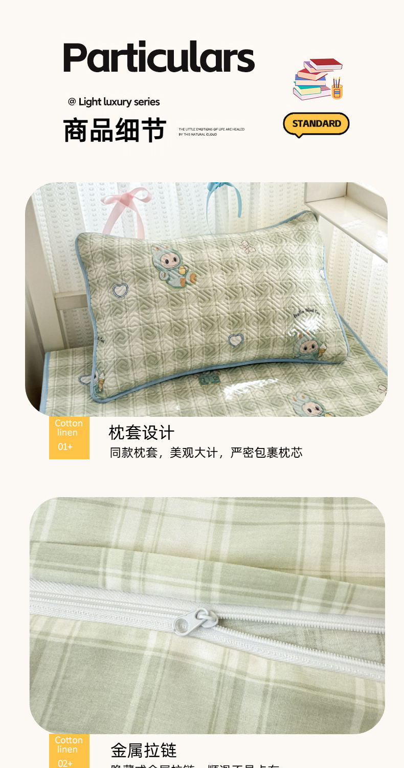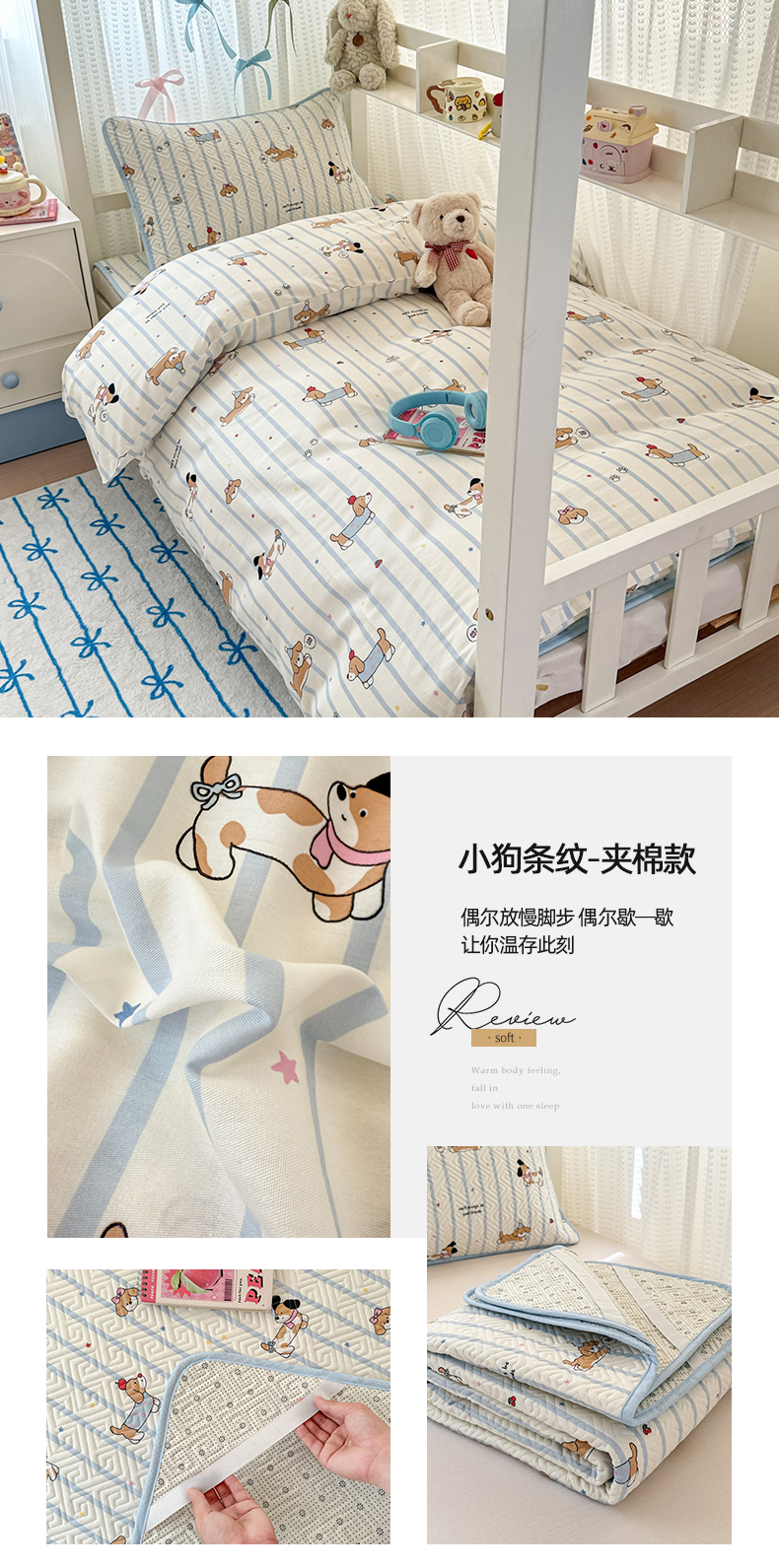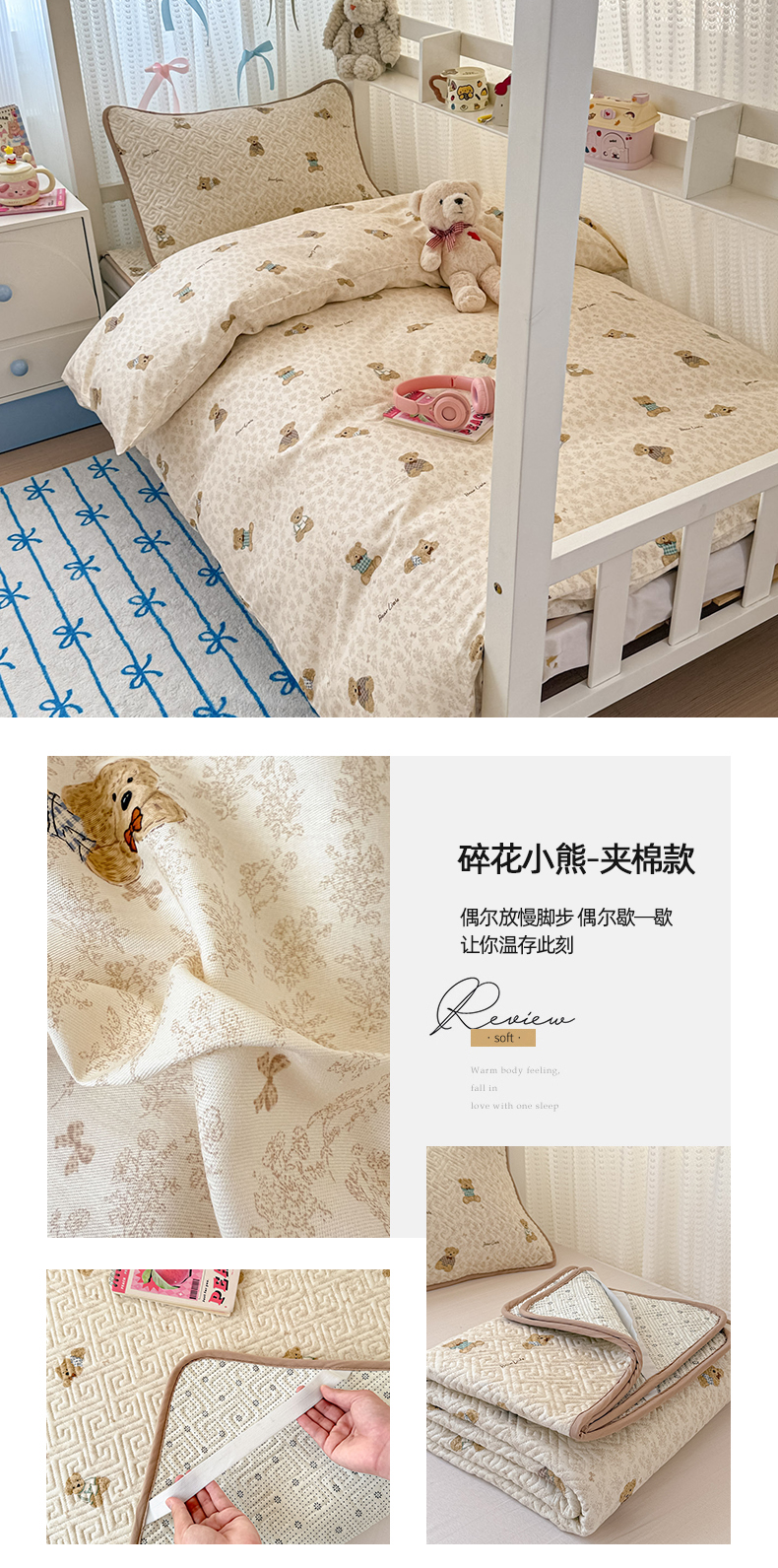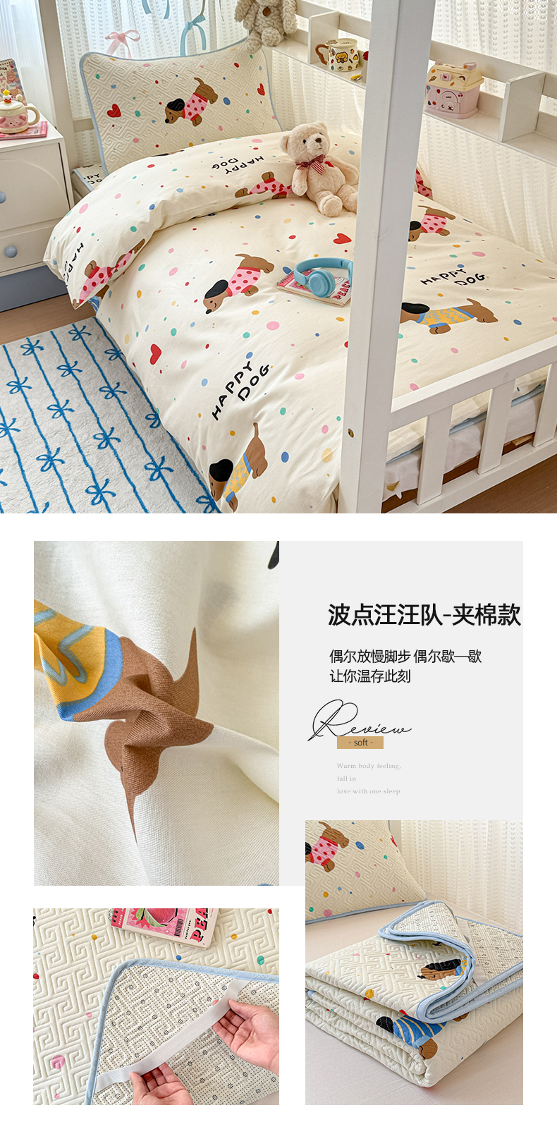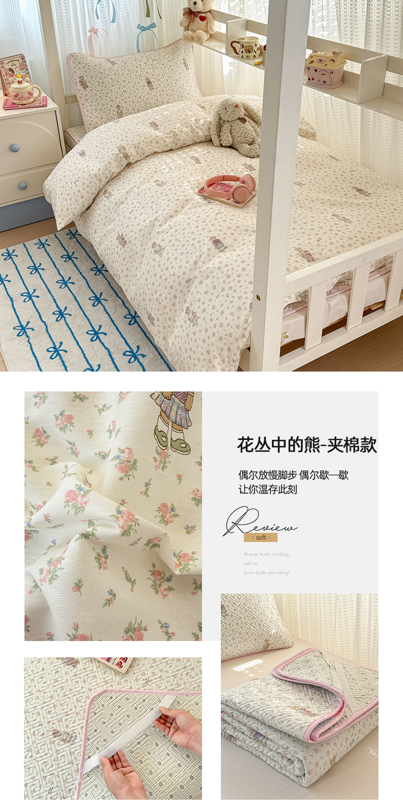 自然醒40支12868全棉夹棉床盖套件三件套大学生宿舍专用卡通被套夹棉床单床盖四季通用JY