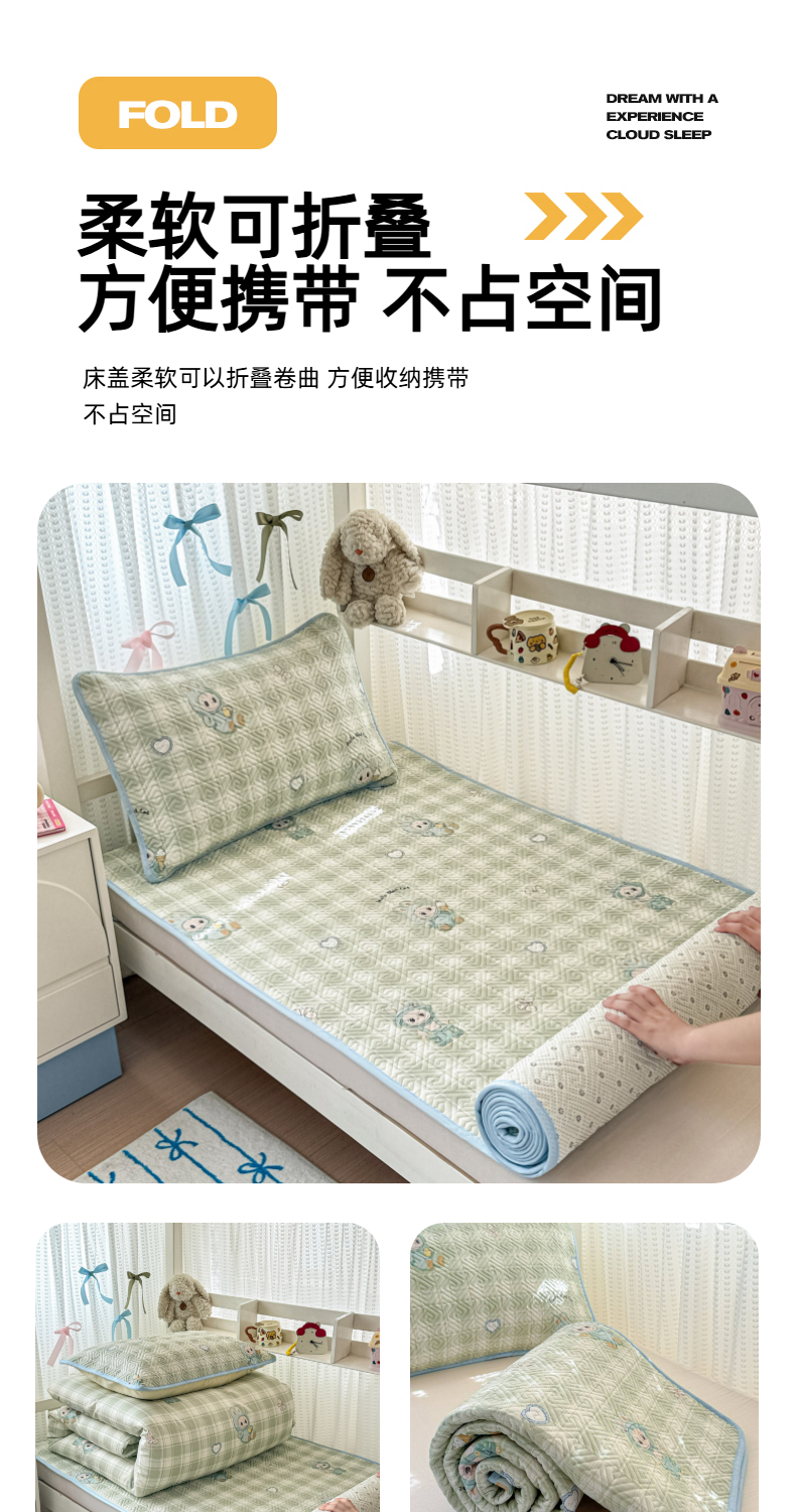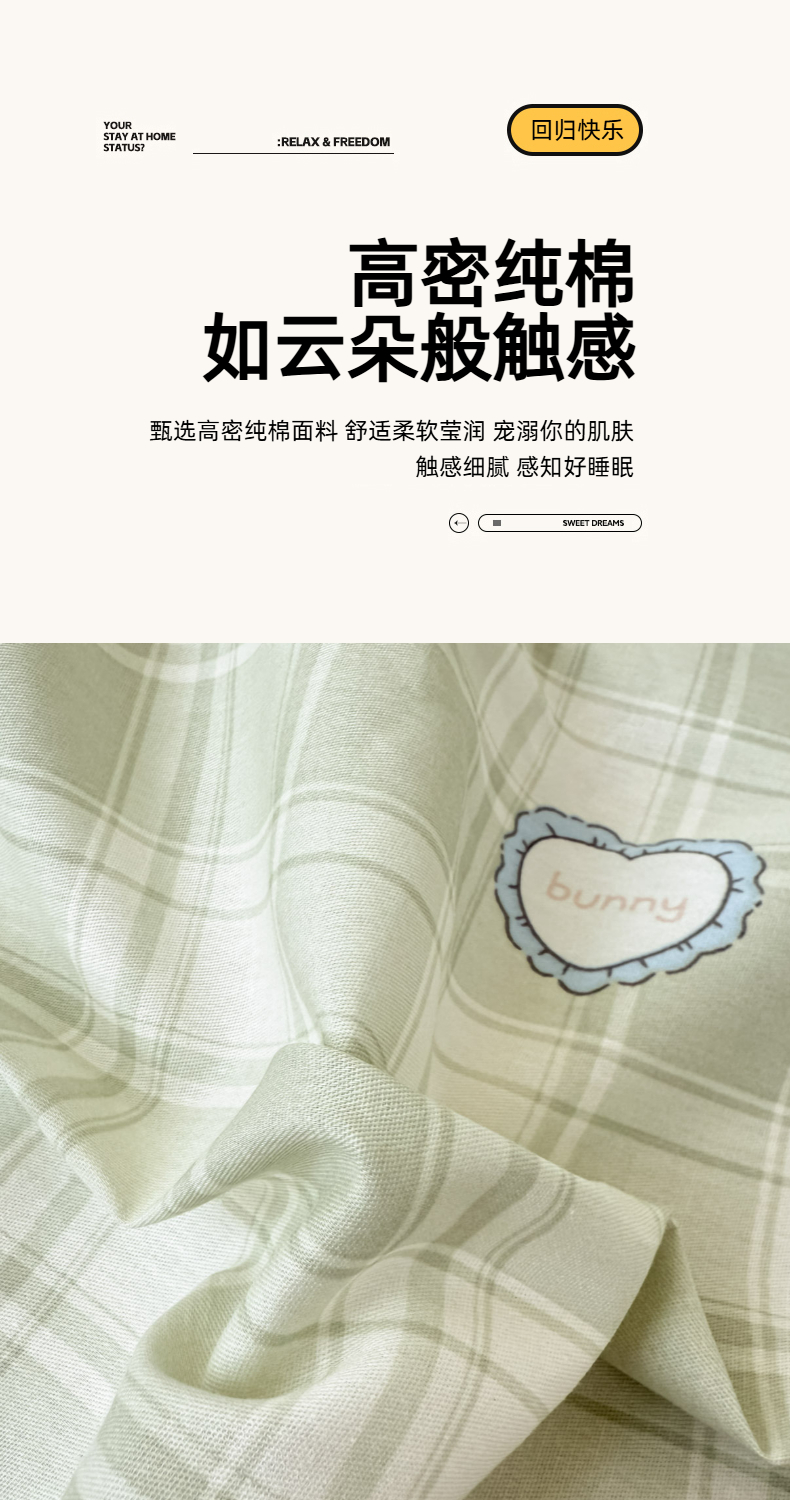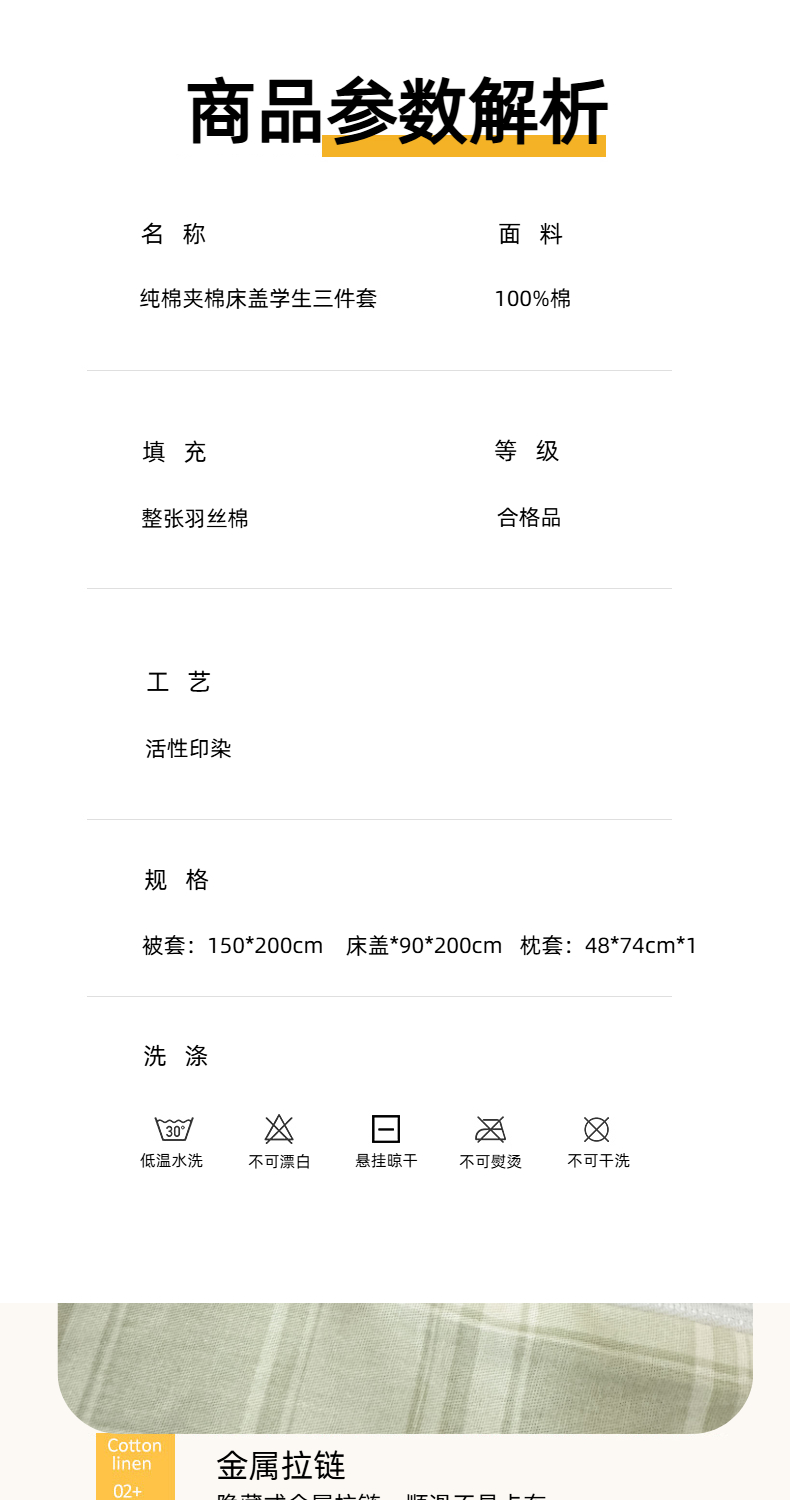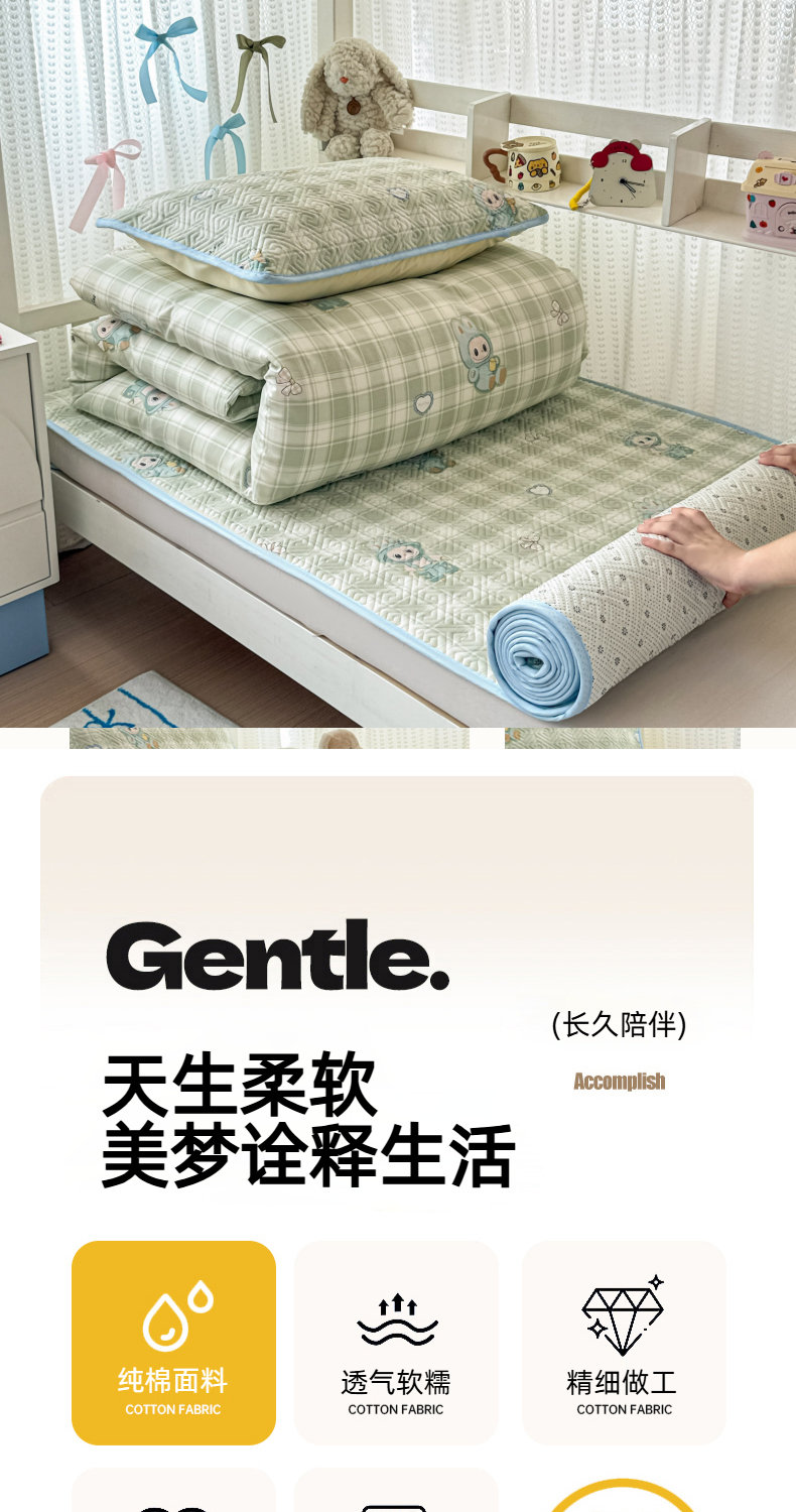 自然醒40支12868全棉夹棉床盖套件三件套大学生宿舍专用卡通被套夹棉床单床盖四季通用JY