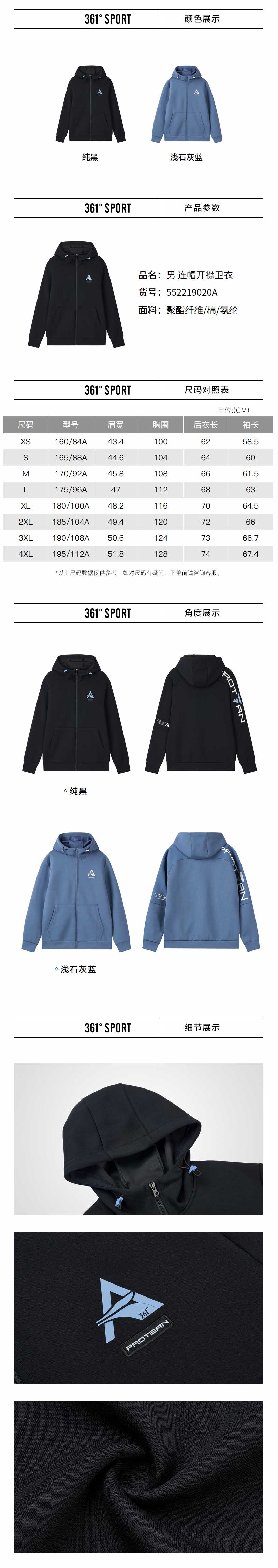 361度运动卫衣男士2022春学生连帽开襟卫衣休闲上衣外套552219020a