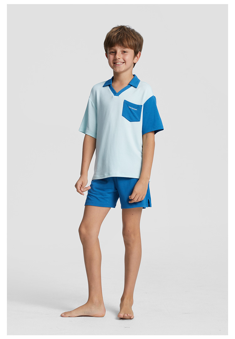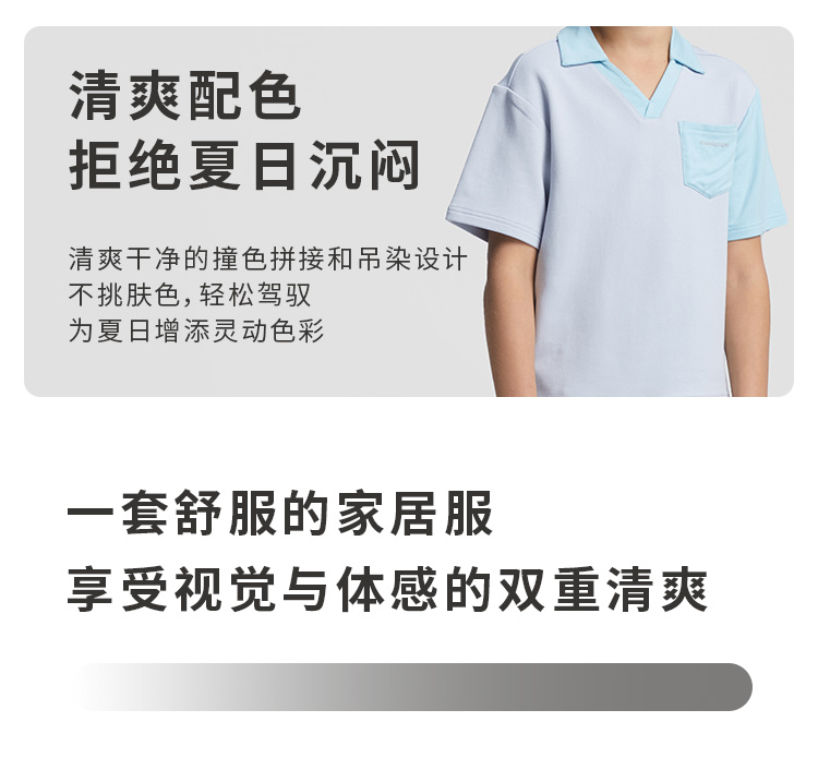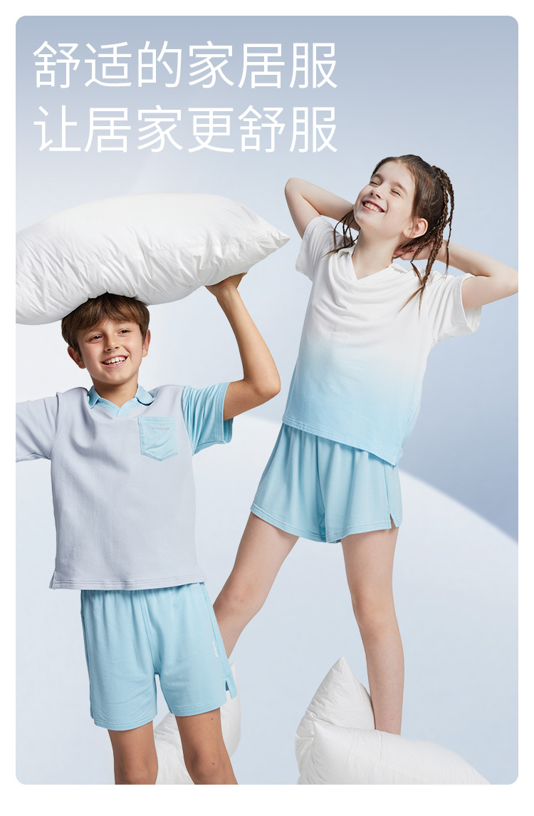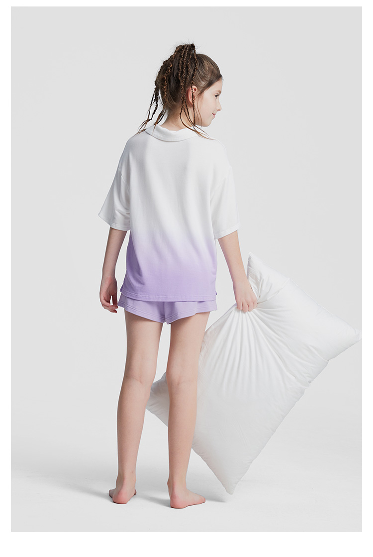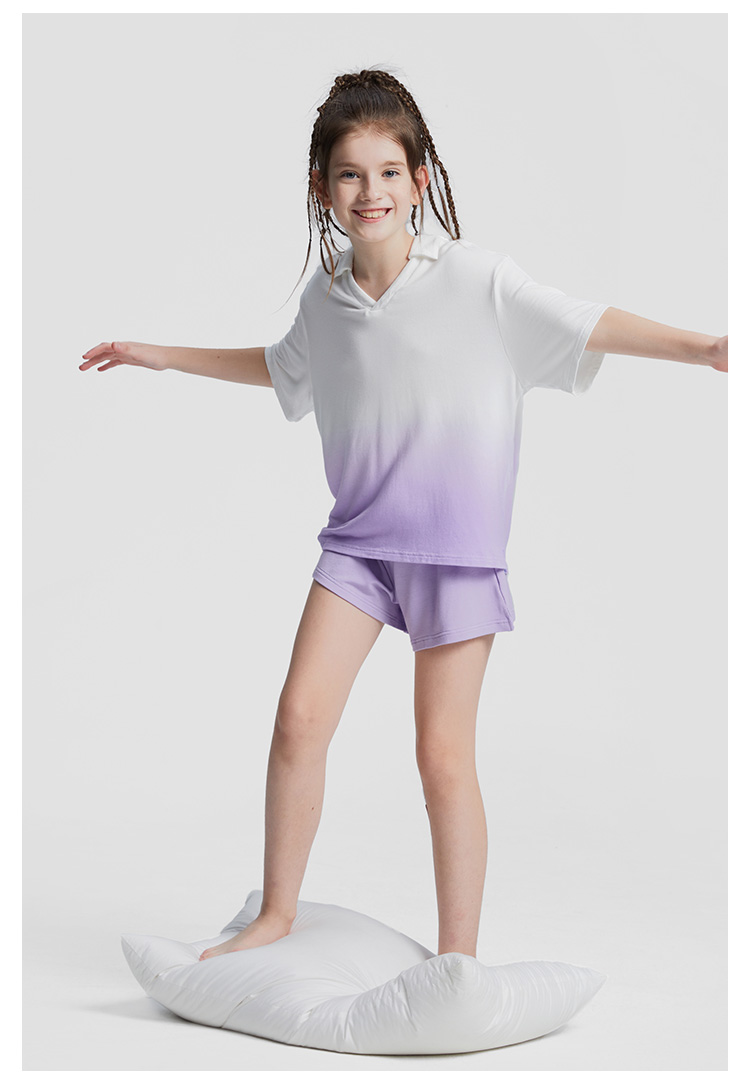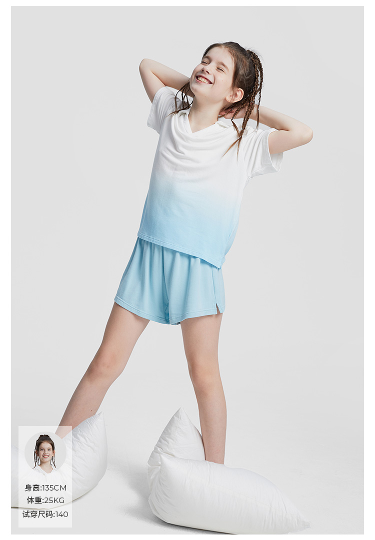 【专属】moodytiger儿童家居服夏款男女童渐变宽松v领短袖短裤居家服套装M32120101