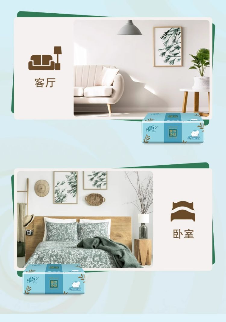 【自营】 清风 原木纯品四叶草压花 抽纸 纸巾 餐巾纸 100抽24包/箱
