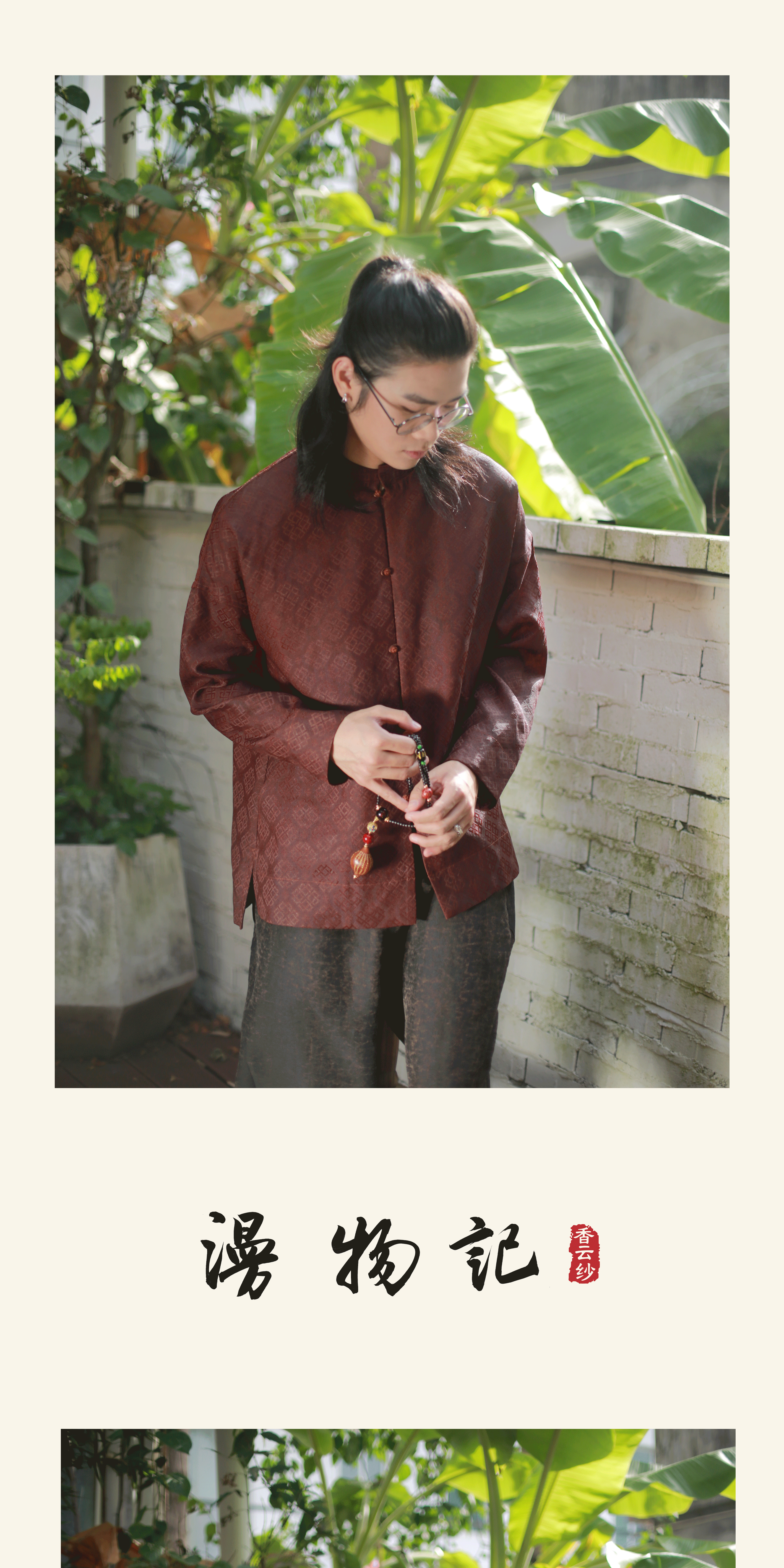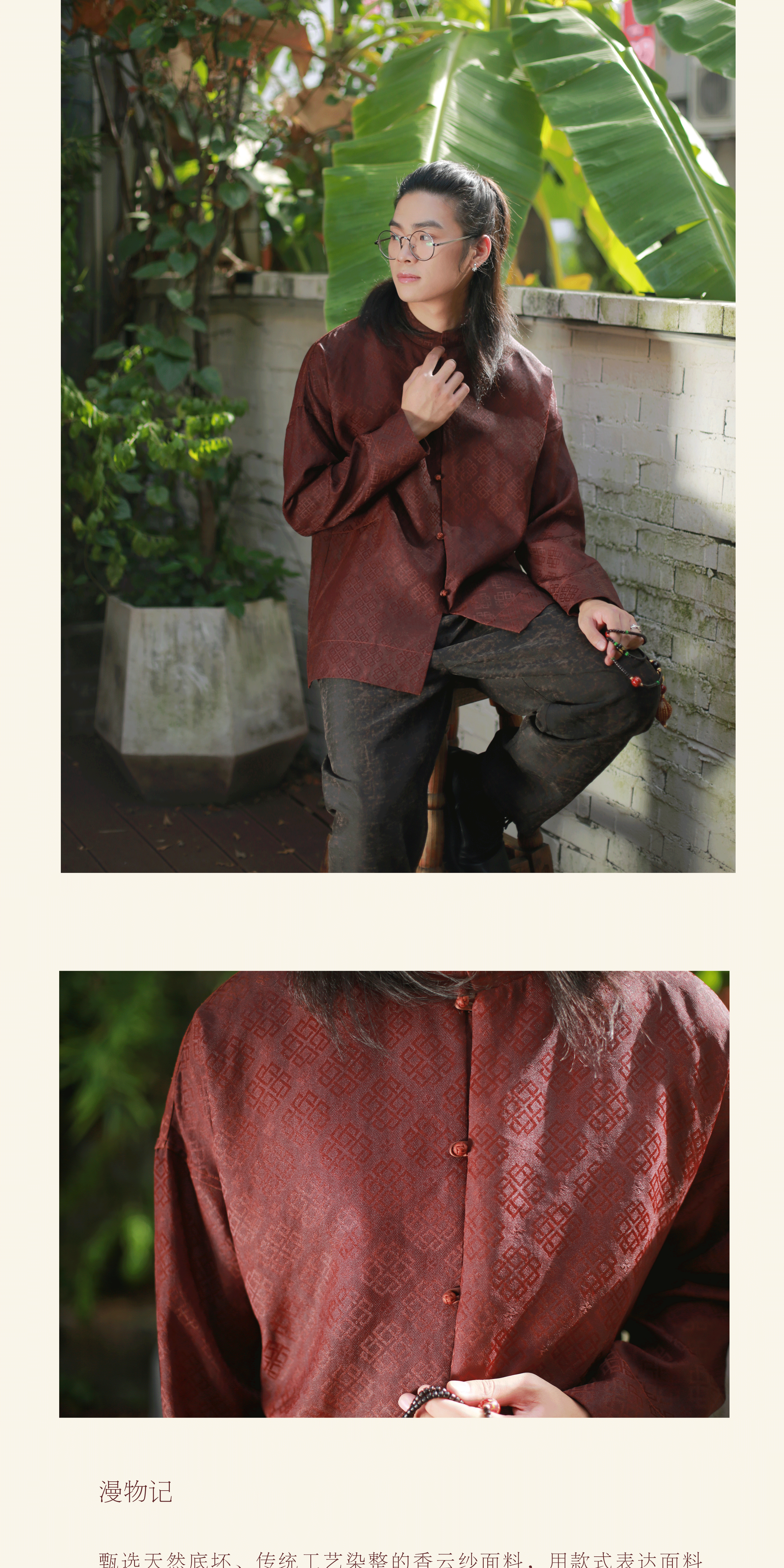 漫物记红云纱五粒扣落肩衫M254