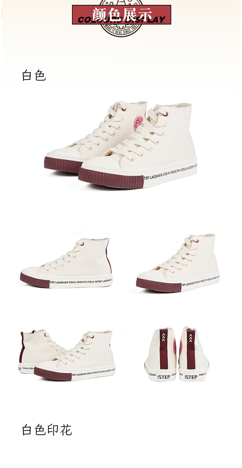 istep帆布鞋女崂山可乐联名款鞋子小白鞋高帮情侣款板鞋休闲