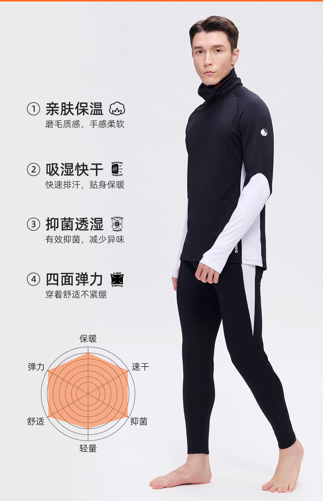 Hotchillys热椒8K磨毛滑雪高领功能保暖内衣裤男士户外运动速干HCA9411/9415