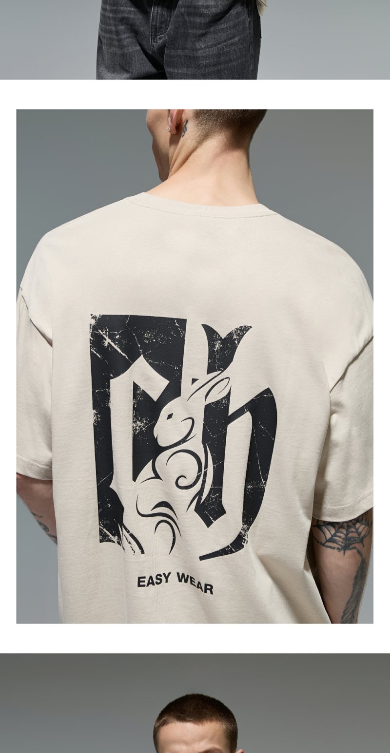 CHINISM赤尘 背后生肖兔子印花短袖T恤男潮牌美式高街情侣半袖