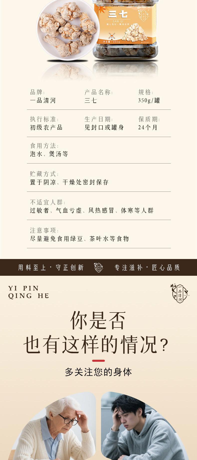 【自营】一品清河 三七350g多巴胺罐装田七文山三七三七粉 YPQHSQ350G