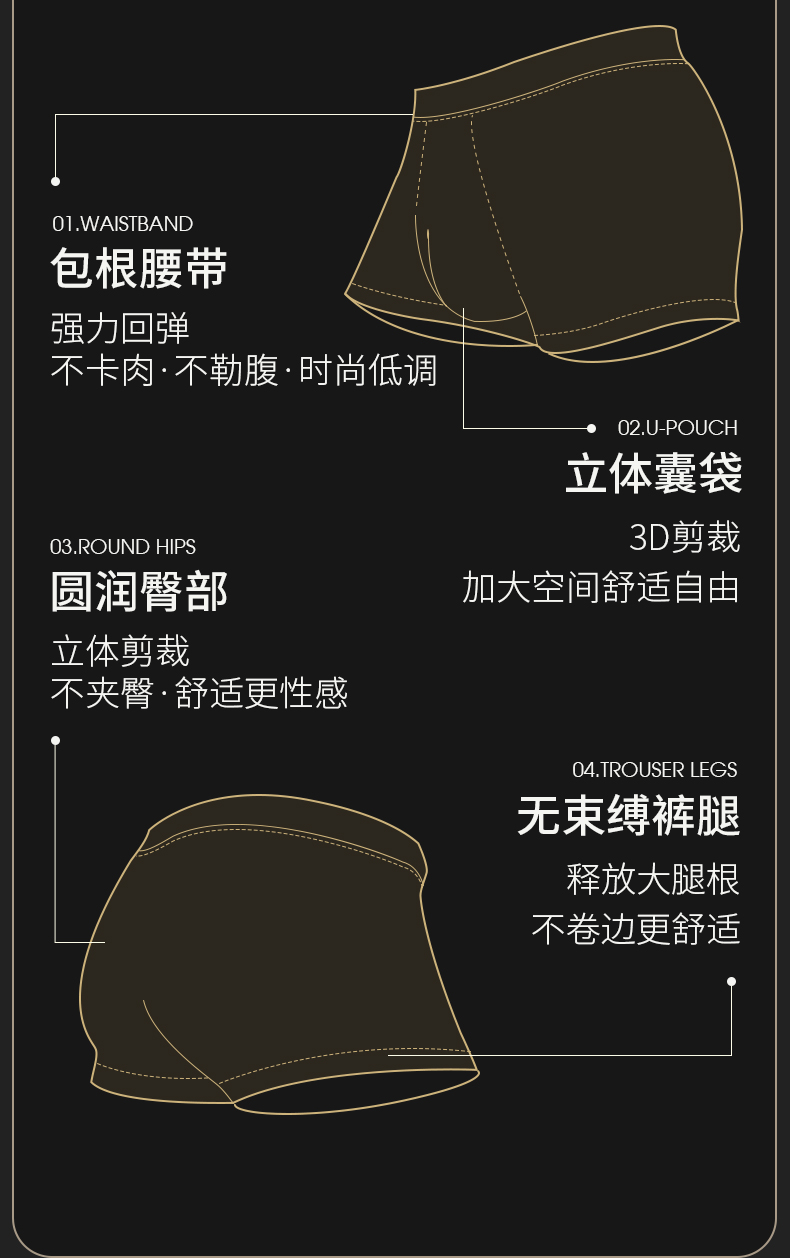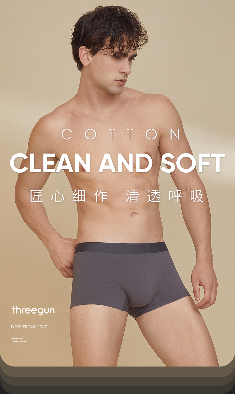 Threegun三枪 【洁柔棉】男士无痕平角短裤四角内裤(1条装)-50683B031