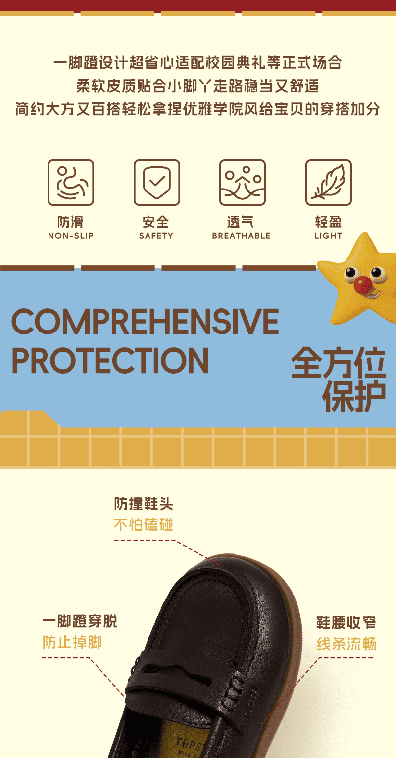 【25秋上新】TOPSTAR幼儿园室内鞋儿童小皮鞋男童小黑鞋女童复古软底鞋6057