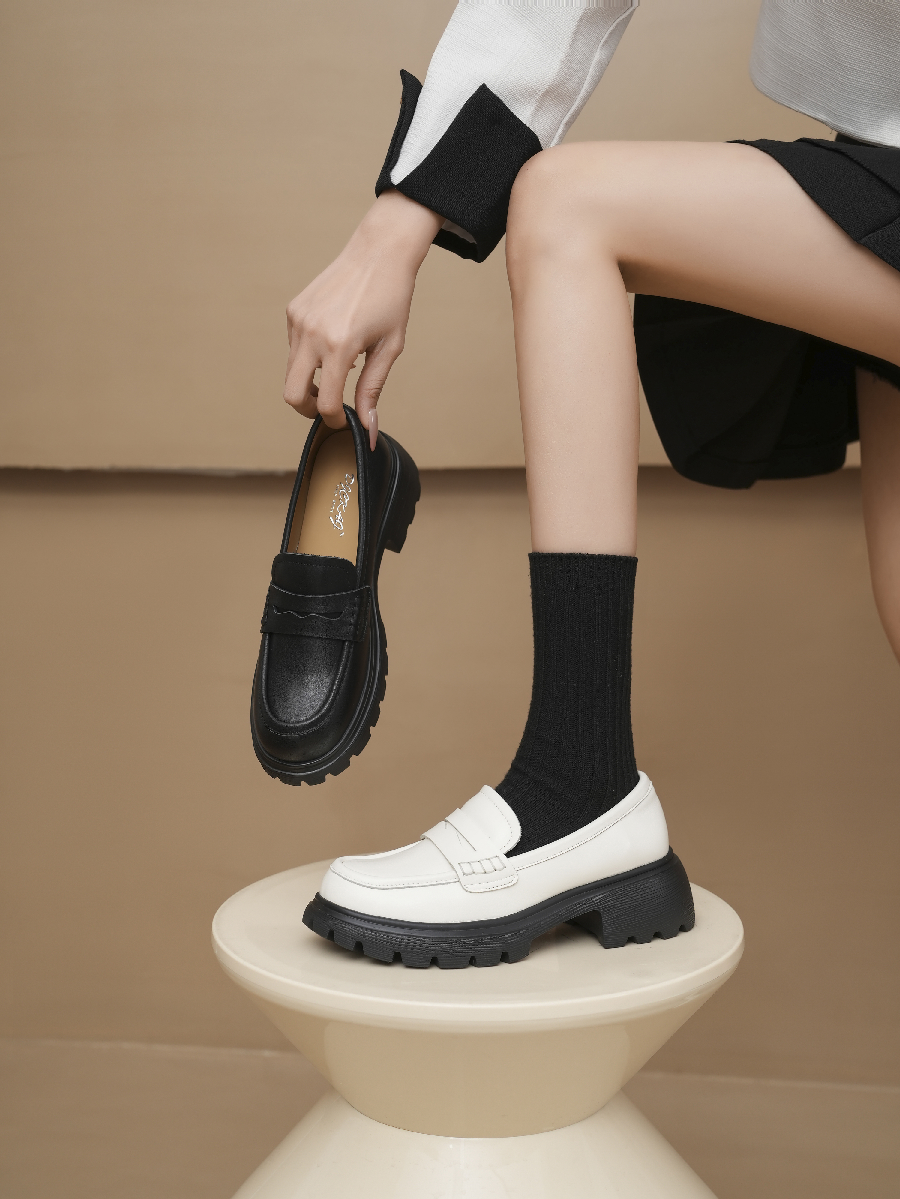 豪麟名鞋奥莱迪嘉女鞋乐福鞋牛皮革DJXXO61WS203白色 原价1960元