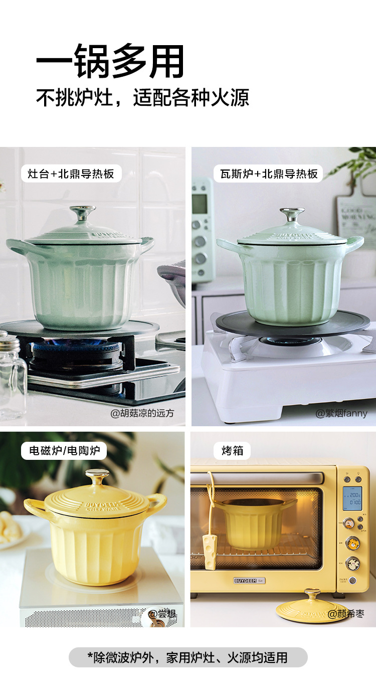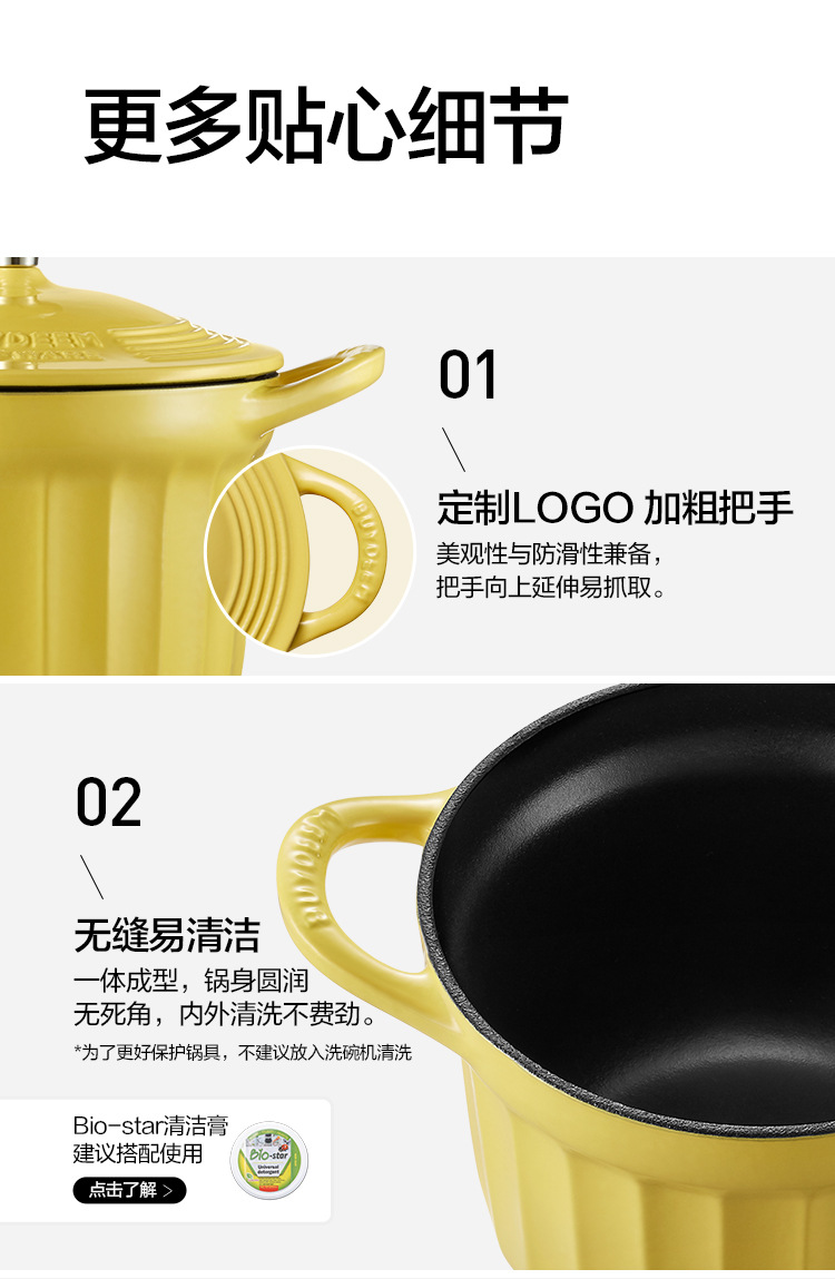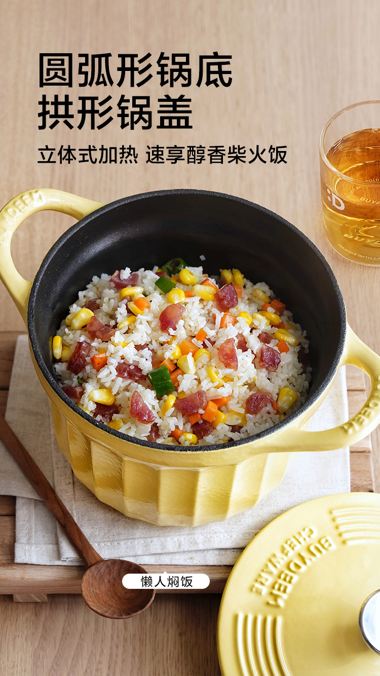 【专柜-北鼎】 珐琅铸铁锅家用焖锅多功能炖锅迷你小圆锅
