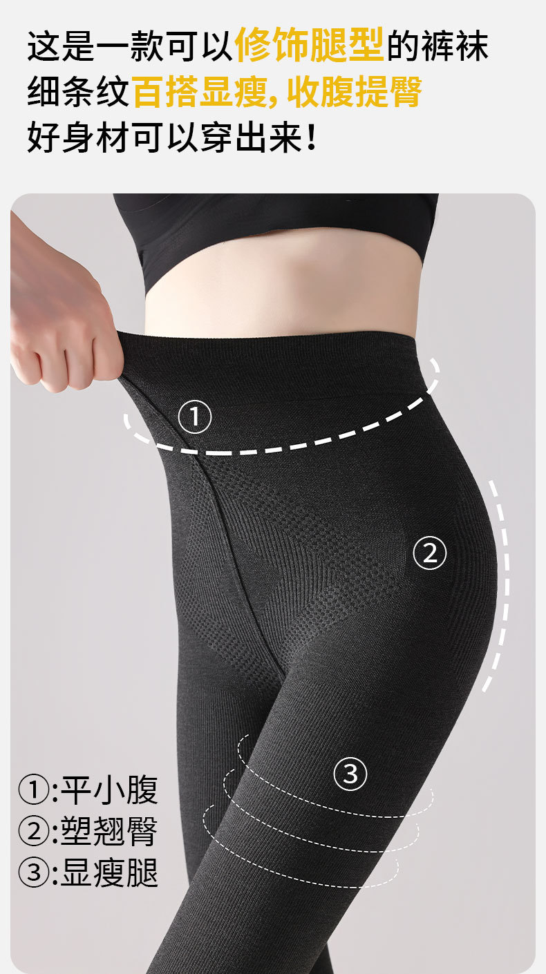 竖条纹灰色打底裤女秋冬季加厚加绒保暖棉裤提臀收腹不掉裆连裤袜