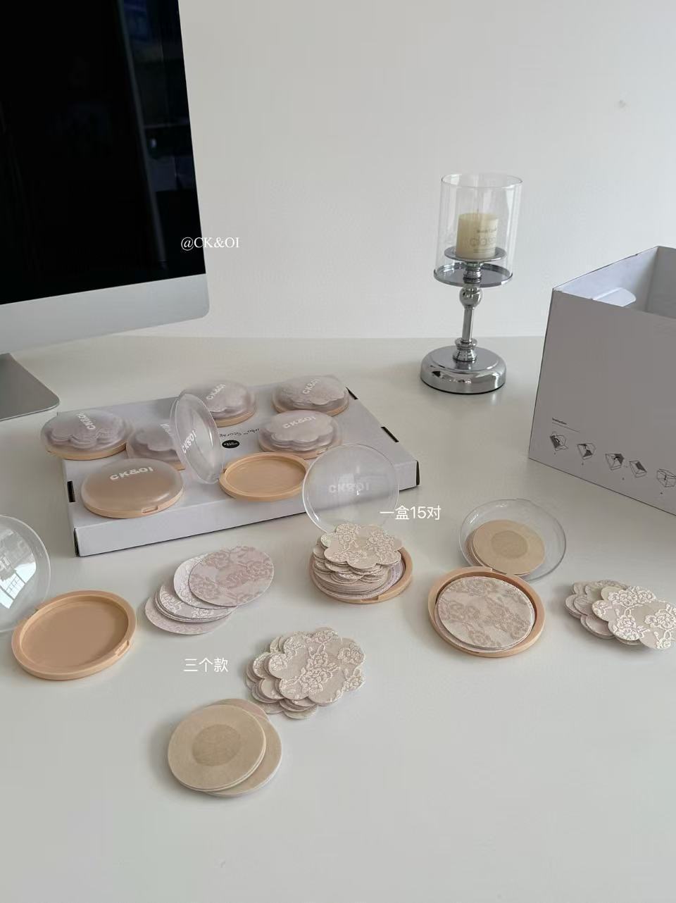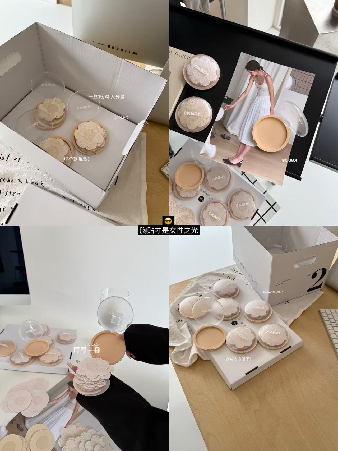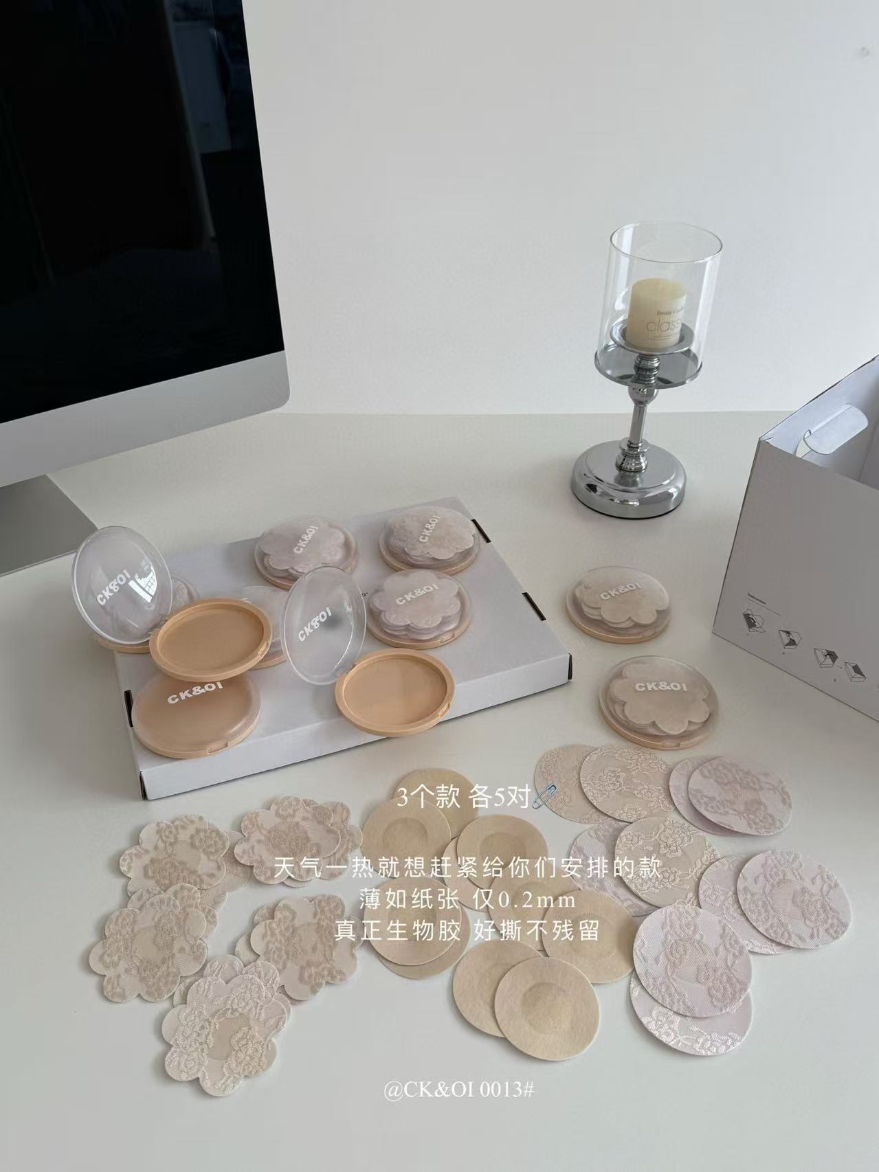 CK&OI出口原单0013#CK&OI蕾丝胸贴,不透不凸点,3款混合轻松搭配,每盒15对超大分量,生物胶贴心设计,撕下无残留✨让你自在清爽一整天!