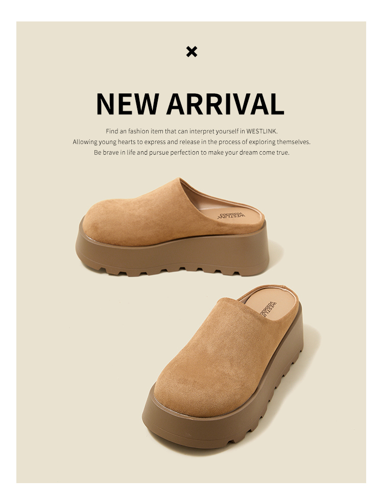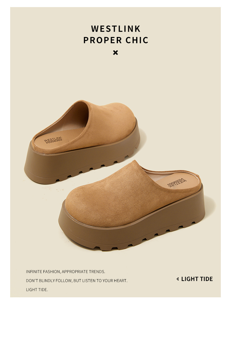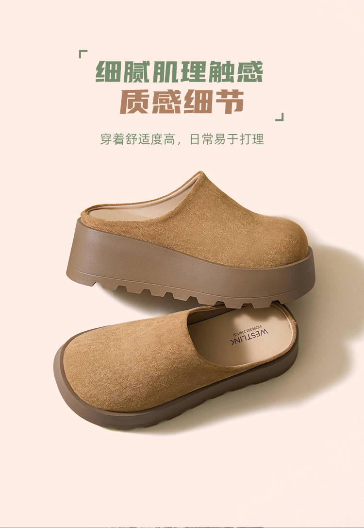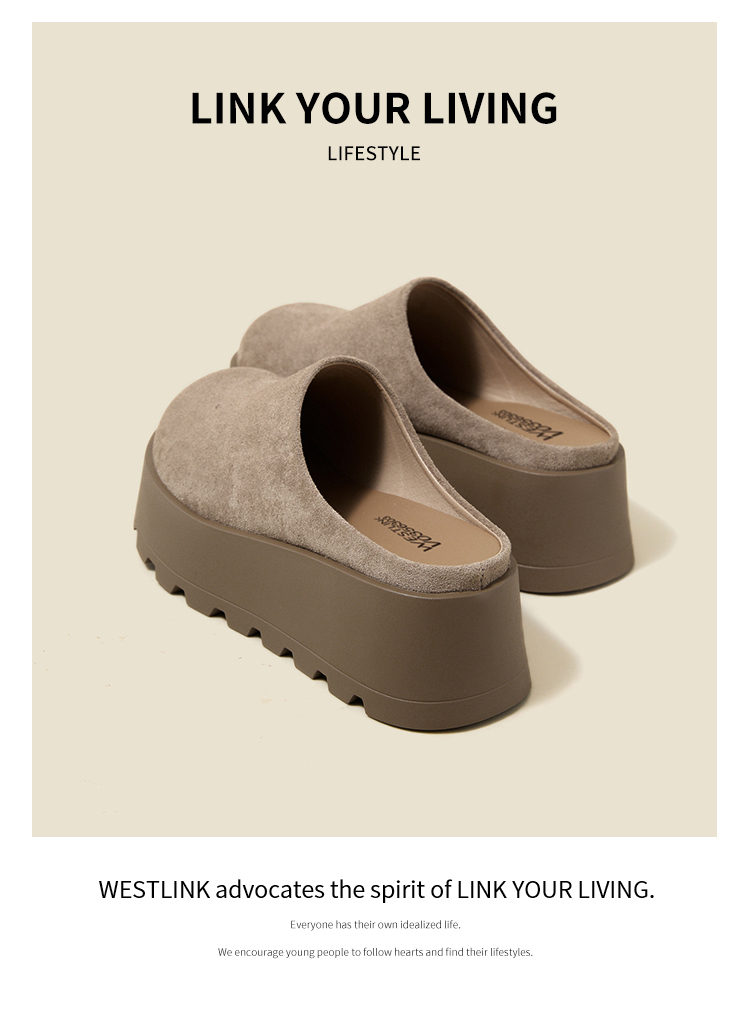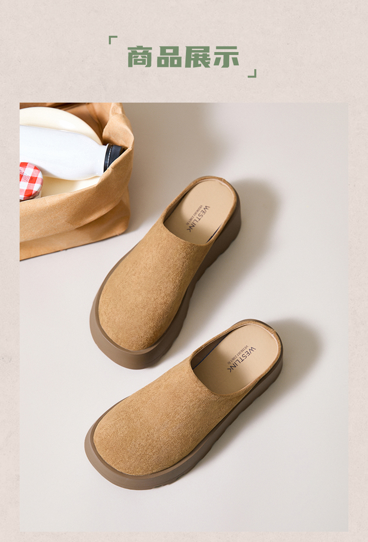 西遇厚底勃肯鞋女新款一脚蹬小个子增高松糕鞋包头半拖鞋V0356303