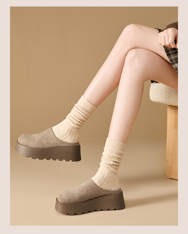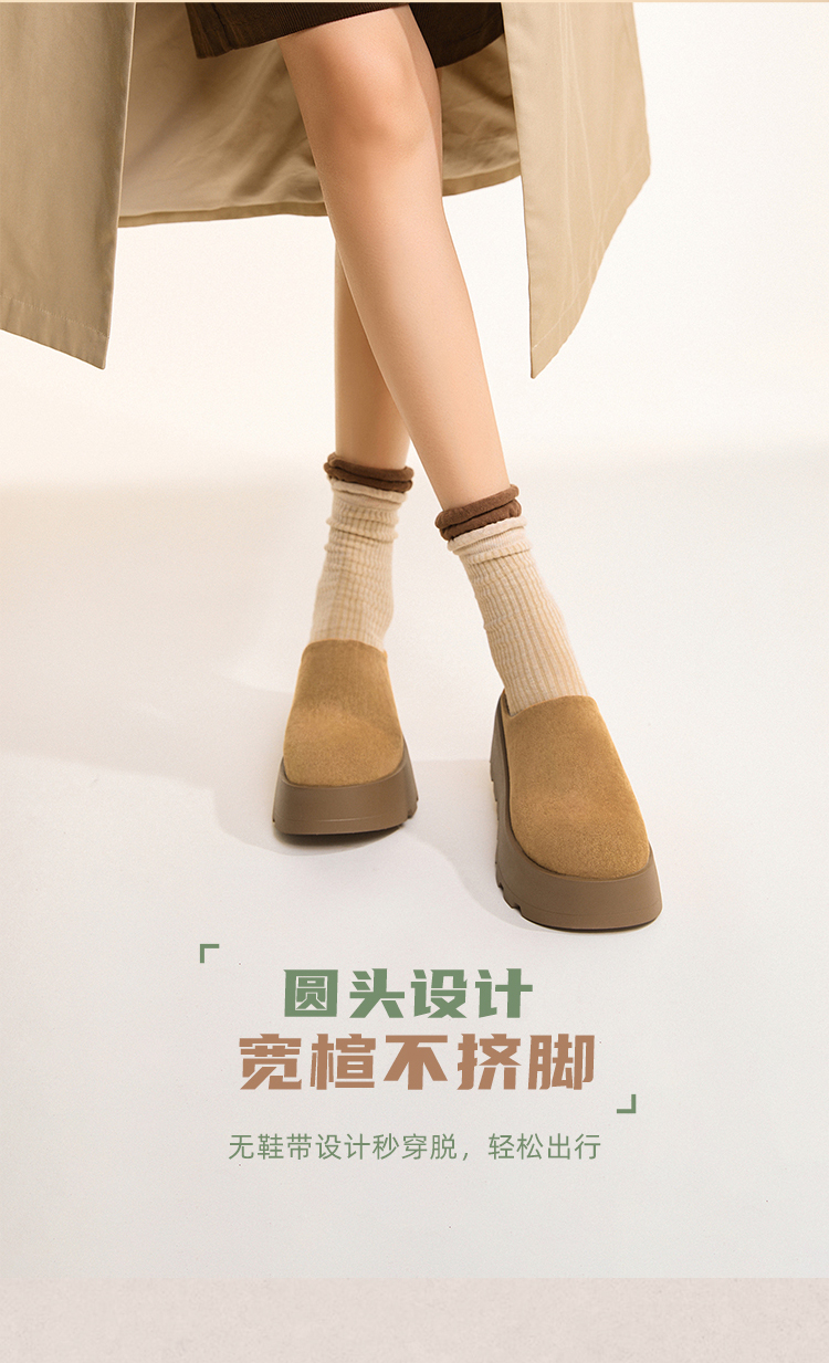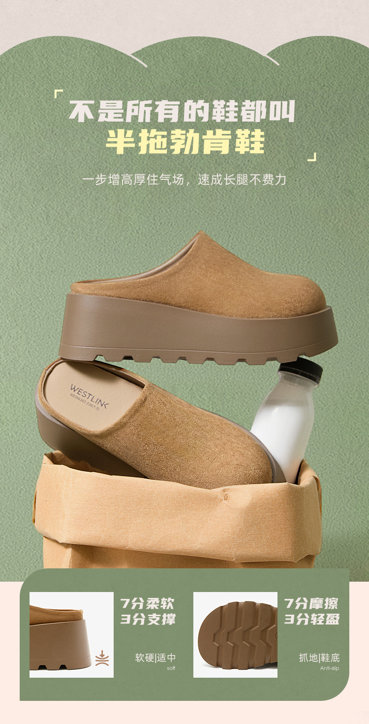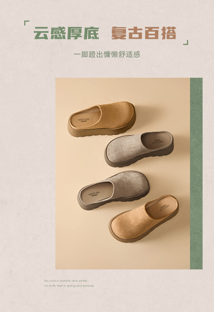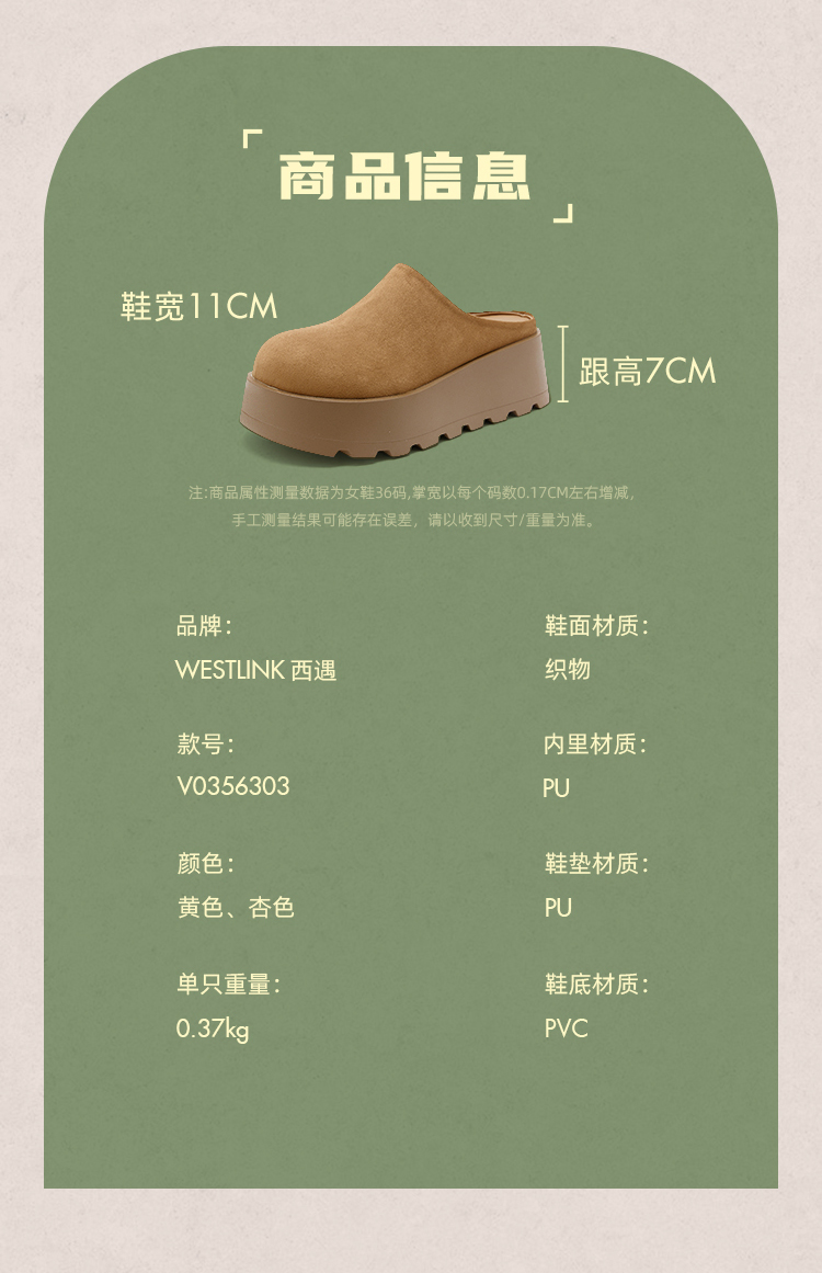 西遇厚底勃肯鞋女新款一脚蹬小个子增高松糕鞋包头半拖鞋V0356303