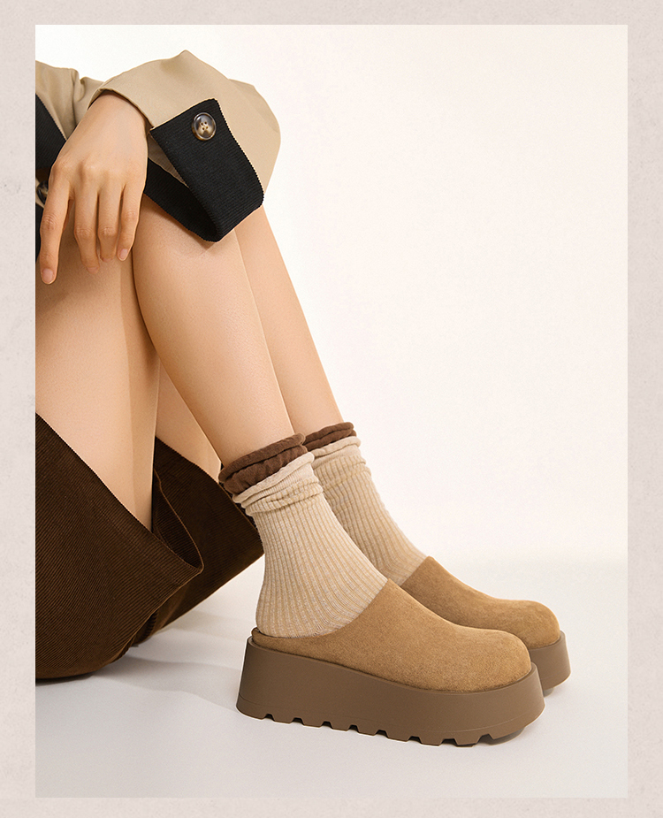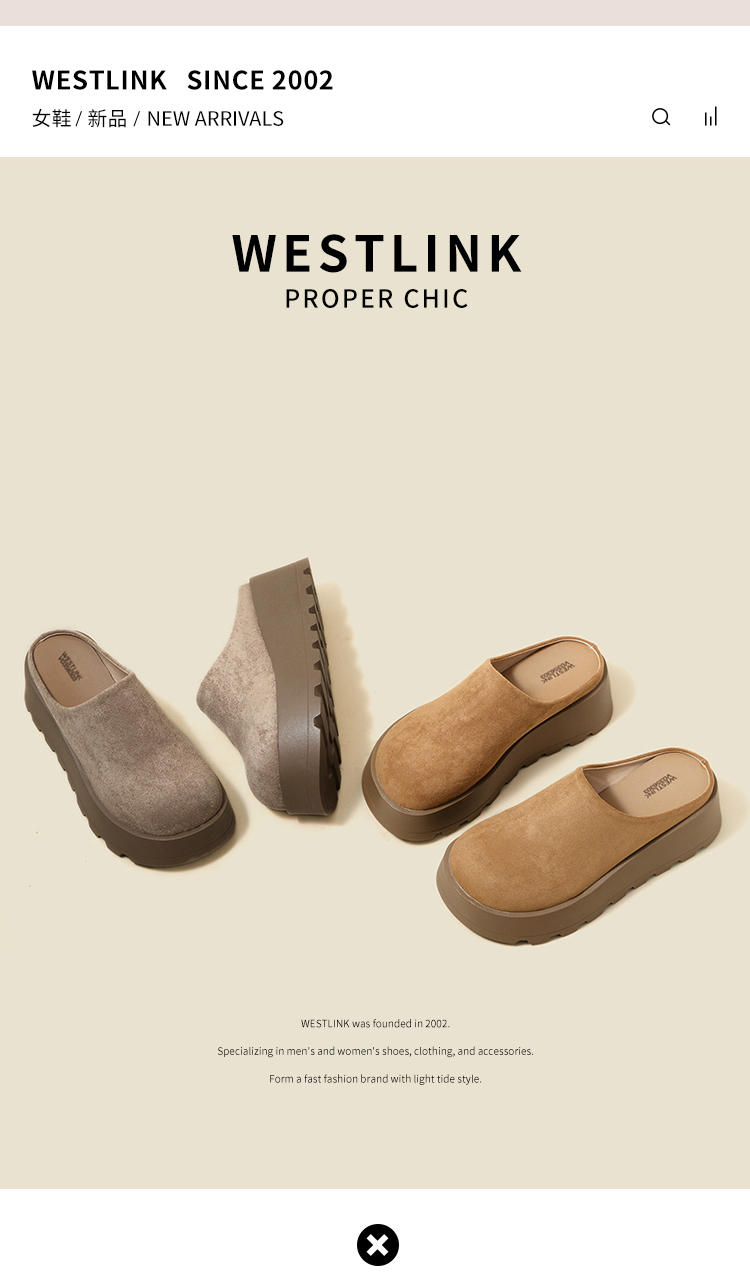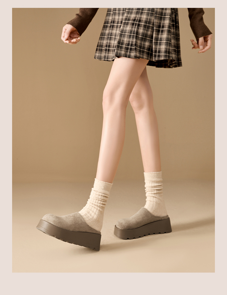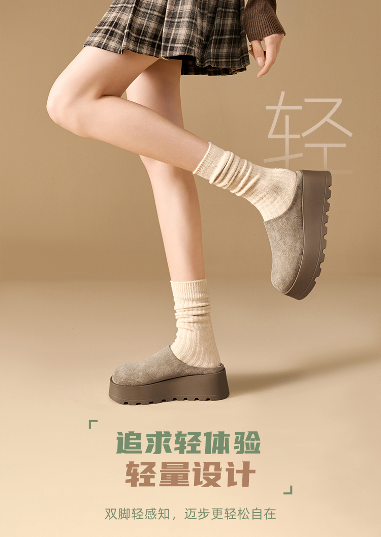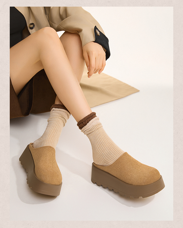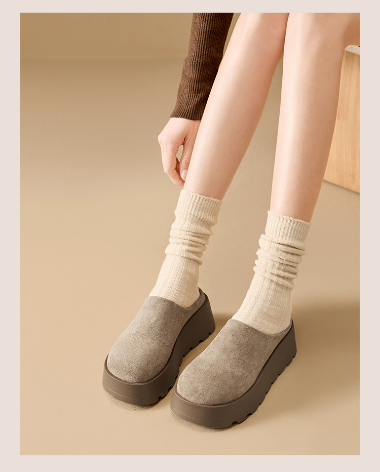 西遇厚底勃肯鞋女新款一脚蹬小个子增高松糕鞋包头半拖鞋V0356303