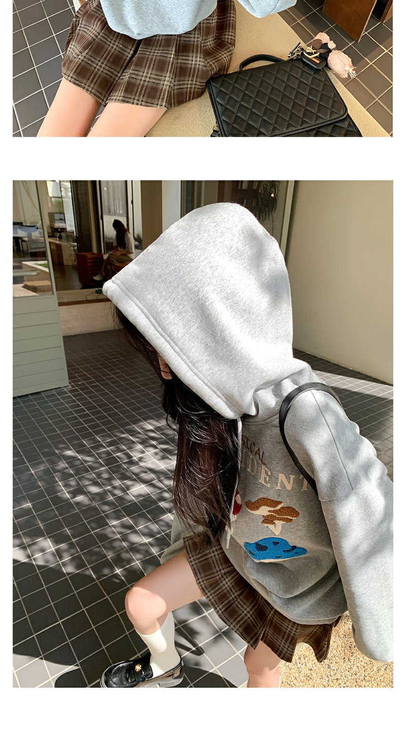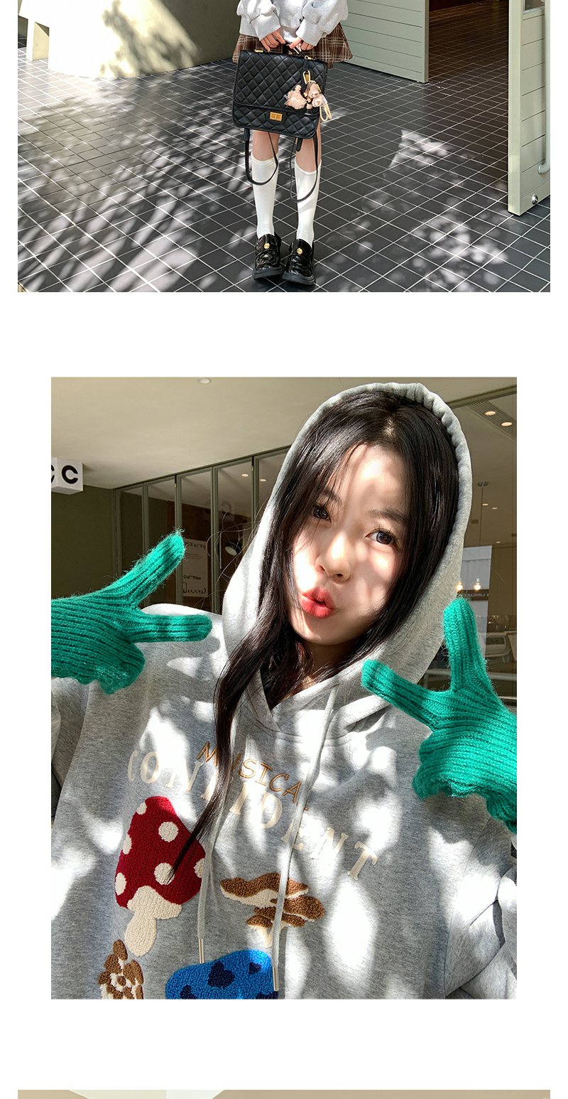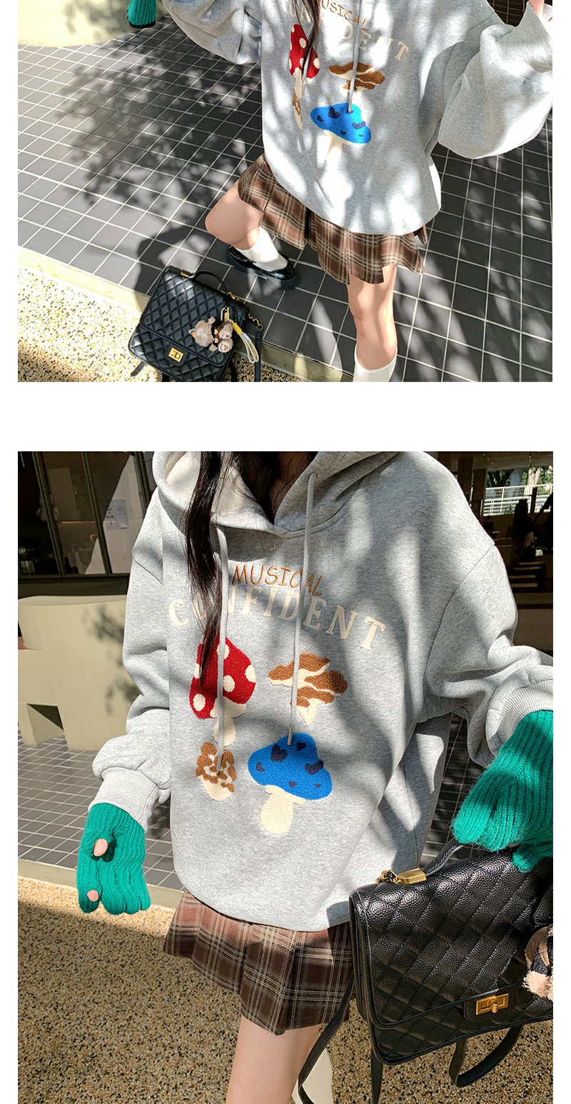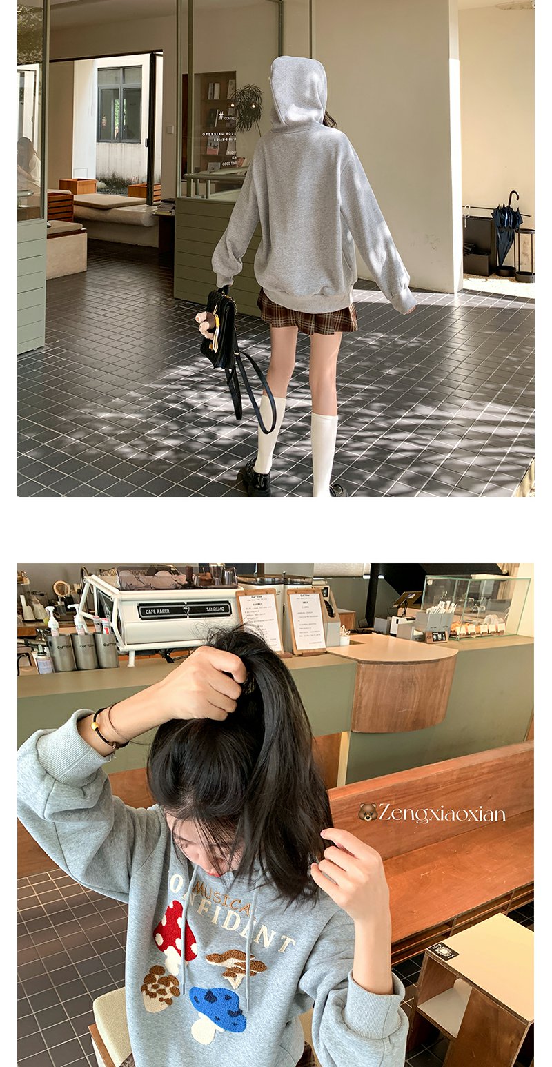 <曾小咸推荐>新品现货秒杀!卖完下架不再补 !微信粉丝打折价!!灰色加绒连帽蘑菇绣花卫衣 日常199.99/件 立减100 秒杀99.99/件!!