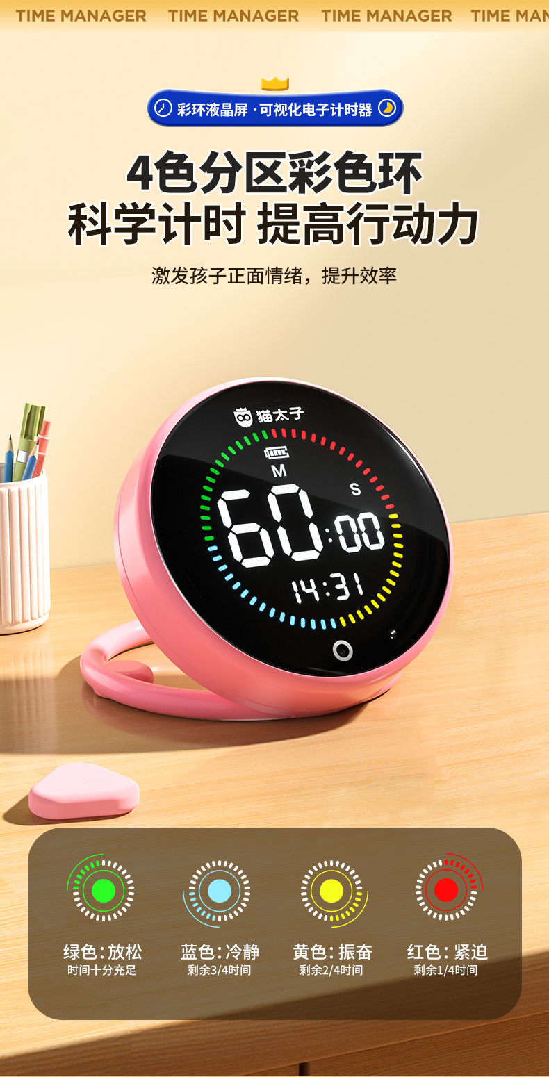 猫太子可视化计时器时间管理定时器儿童学习专用学生自律神器厨房