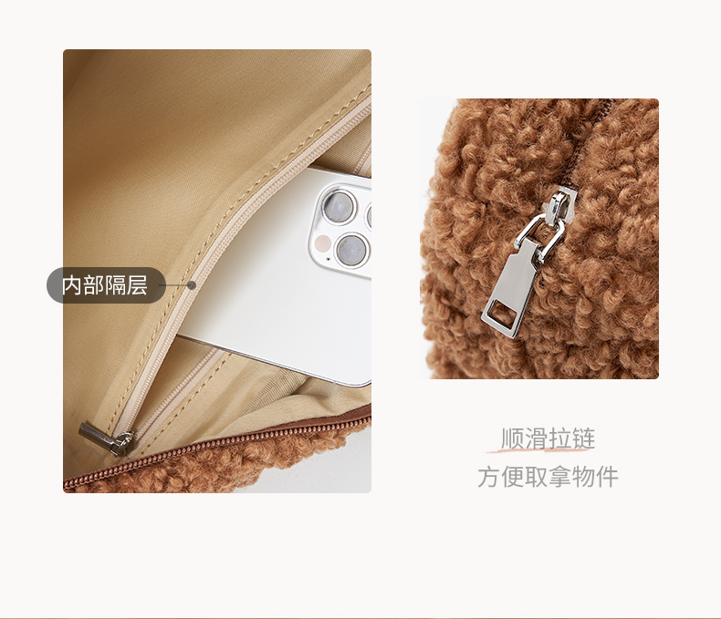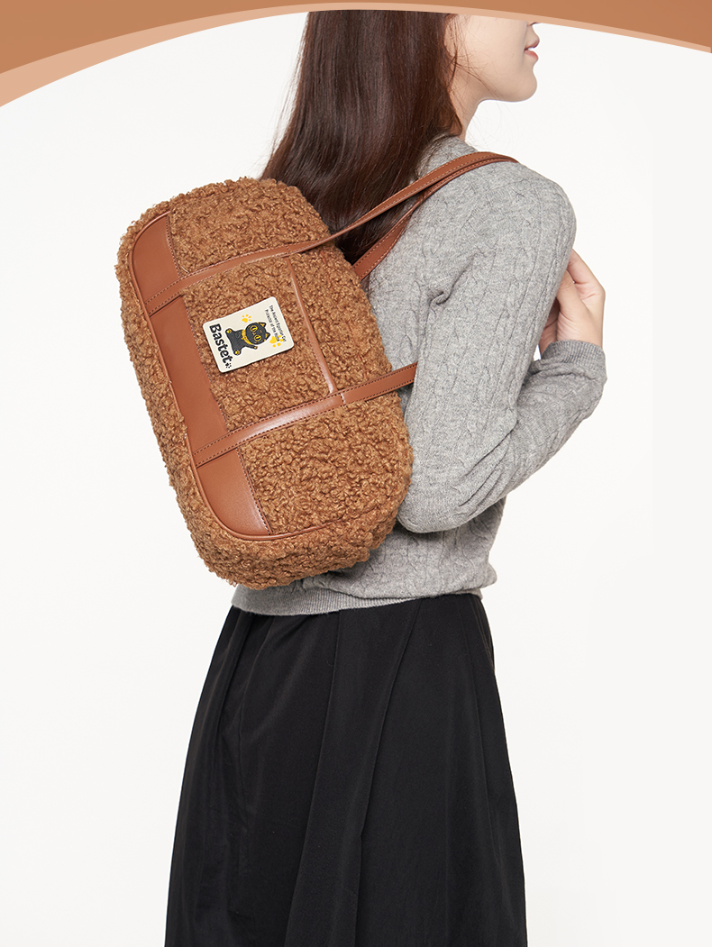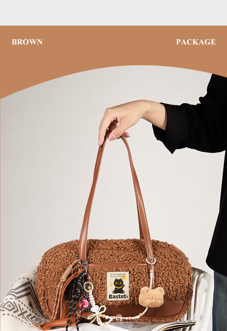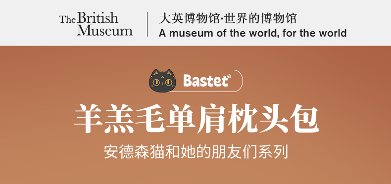 大英博物馆 盖亚·安德森猫和她的朋友们系列 羊羔毛枕头包 毛绒单肩包 棕色