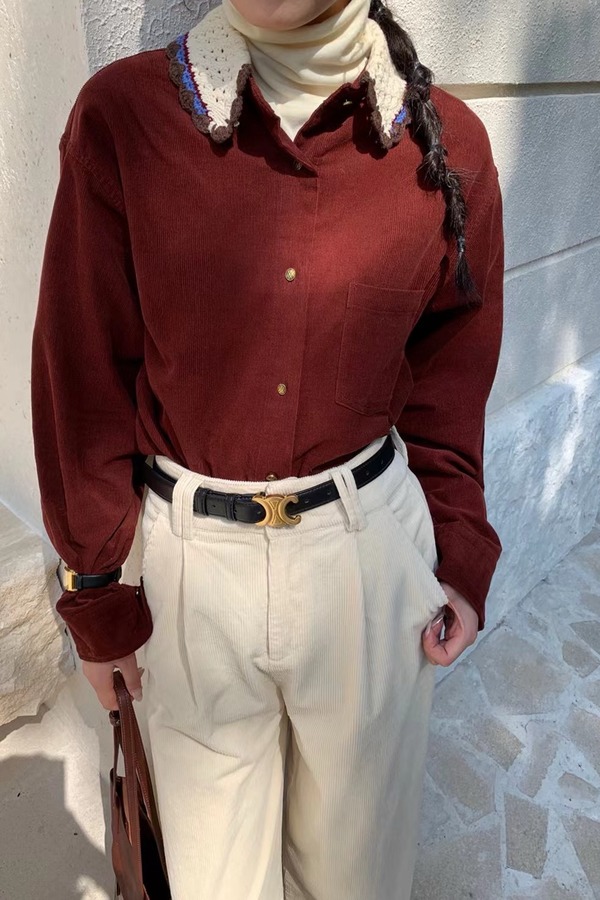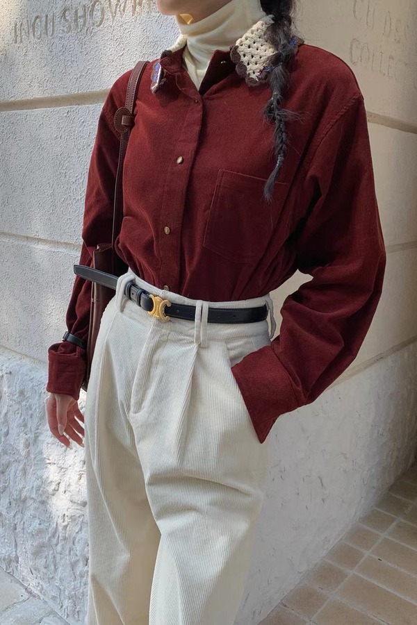 LNNNS 红色复古灯芯绒上衣 19560