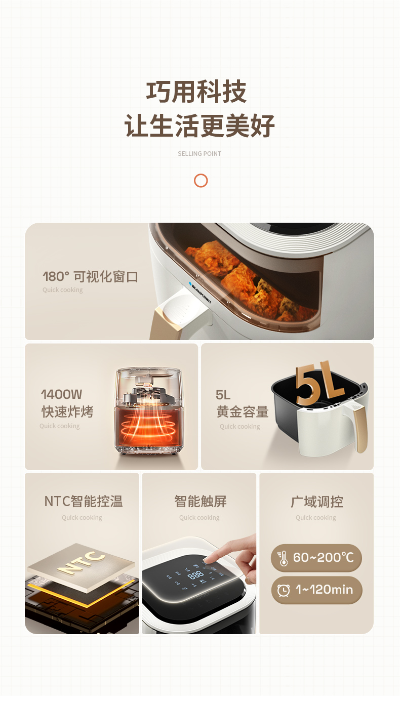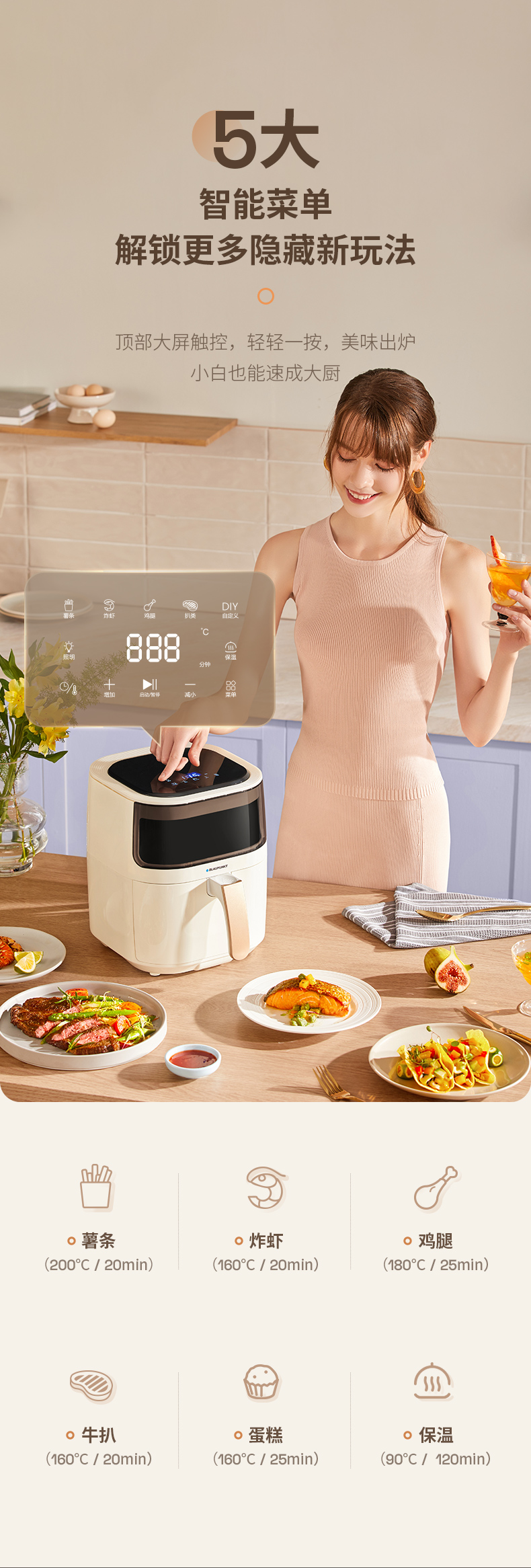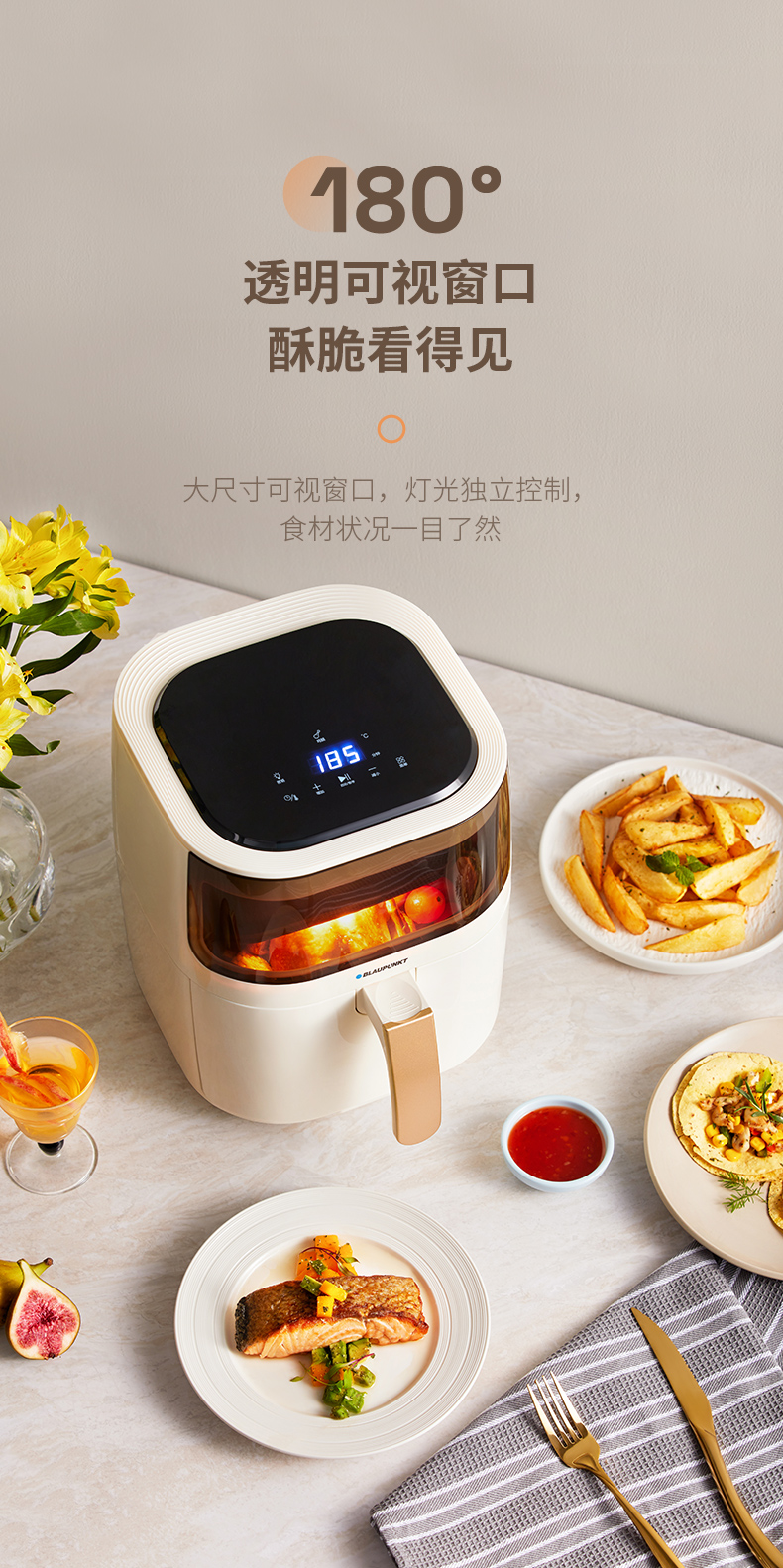 【5L大容量丨180度可视窗口丨顶部触屏免弯腰】蓝宝空气炸锅家用新款可视无油电炸锅烤箱一体多功能智能十大自动