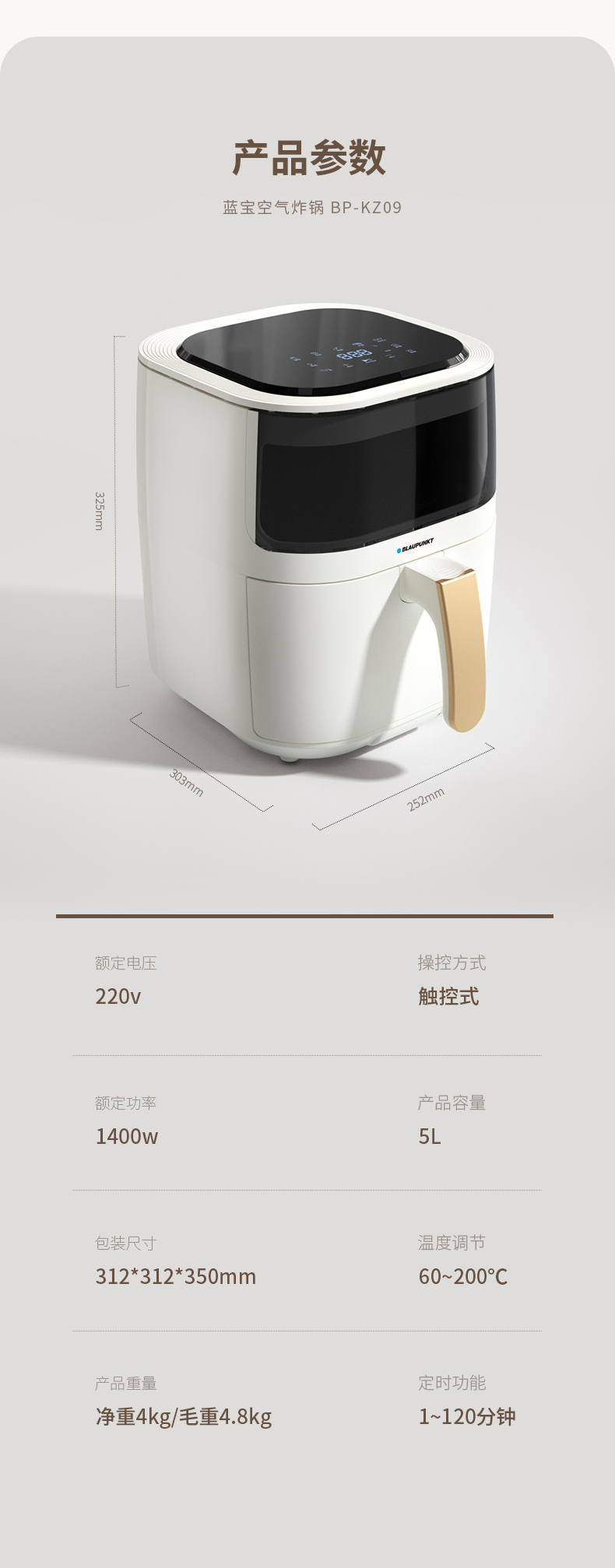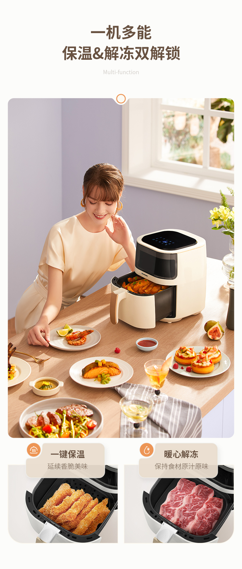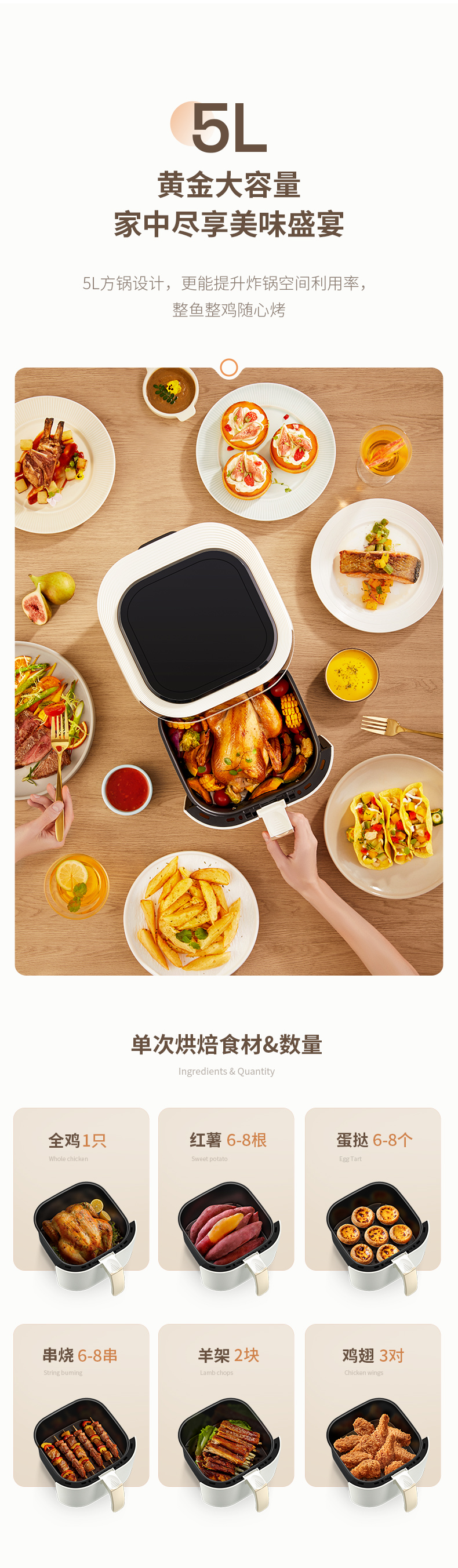 【5L大容量丨180度可视窗口丨顶部触屏免弯腰】蓝宝空气炸锅家用新款可视无油电炸锅烤箱一体多功能智能十大自动
