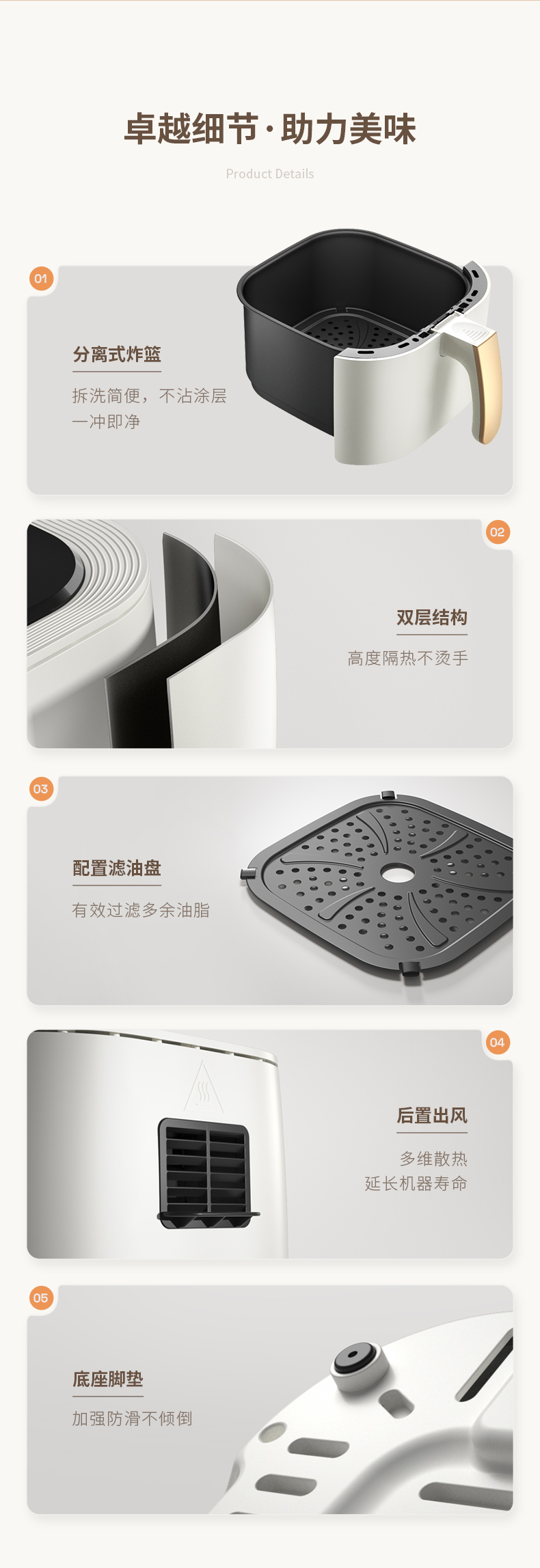 2、细节展示:材质、工艺、做工等;